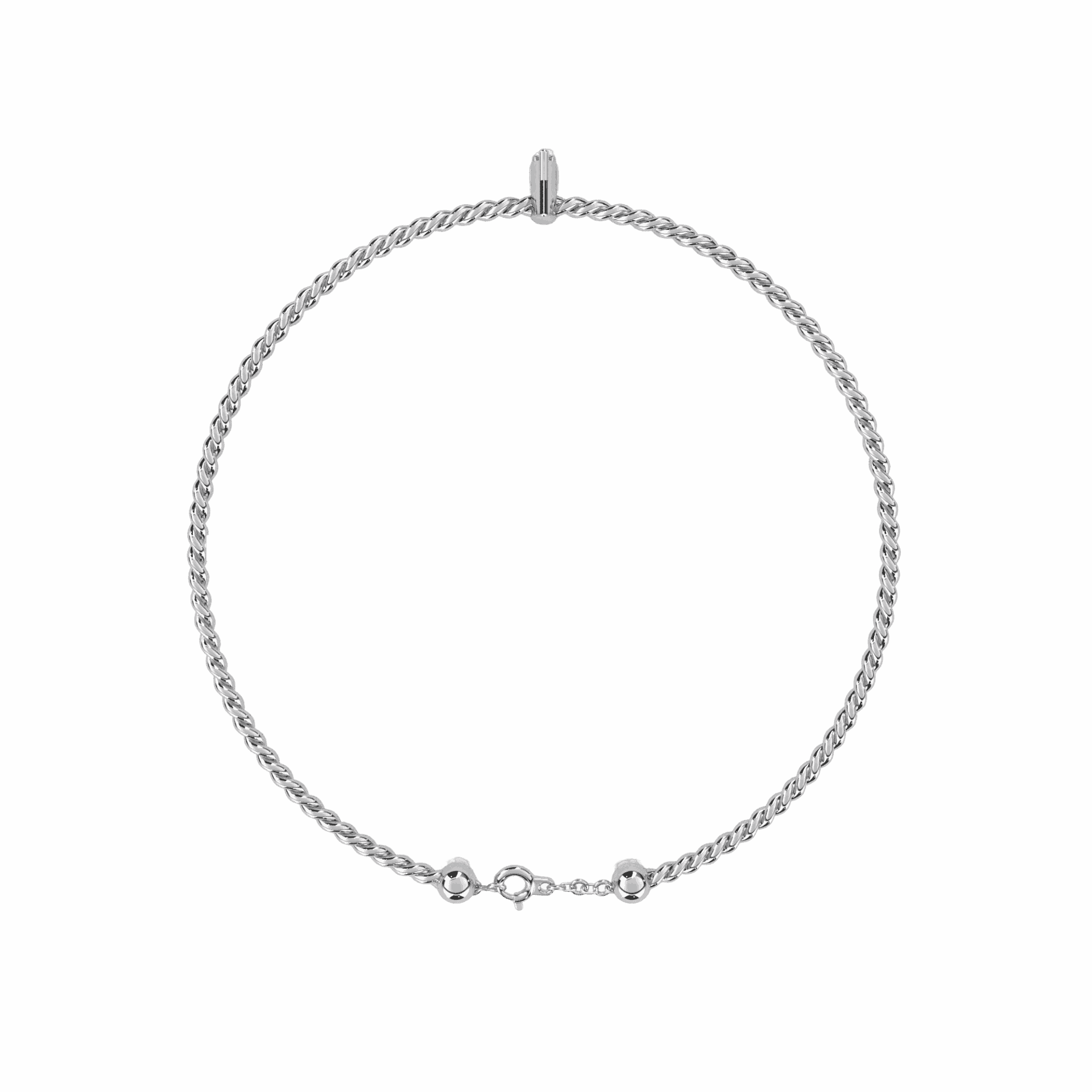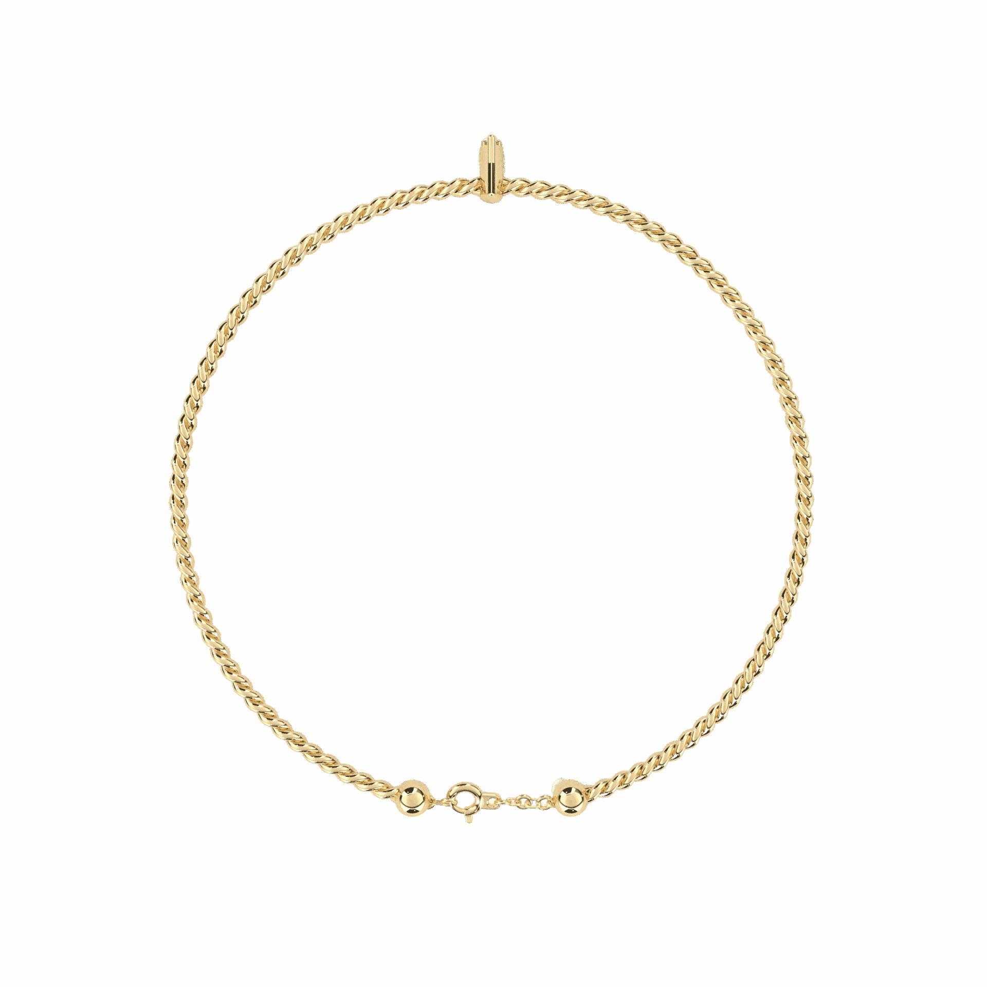 Two round diamonds rest on a marquise-shaped gold base, suspended on a fine chain. Light on the wrist, present when it matters. The bracelet you put on and forget to take off.