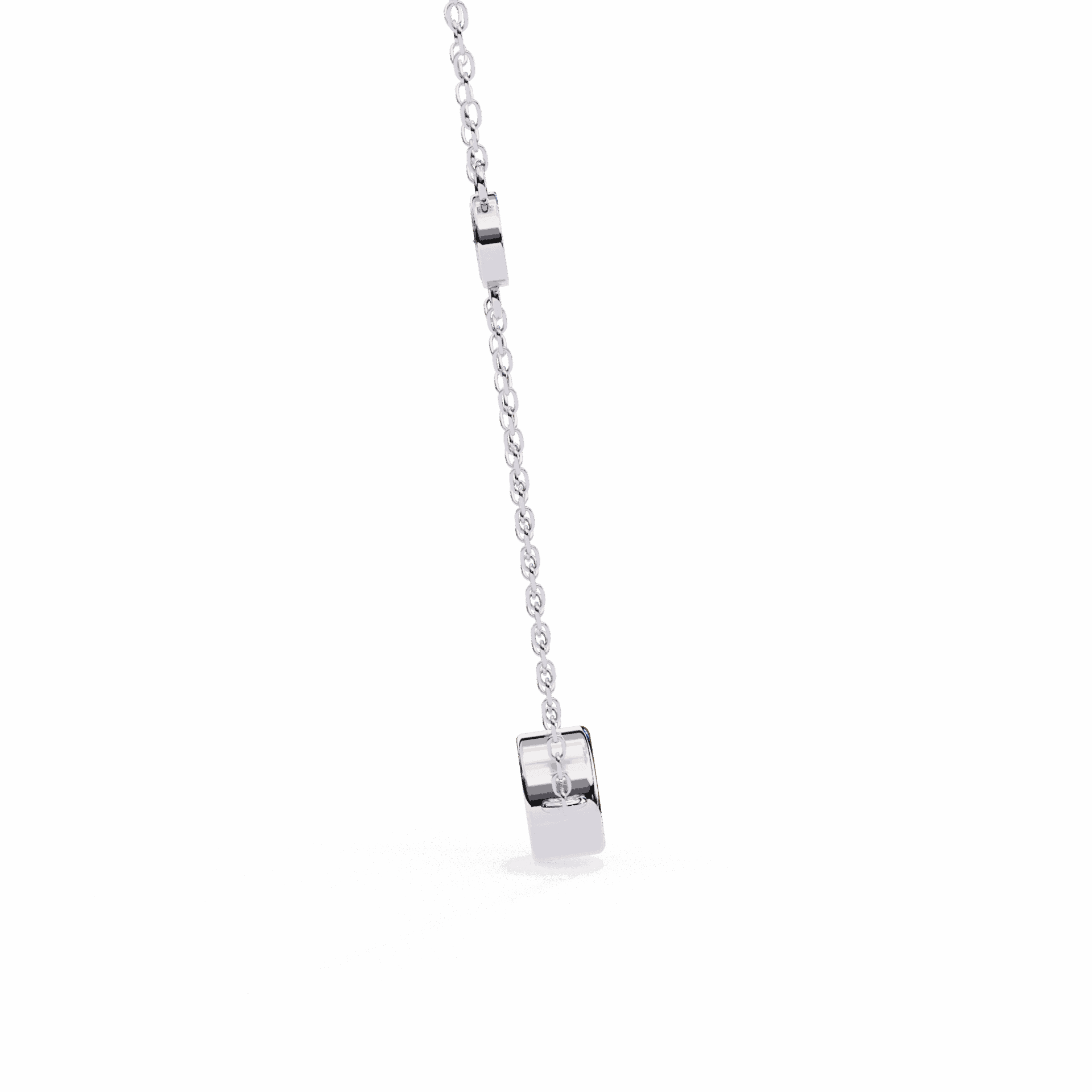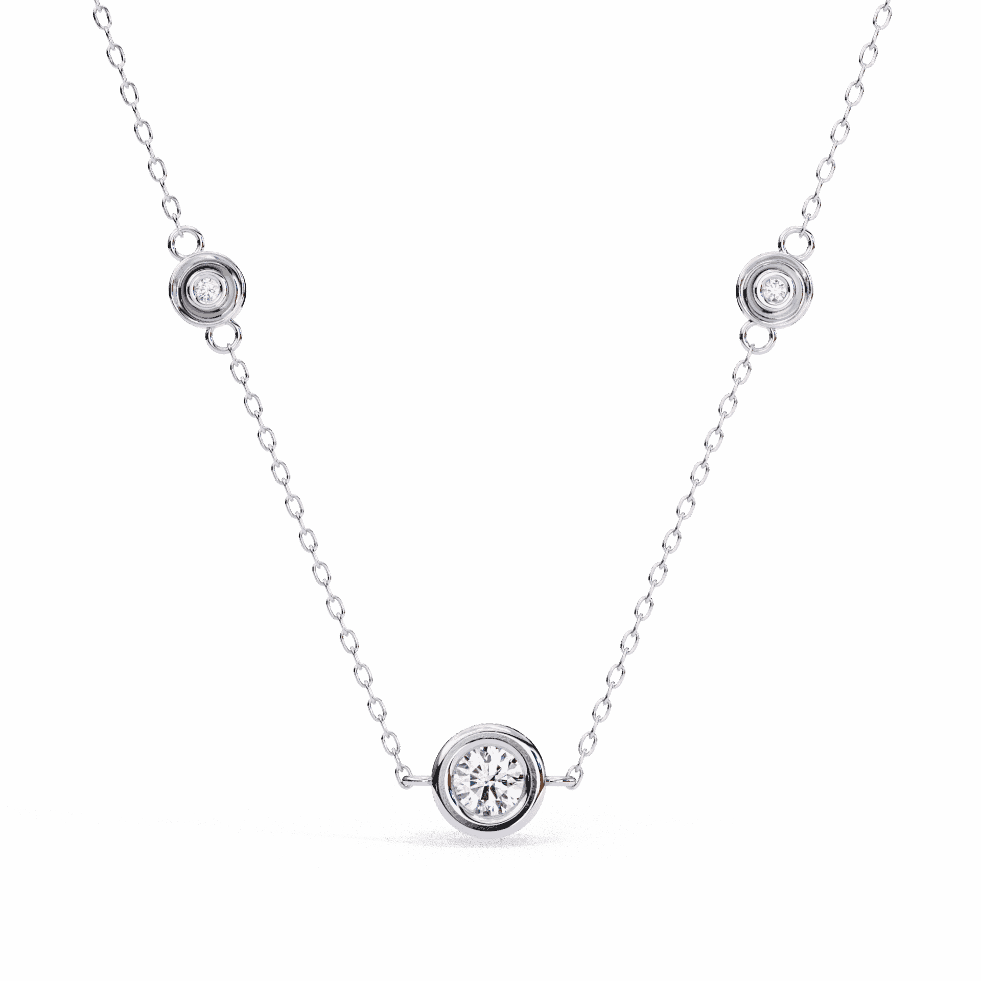 Three precisely matched round lab-grown diamonds aligned vertically for a graceful, modern look. The simplest geometry - a line - executed with precision.