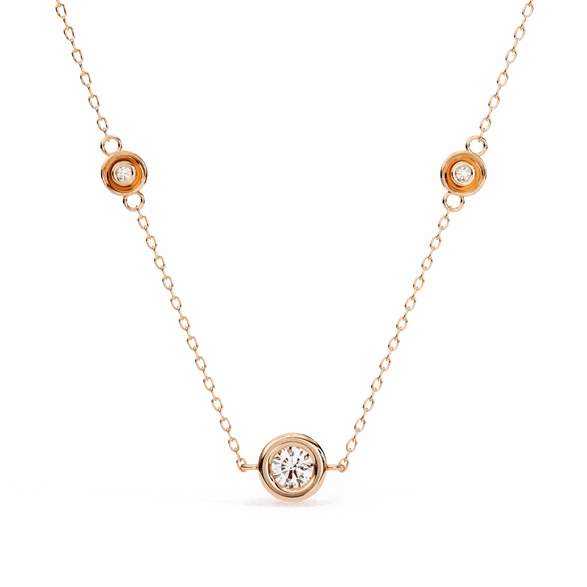 Three precisely matched round lab-grown diamonds aligned vertically for a graceful, modern look. The simplest geometry – a line – executed with precision.
