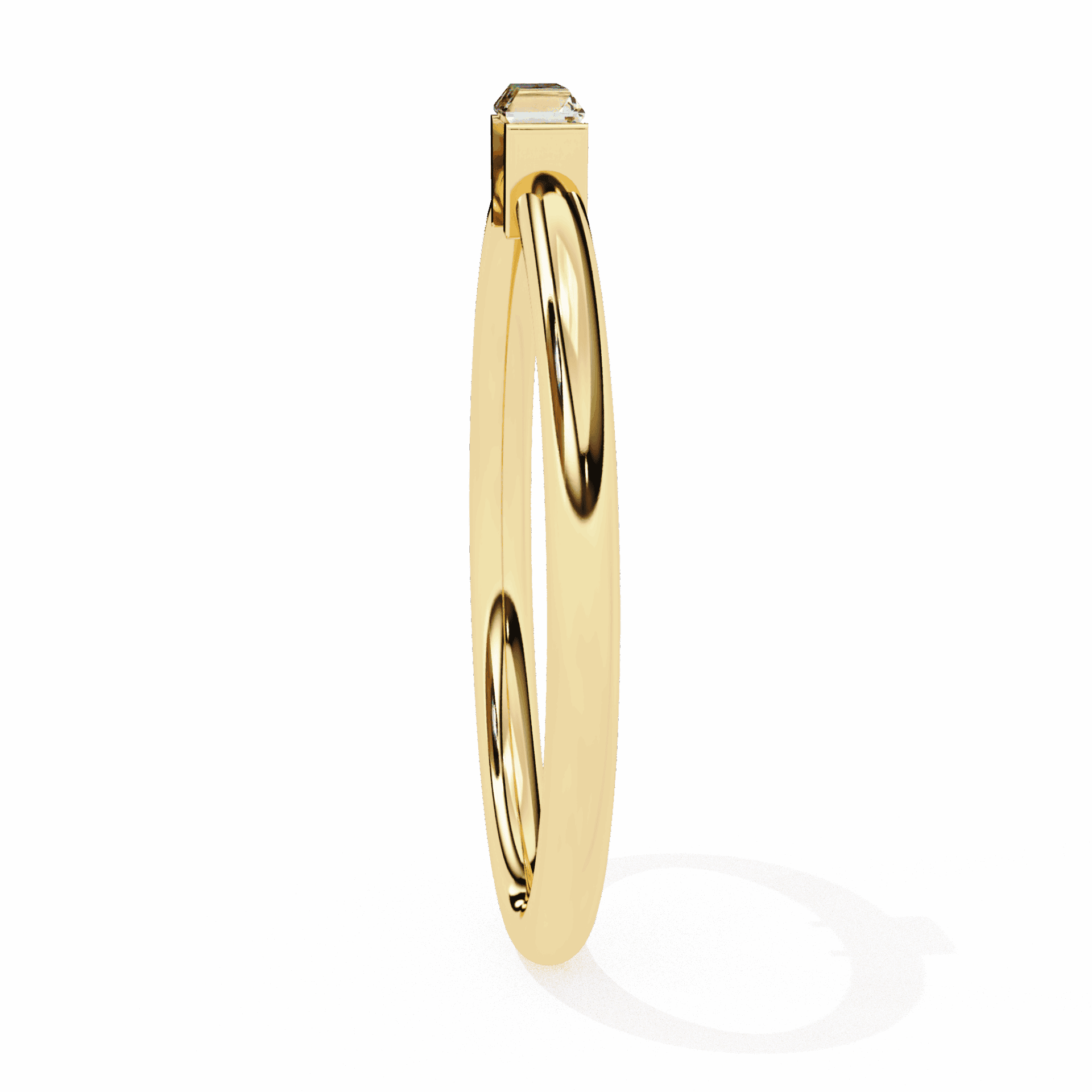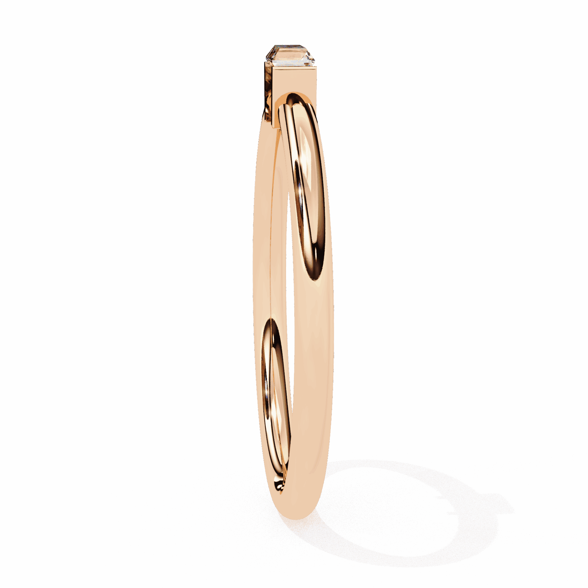 One substantial baguette diamond in a classic wedding band. Singular sophistication.