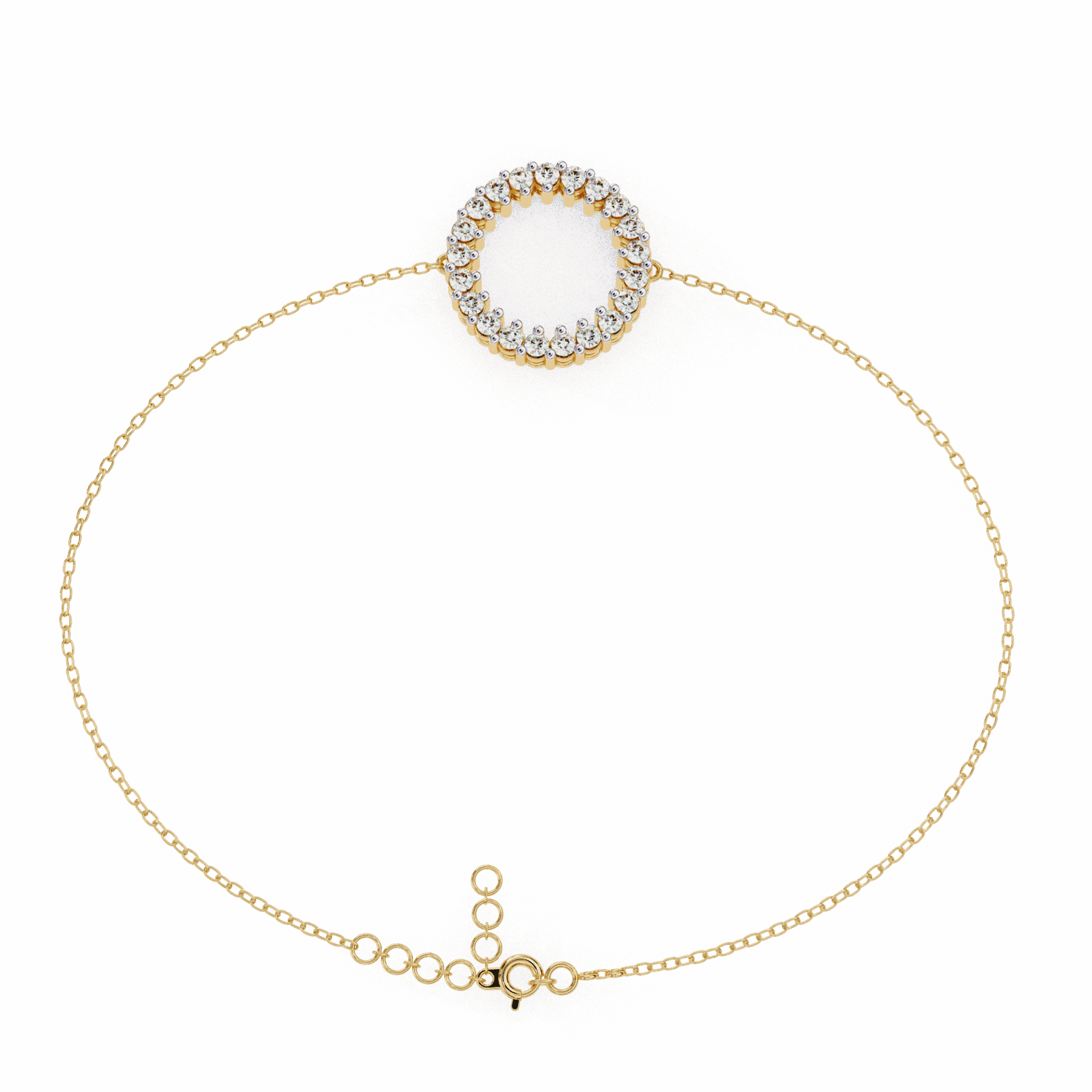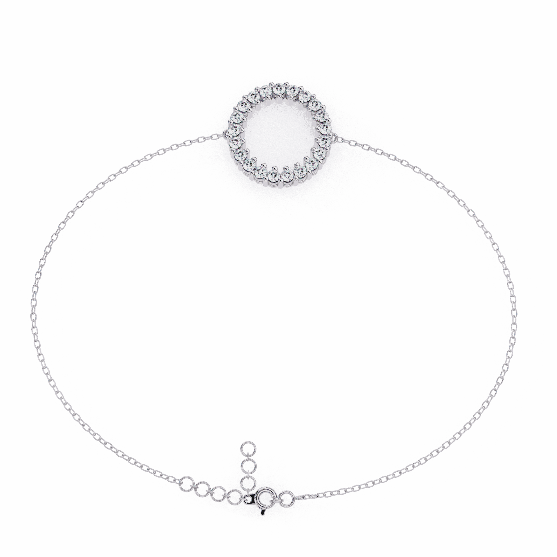 Linked diamond-set circles on a delicate chain. A symbol of connection that sits quietly on the wrist and means more than it shows.