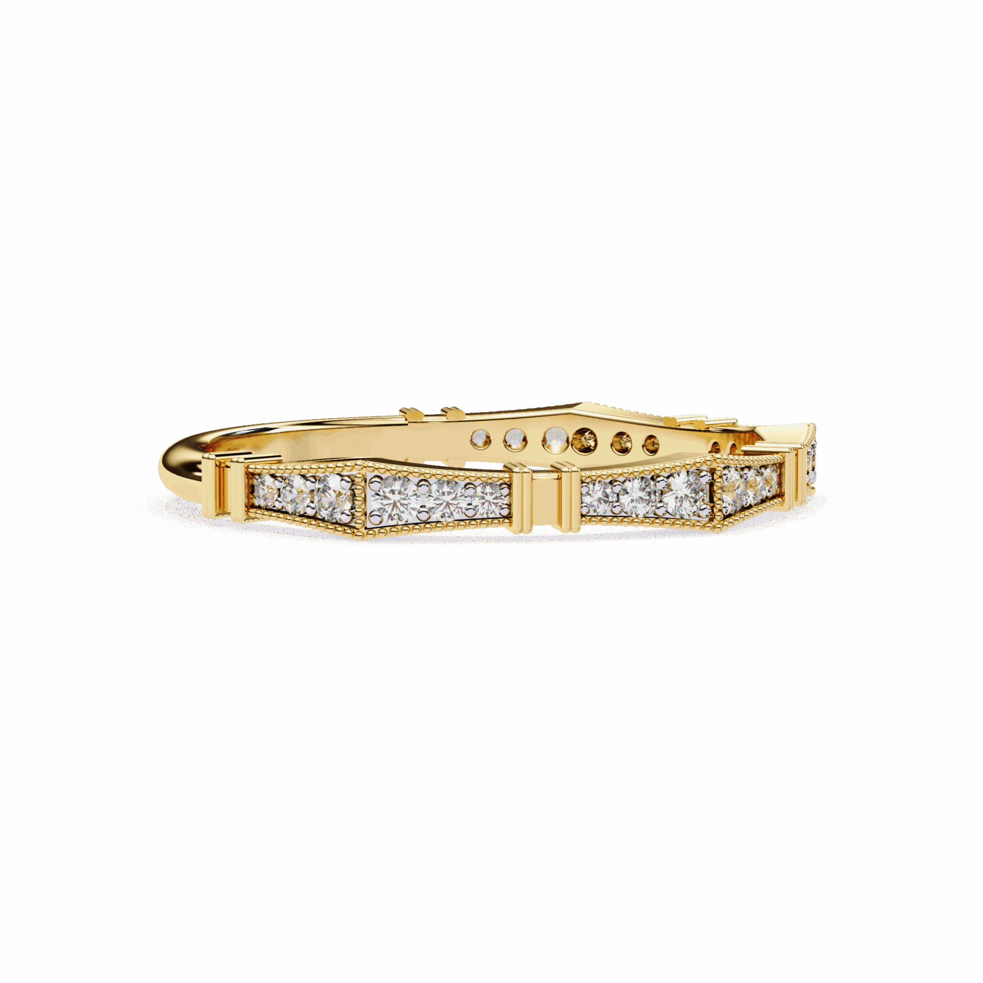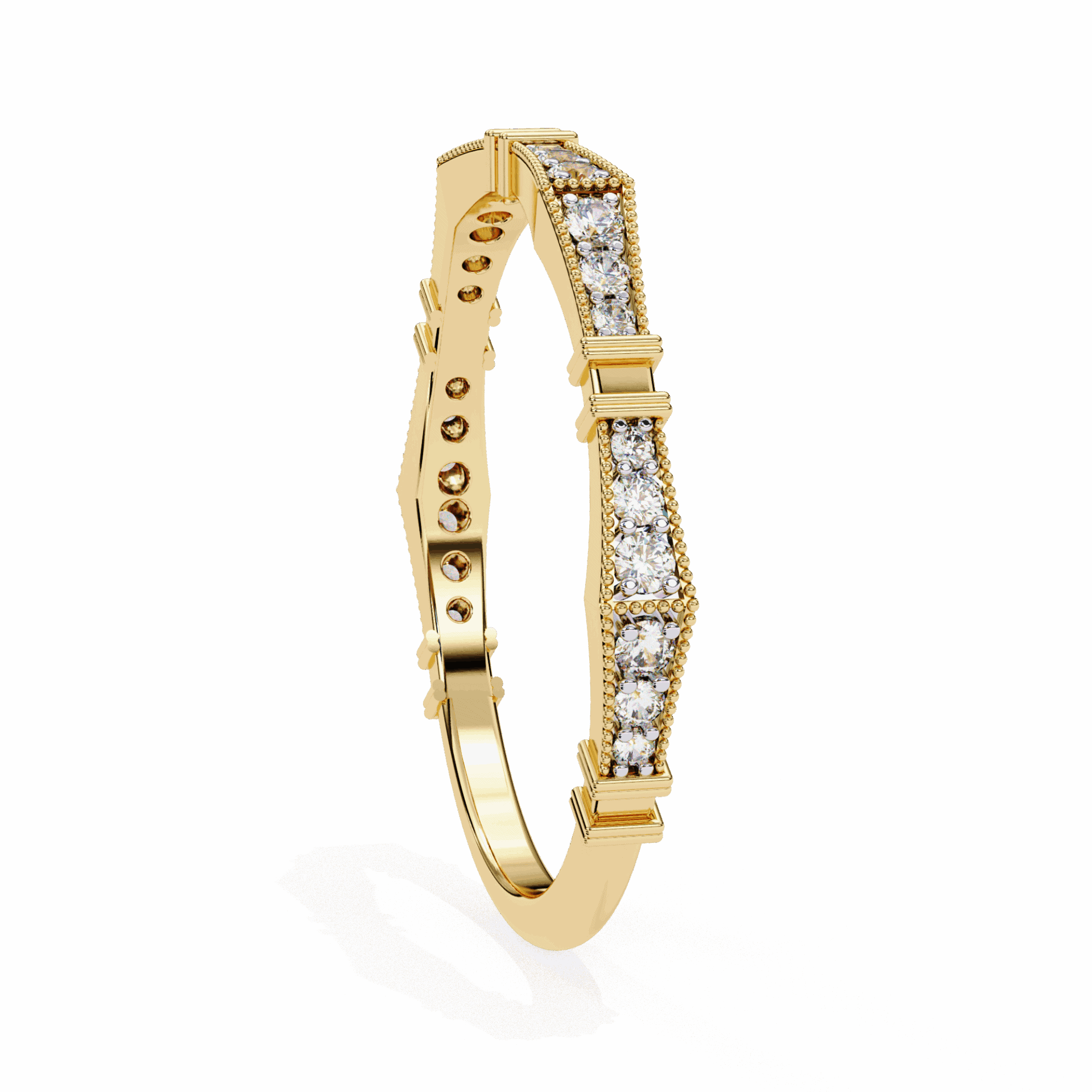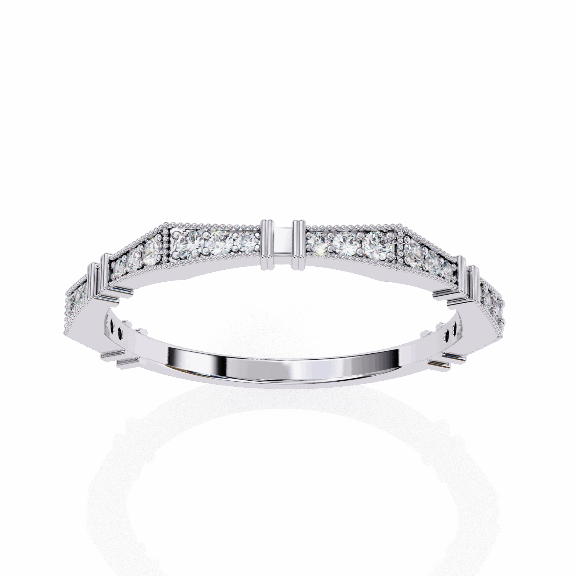 24 round diamonds in a classic everyday band. Delicate sparkle for daily wear.