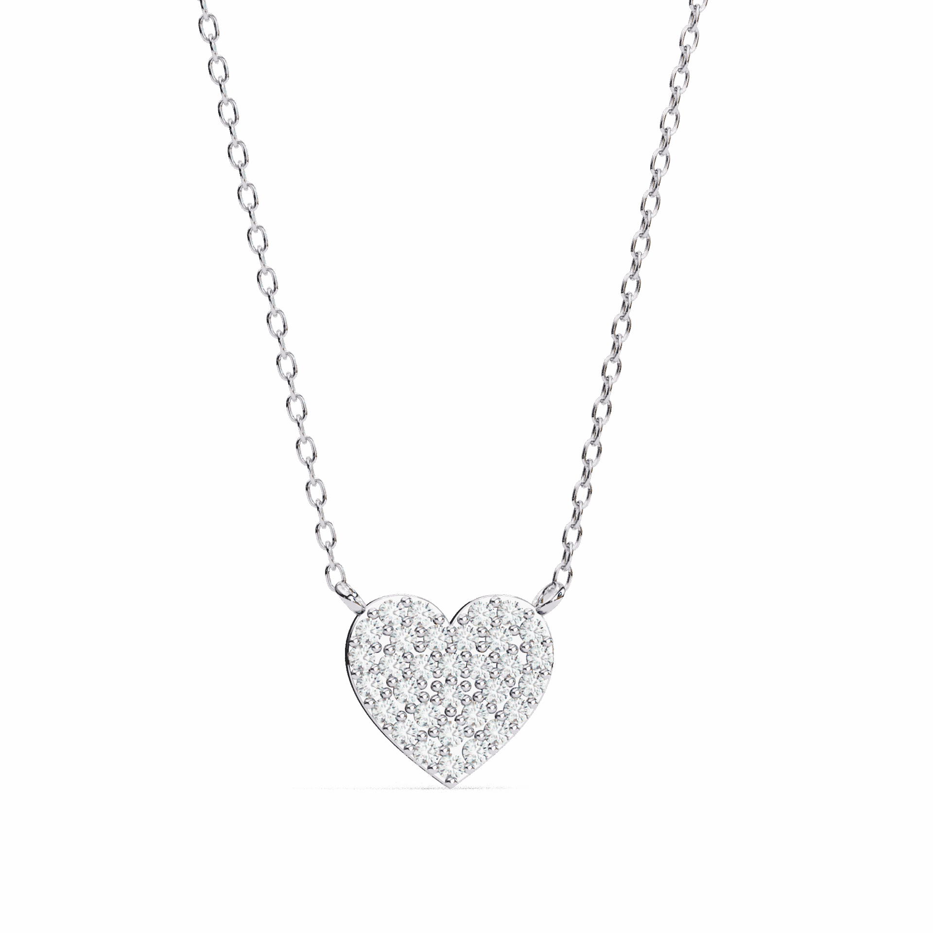 32 round lab-grown diamonds set in a full pavé heart design - no empty space, just diamond after diamond filling the entire heart shape. Subtle size, serious sentiment.