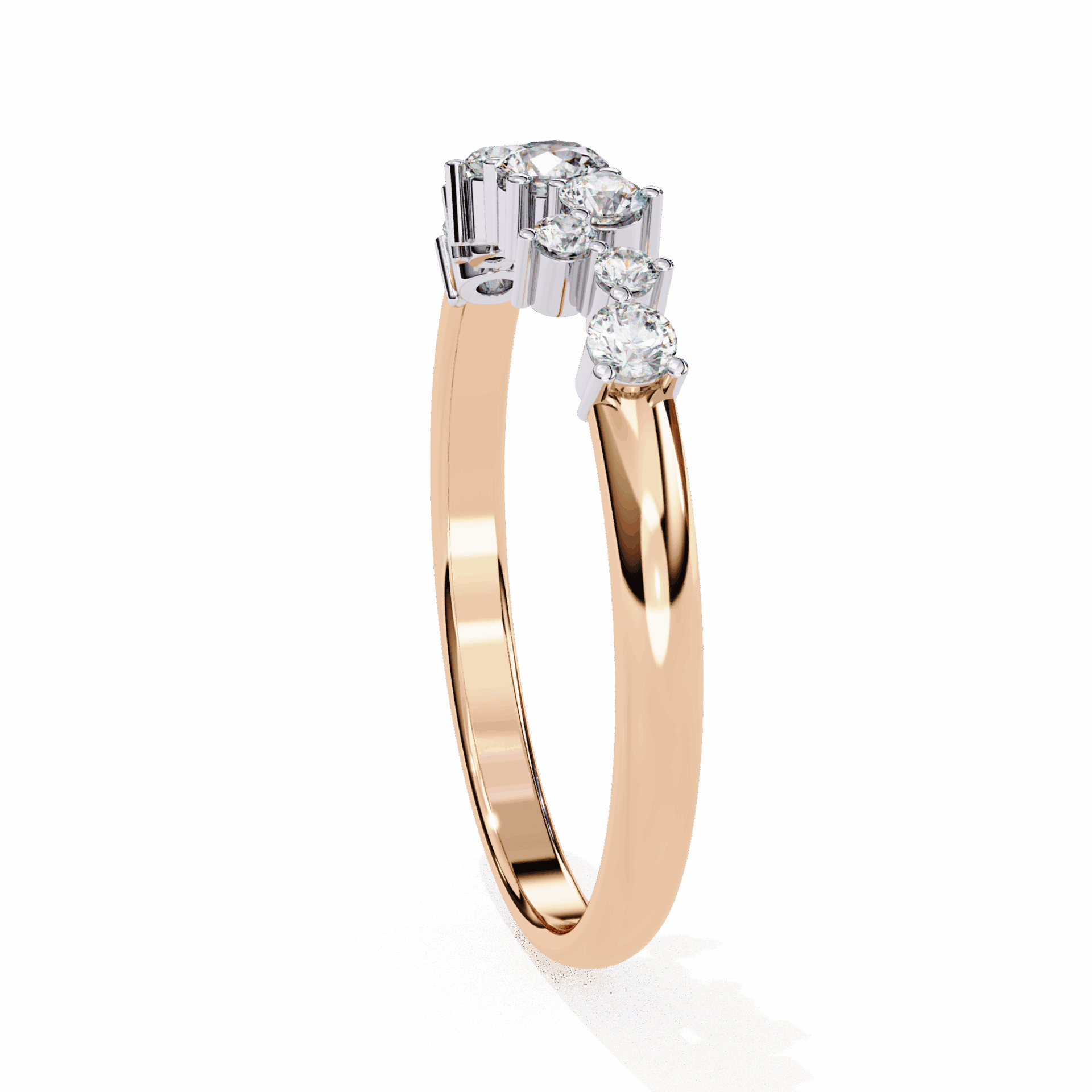 9 round lab-grown diamonds totaling 0.27 carats (also known as 25 cents in trade) in a band inspired by the magic hour. Ethereal design for everyday elegance.
