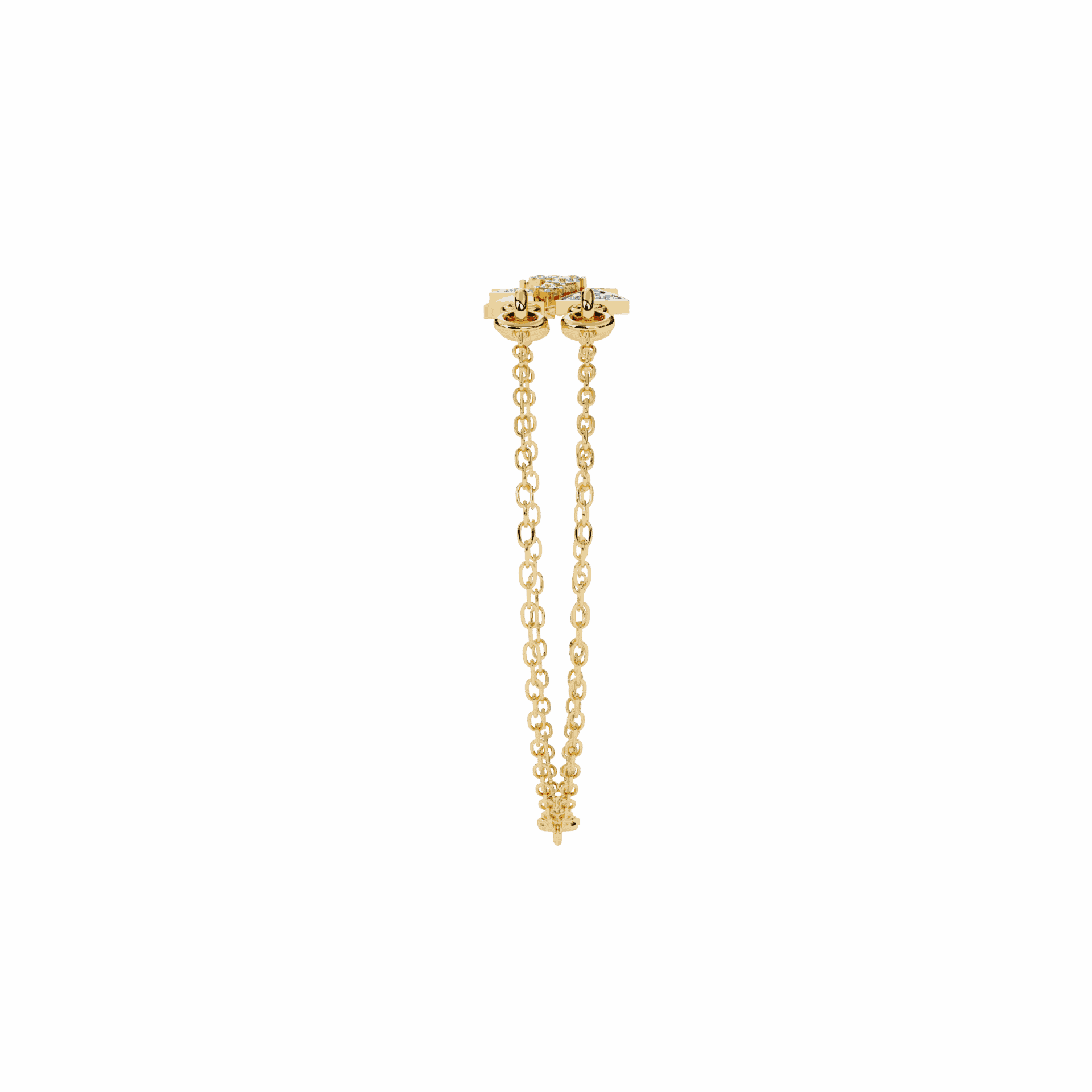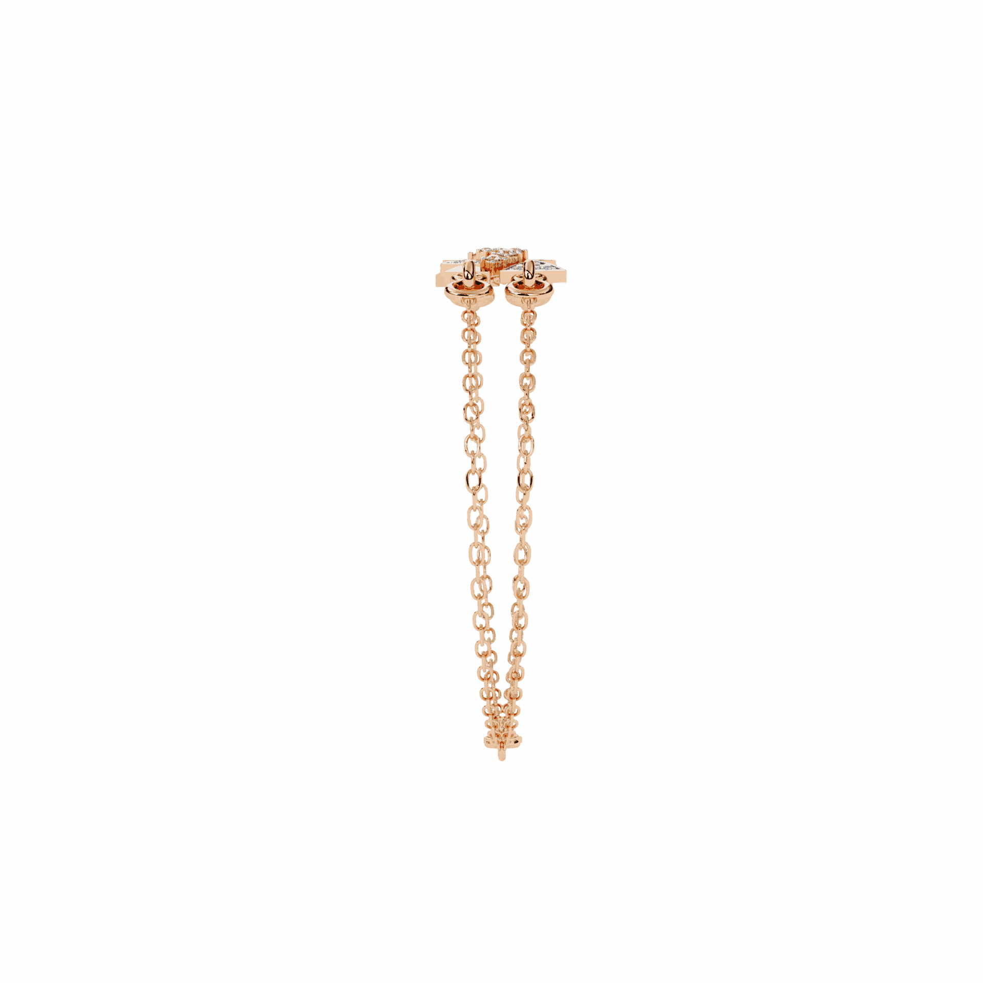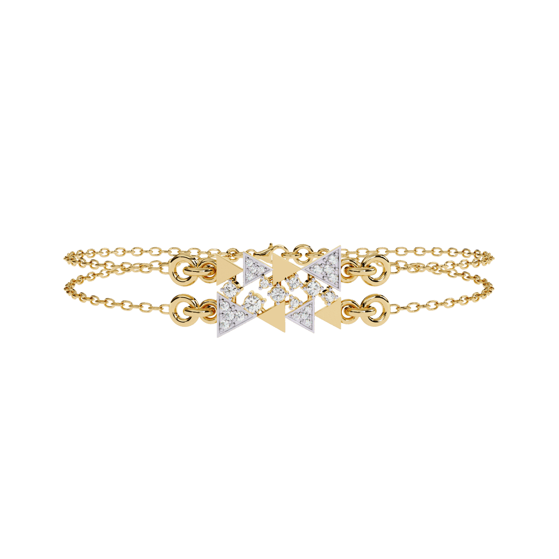 24 diamonds forming a star motif where twin chains meet. Playful, modern, impossible to ignore.