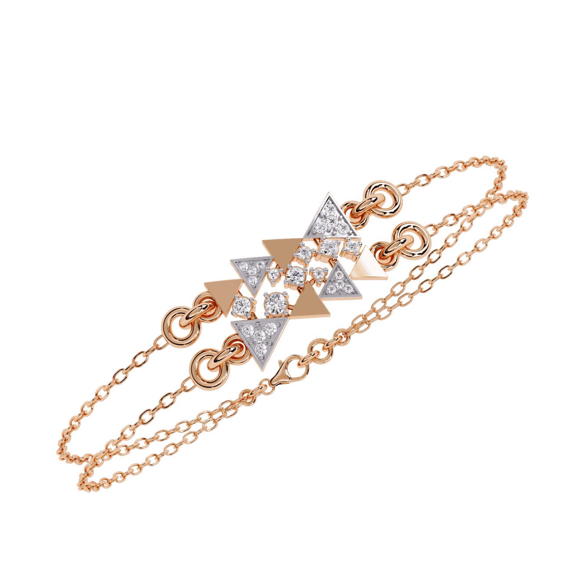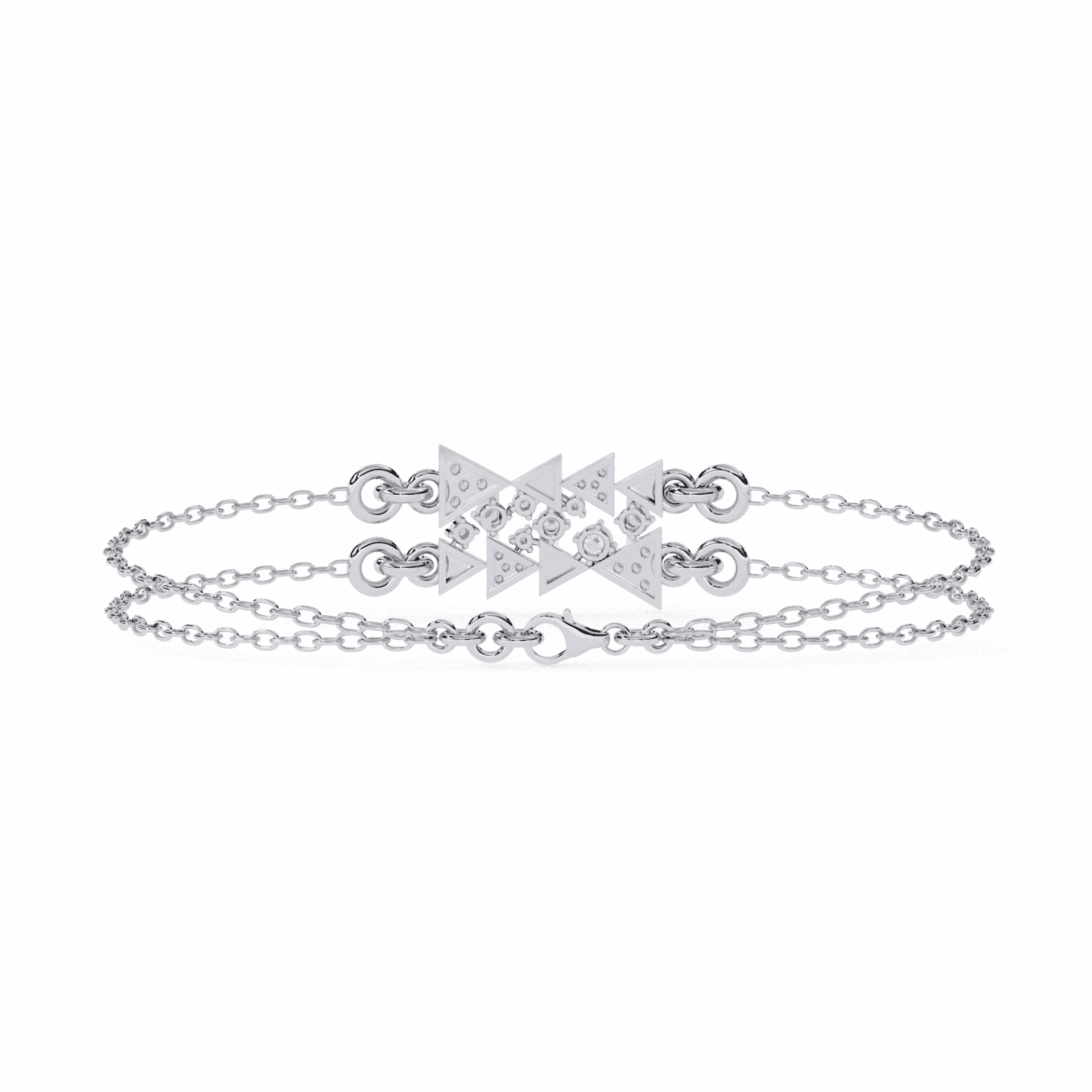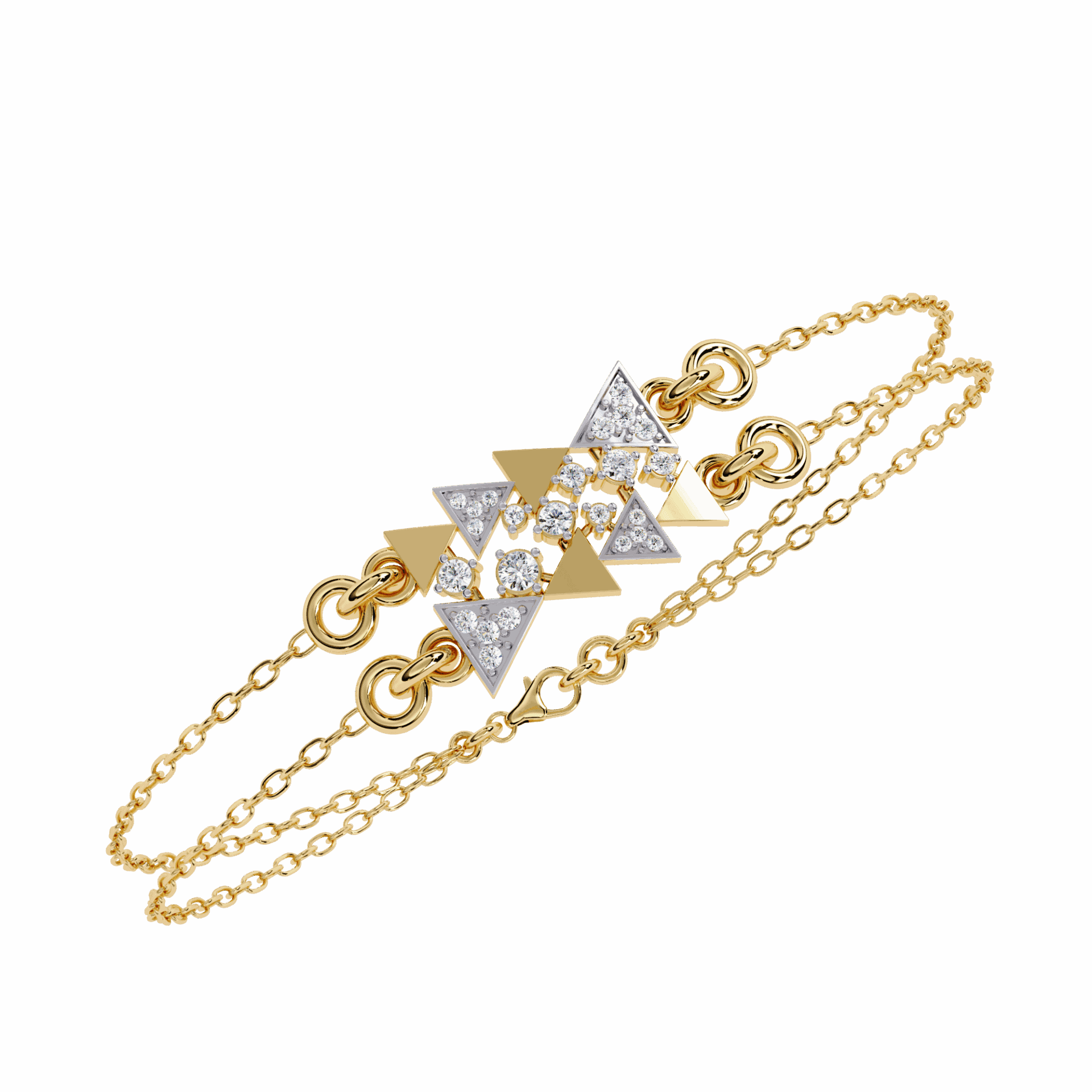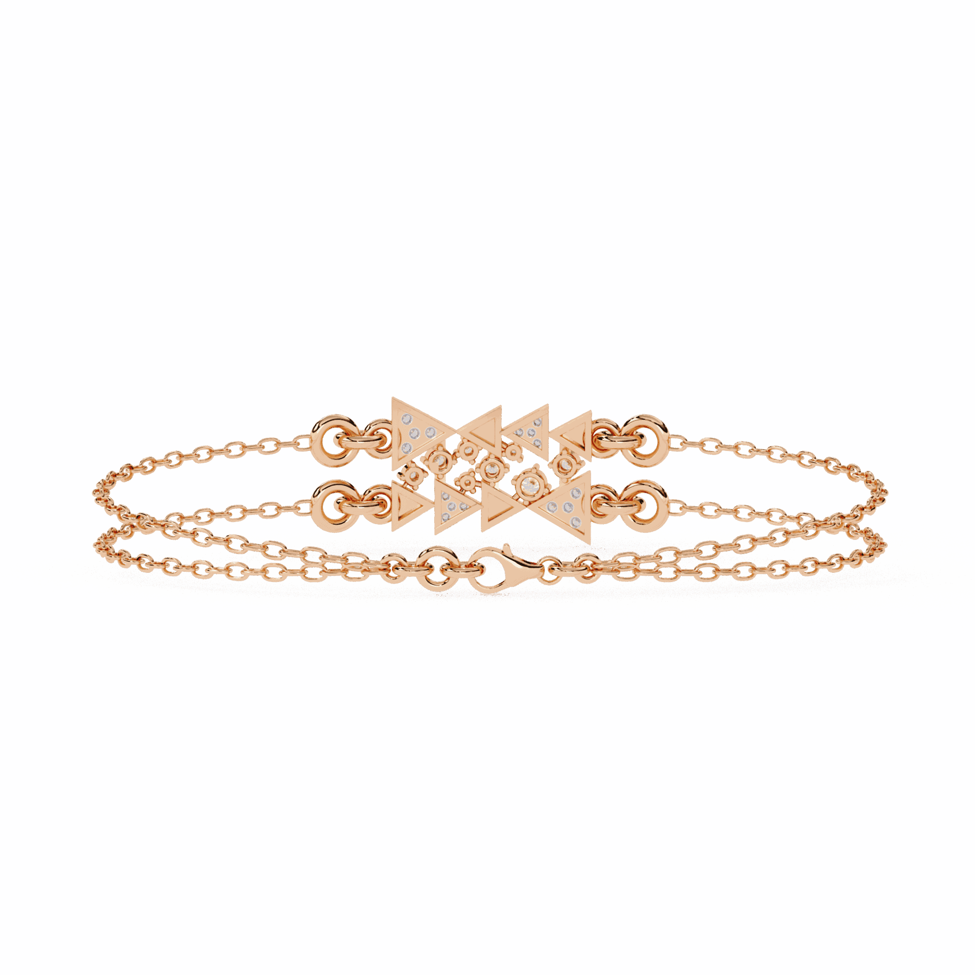 24 diamonds forming a star motif where twin chains meet. Playful, modern, impossible to ignore.