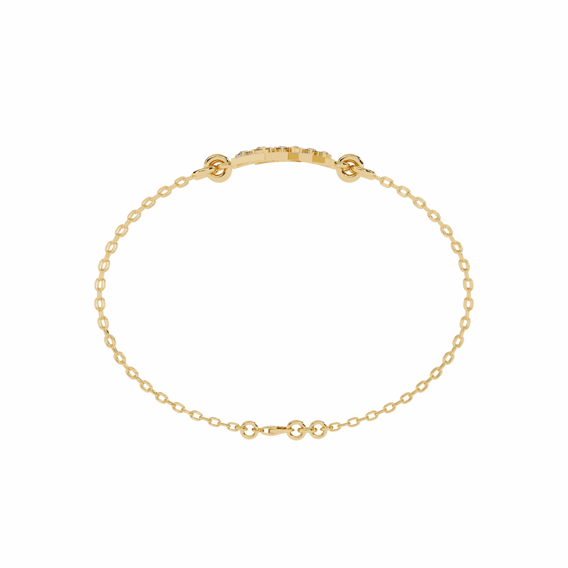 24 round lab-grown diamonds set in a star motif at the center, where two fine gold chains meet. It’s playful – the kind of bracelet that makes people smile when they notice it.