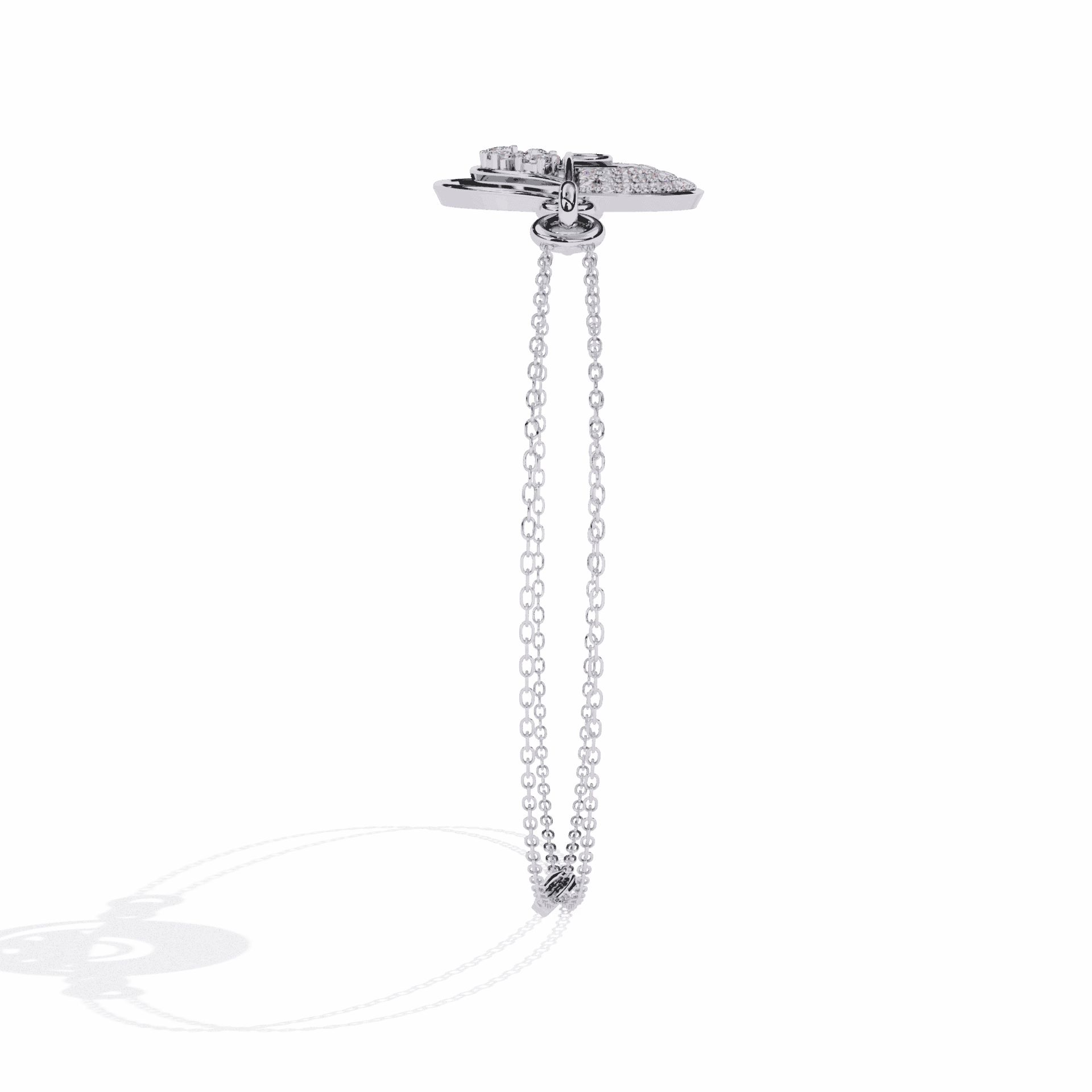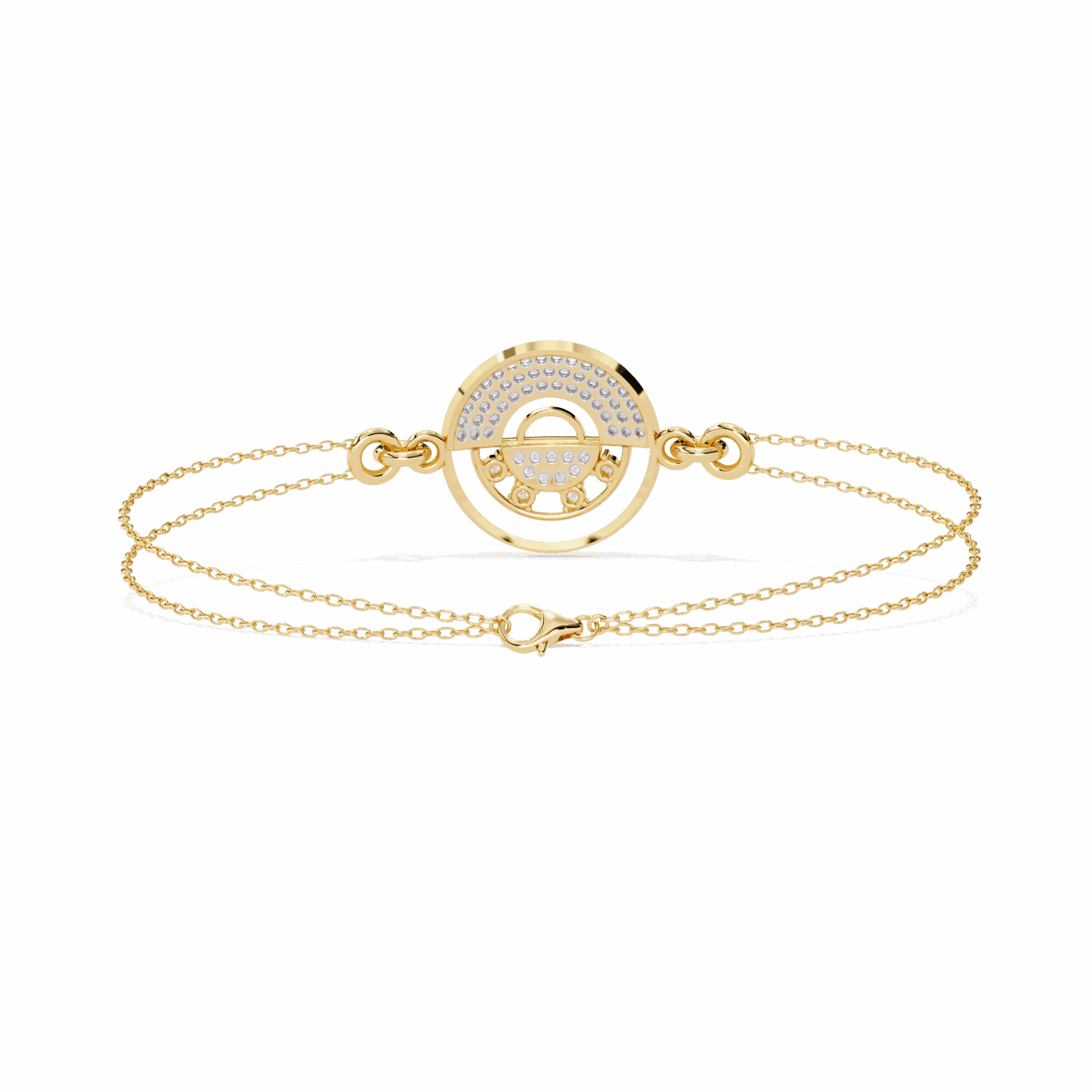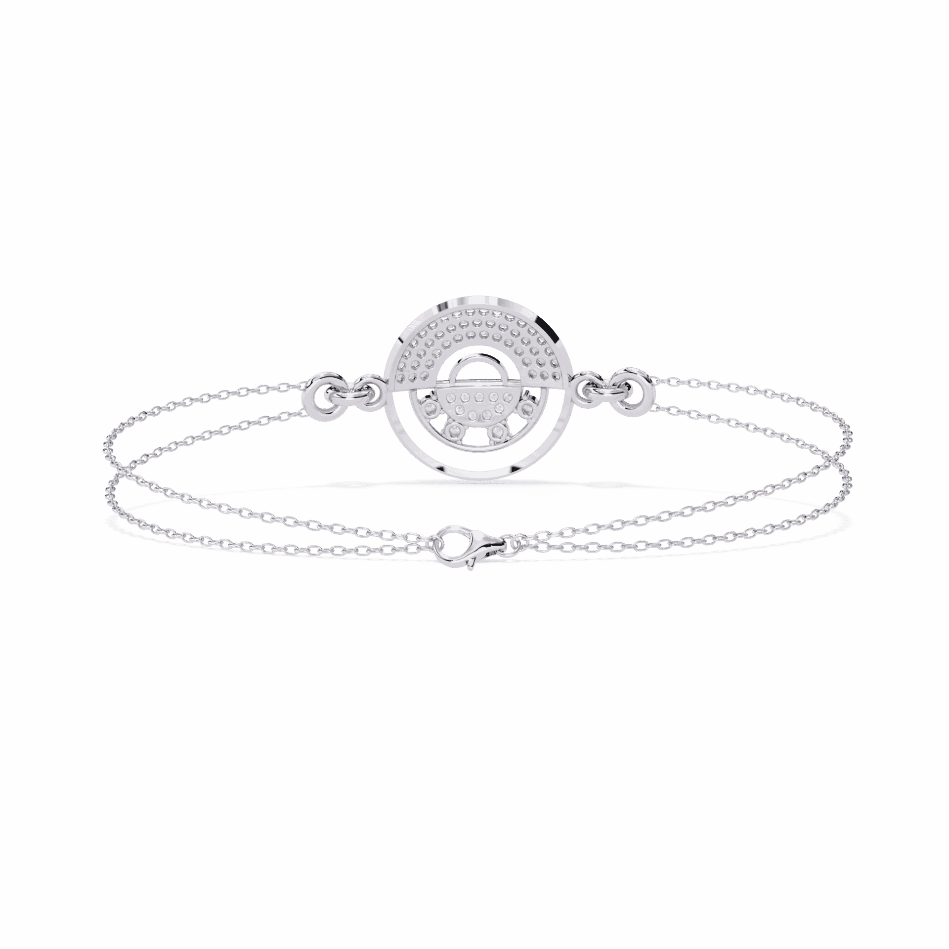 58 diamonds – a halo center orbited by sparkle on a sleek chain. Balance and connection, designed for the wrist.