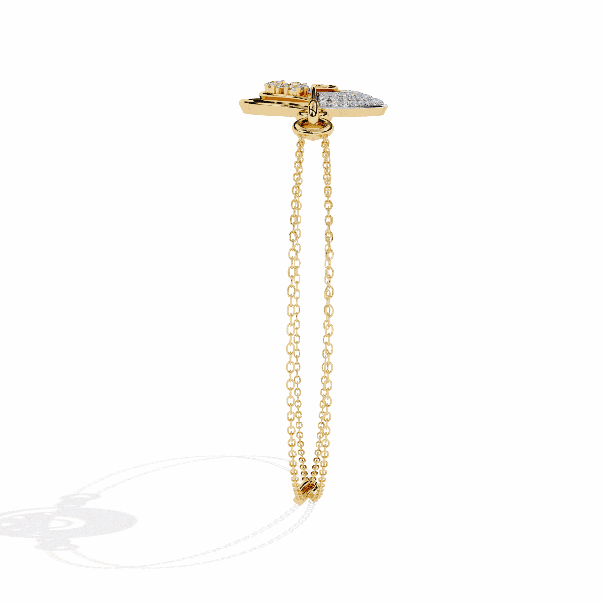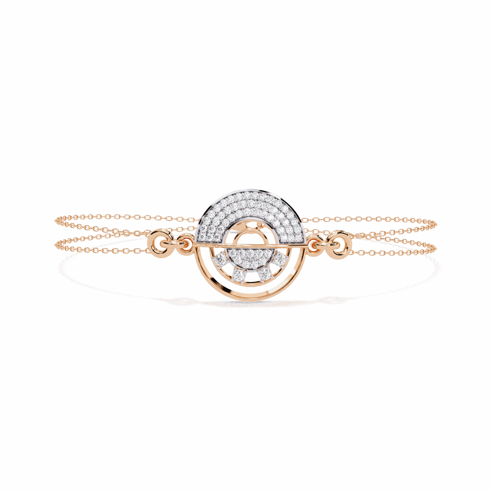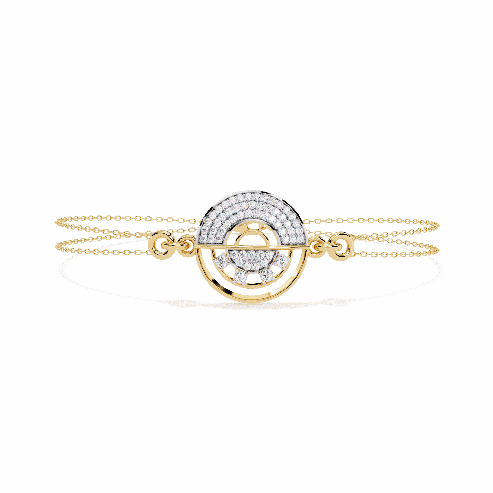 58 diamonds – a halo center orbited by sparkle on a sleek chain. Balance and connection, designed for the wrist.