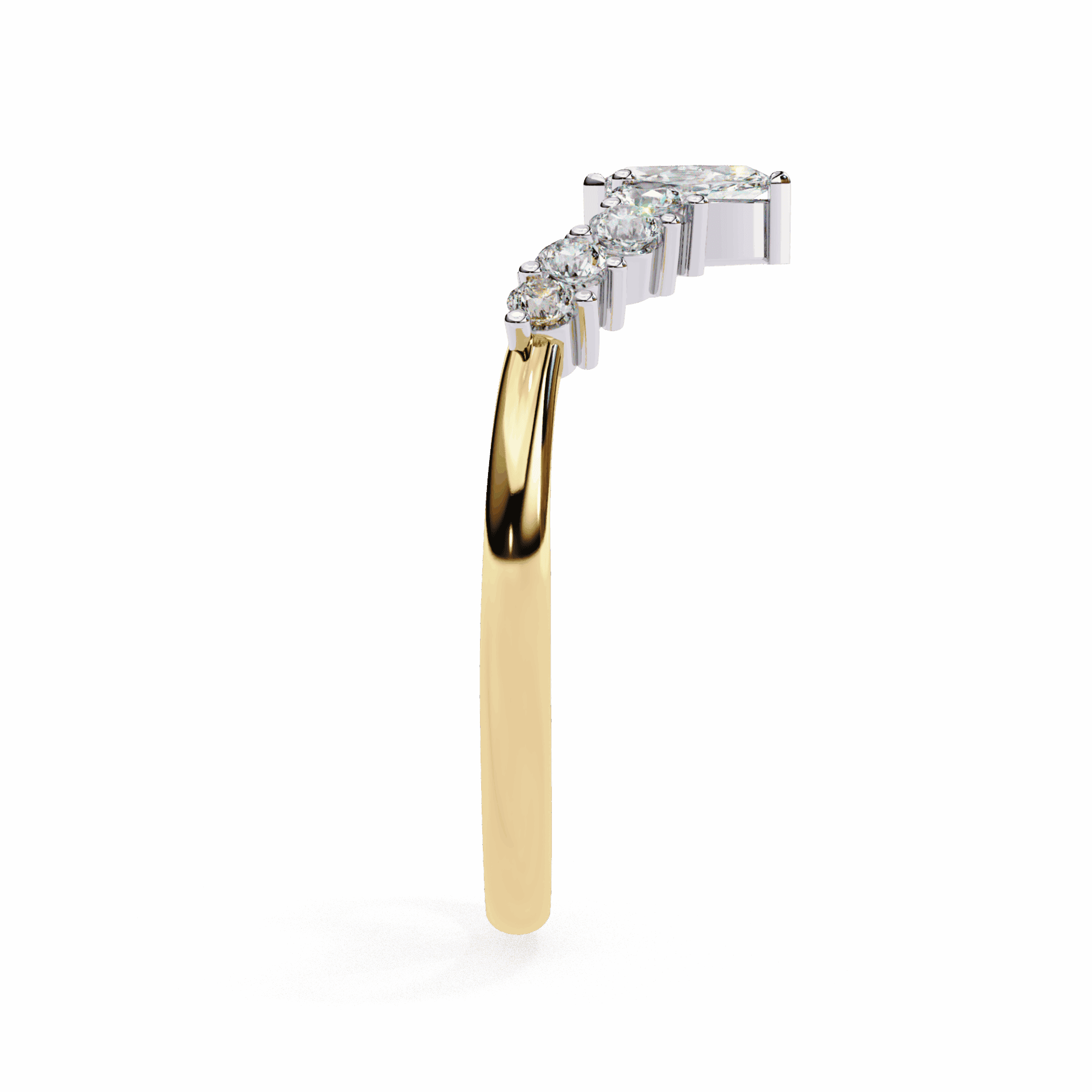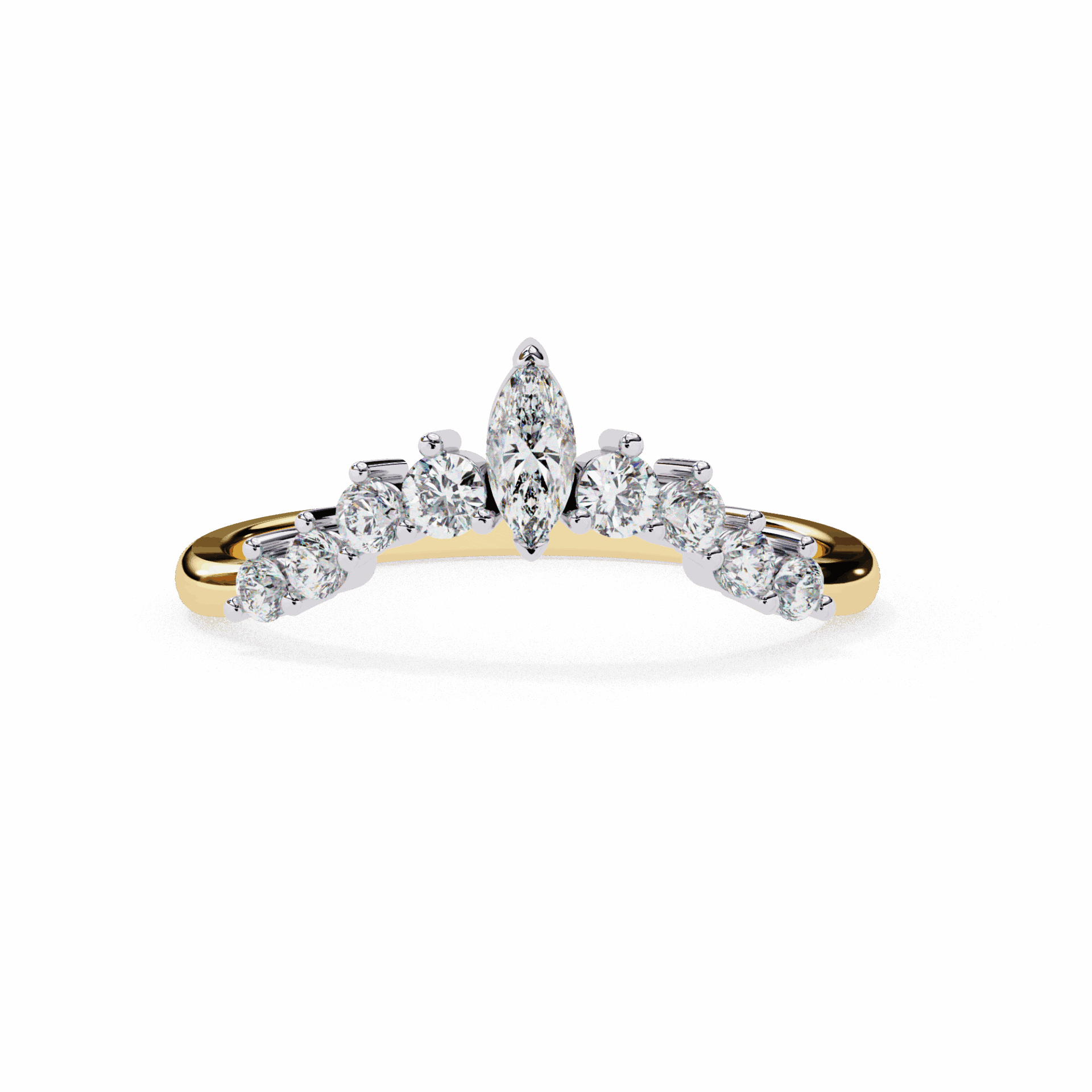 9 diamonds – marquise and round cuts – in a delicate timeless band. Elongating shapes, everyday elegance.