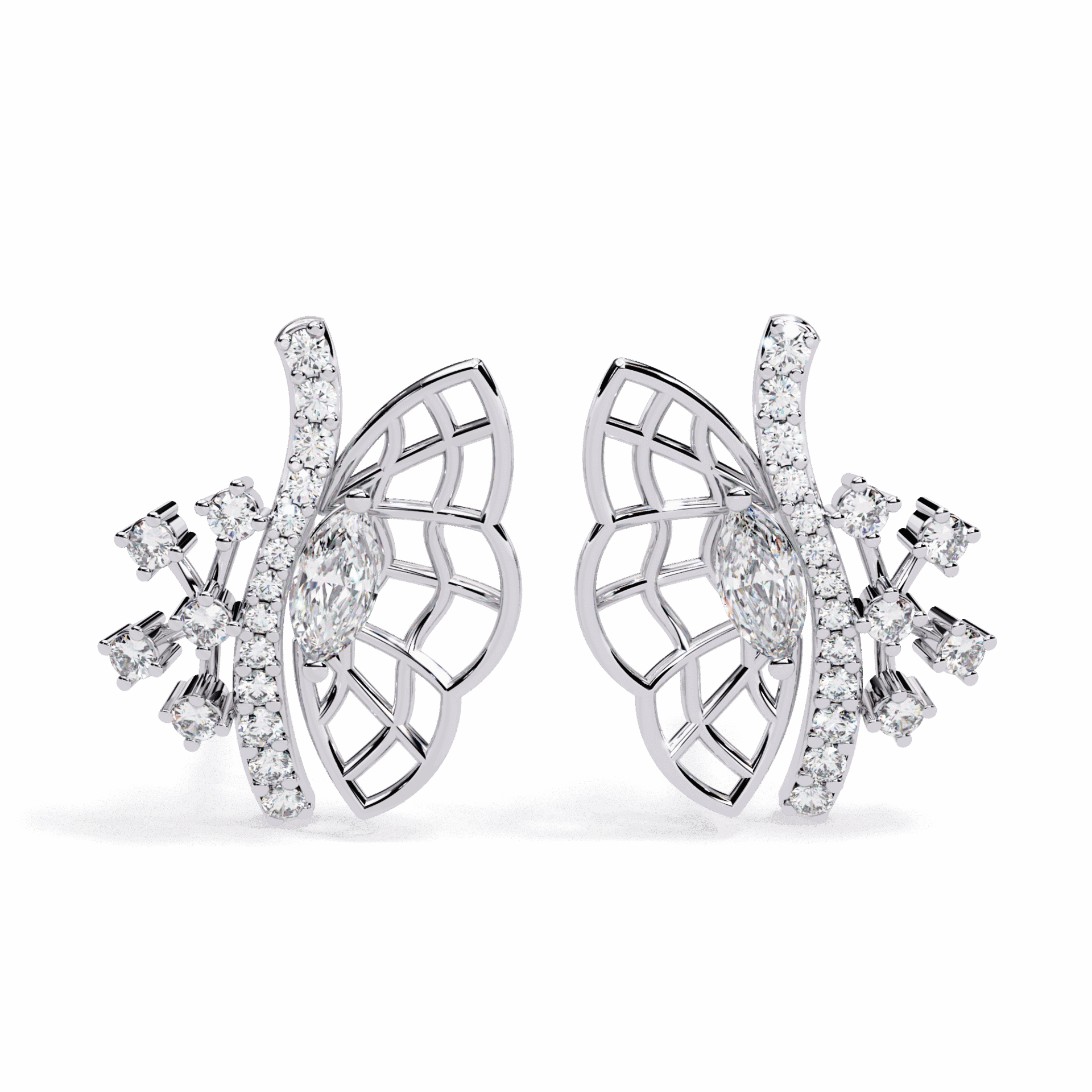 38 diamonds – marquise and round – in delicate cluster formations. Petite mixed-cut charm.