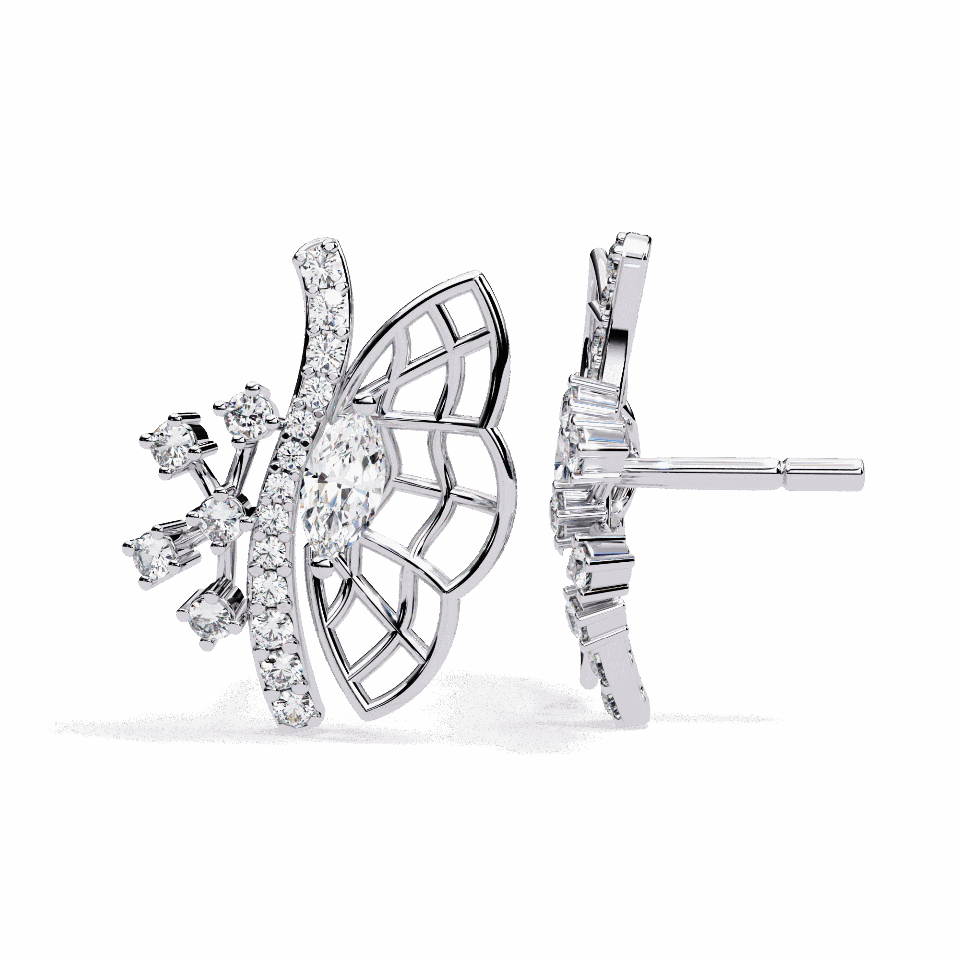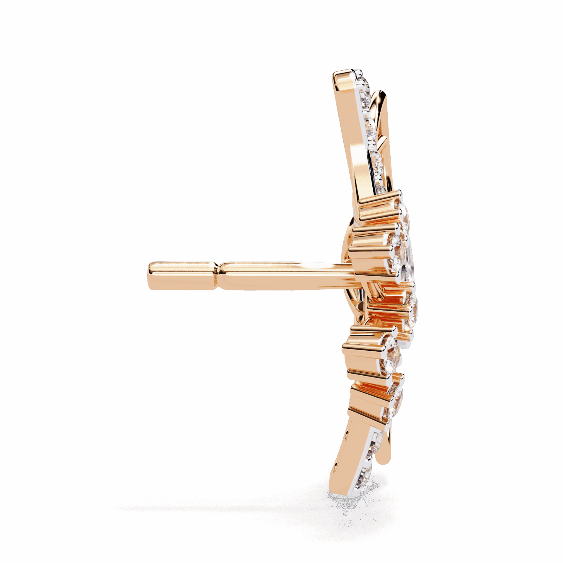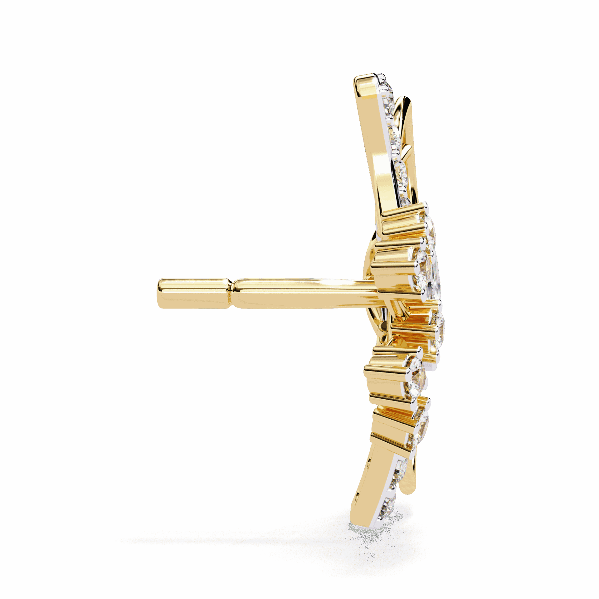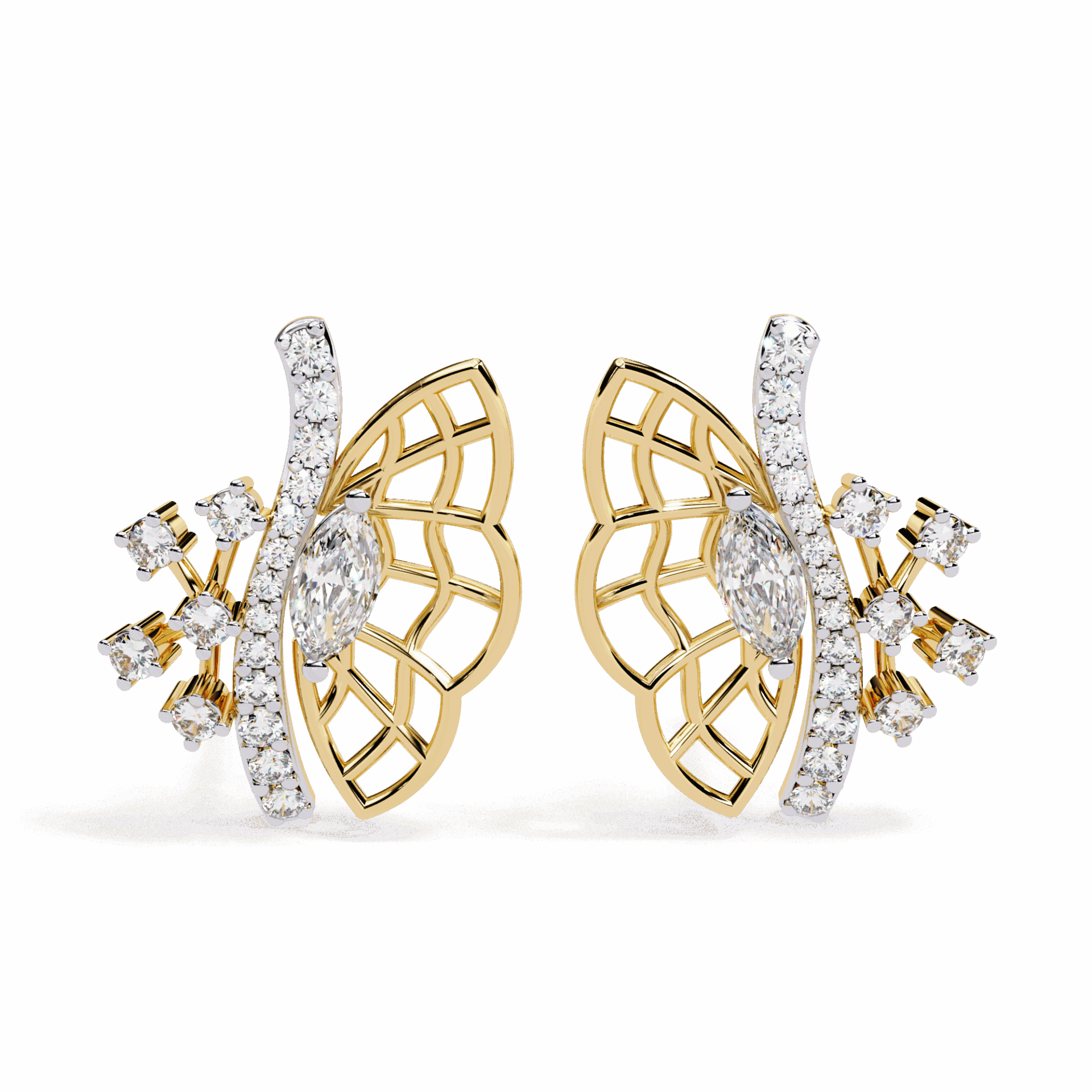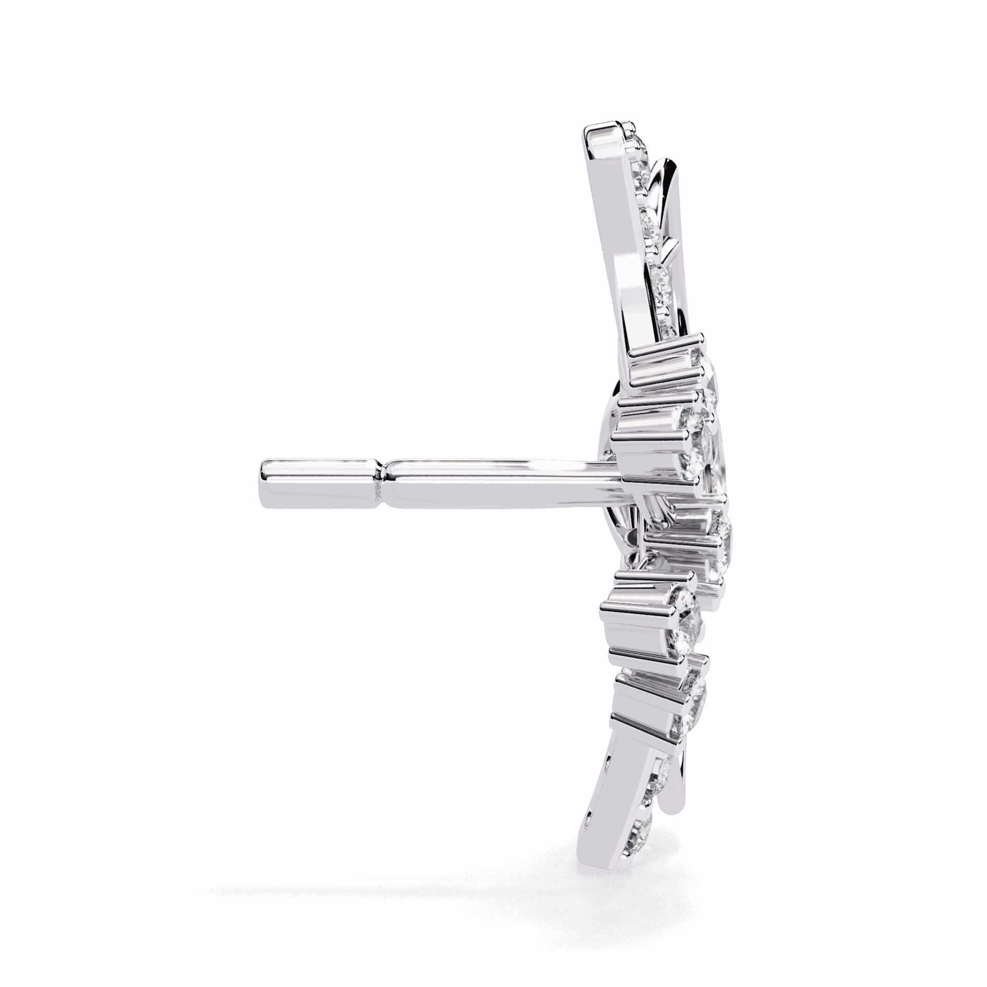 38 lab-grown diamonds – marquise and round cuts – totaling 0.37 carats in delicate cluster formations. The mix of cuts creates visual interest that single-cut clusters can’t match.