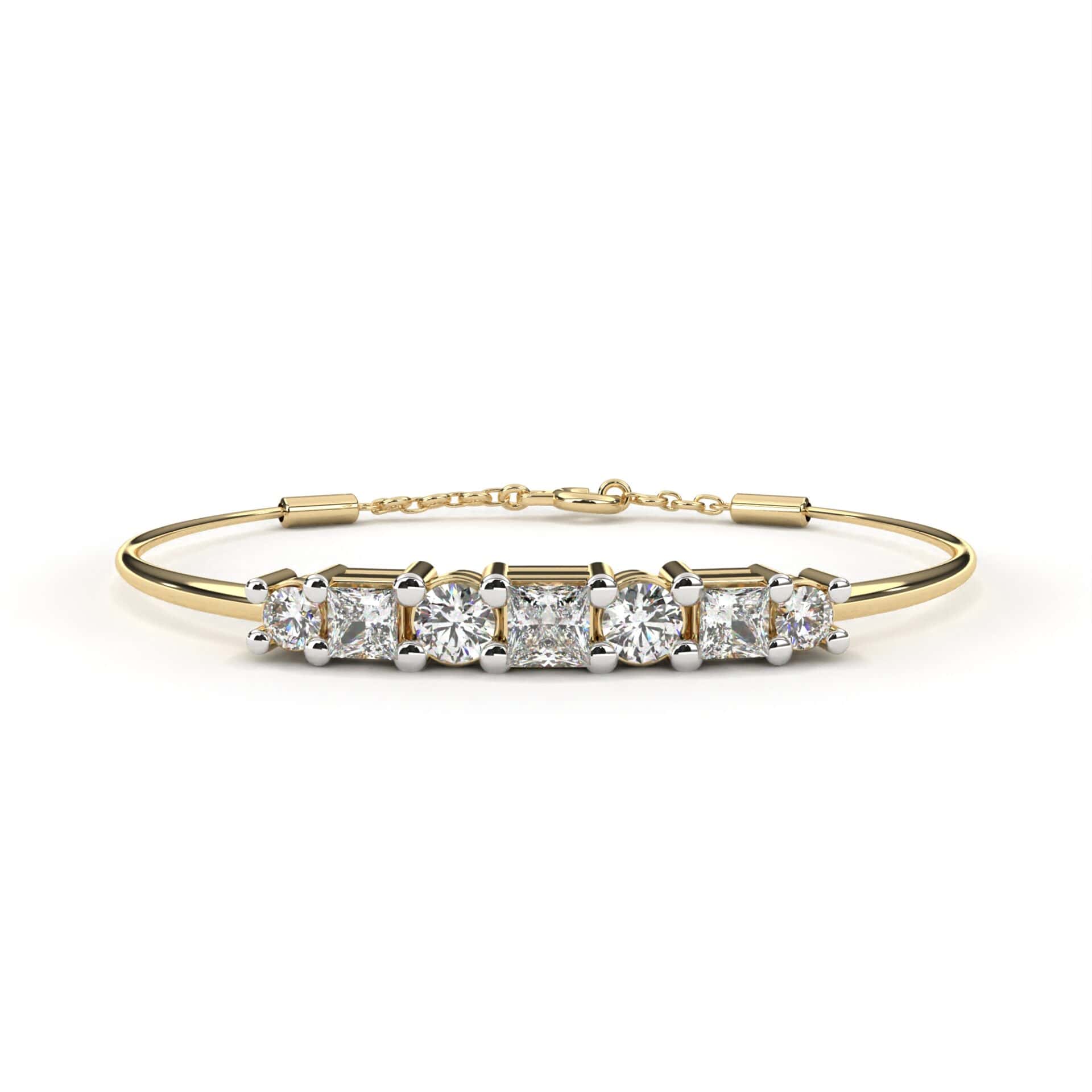 This bracelet alternates princess-cut and round lab-grown diamonds along a structured gold chain. 7 diamonds total - the princess cuts bring sharp angles, the rounds bring classic brilliance. Together, they create rhythm.