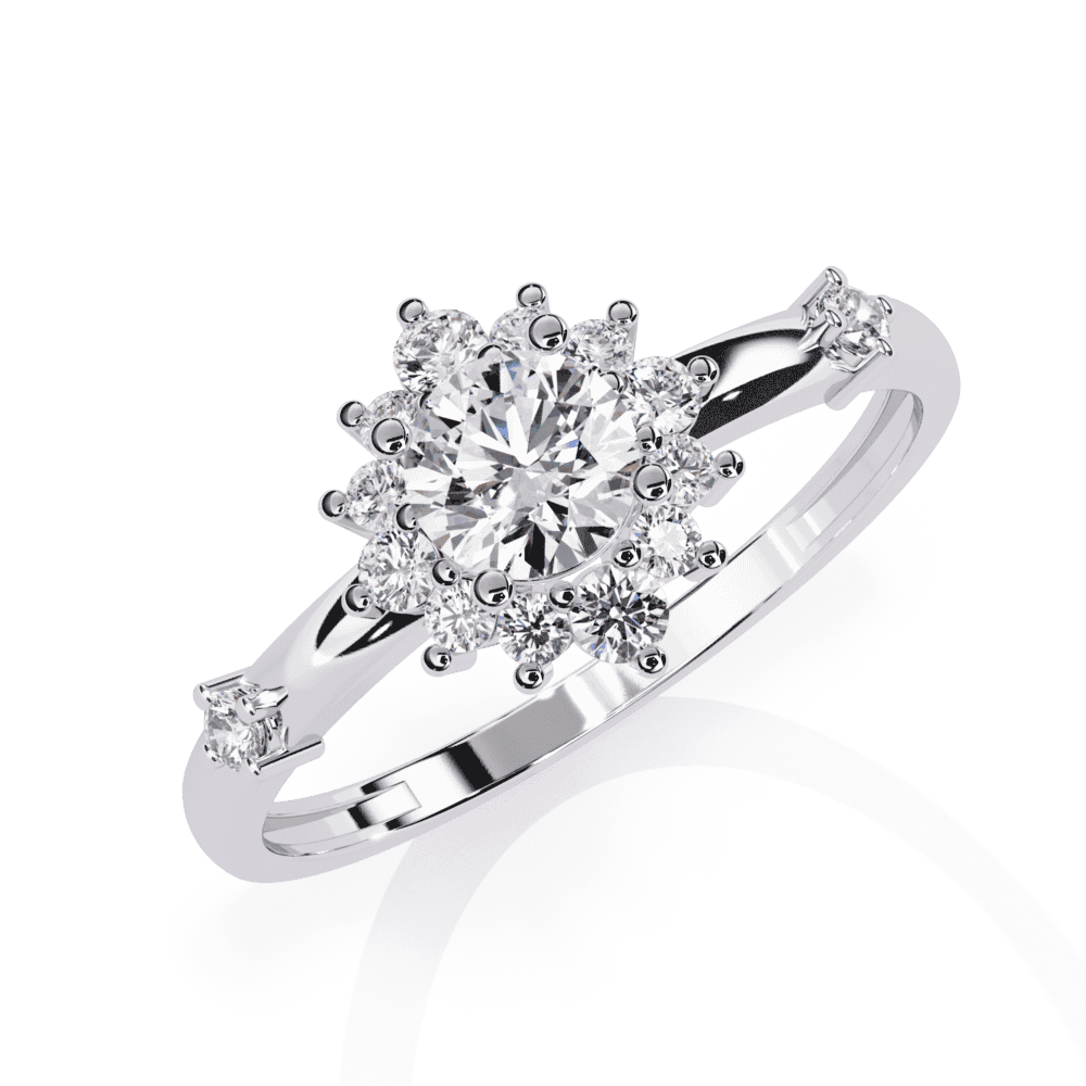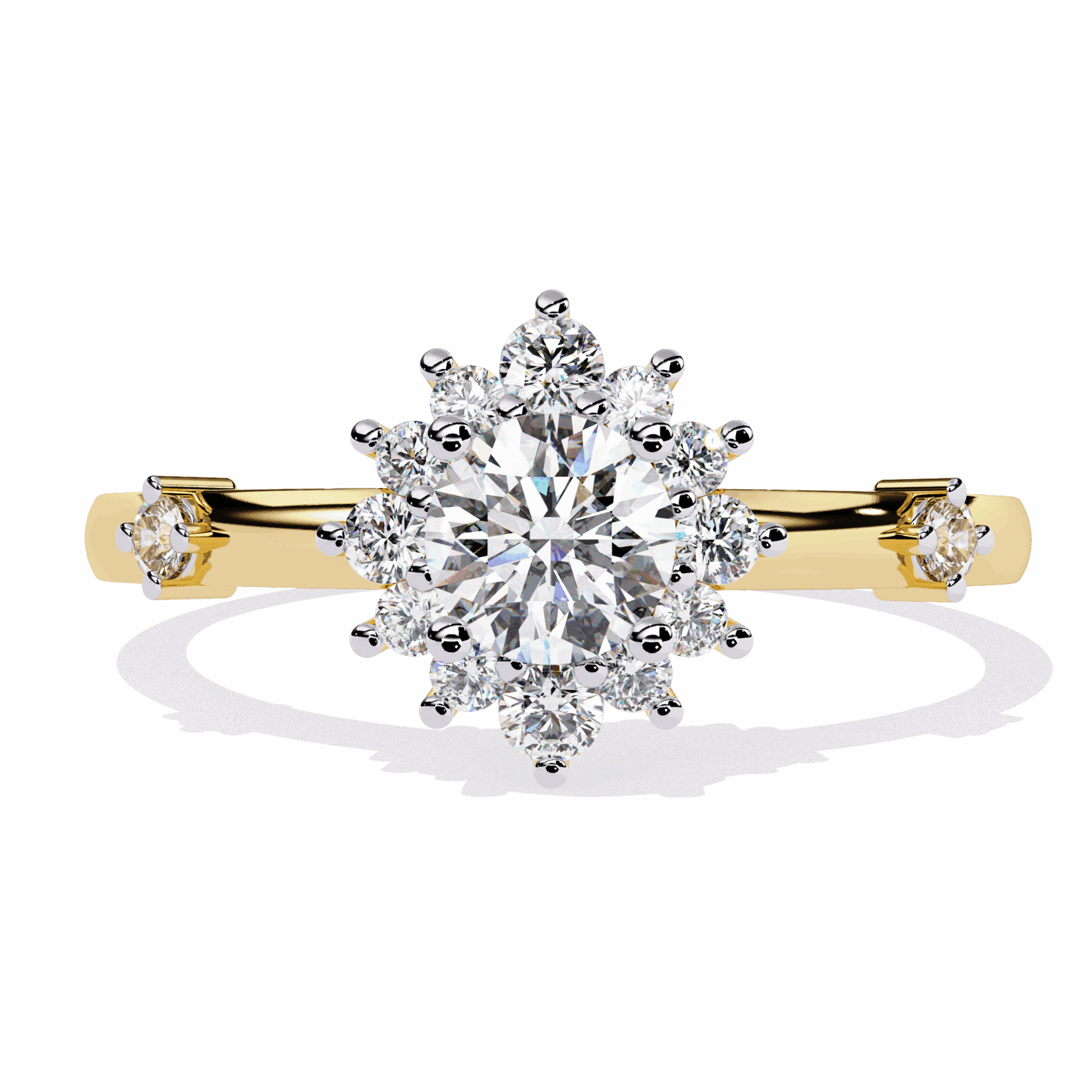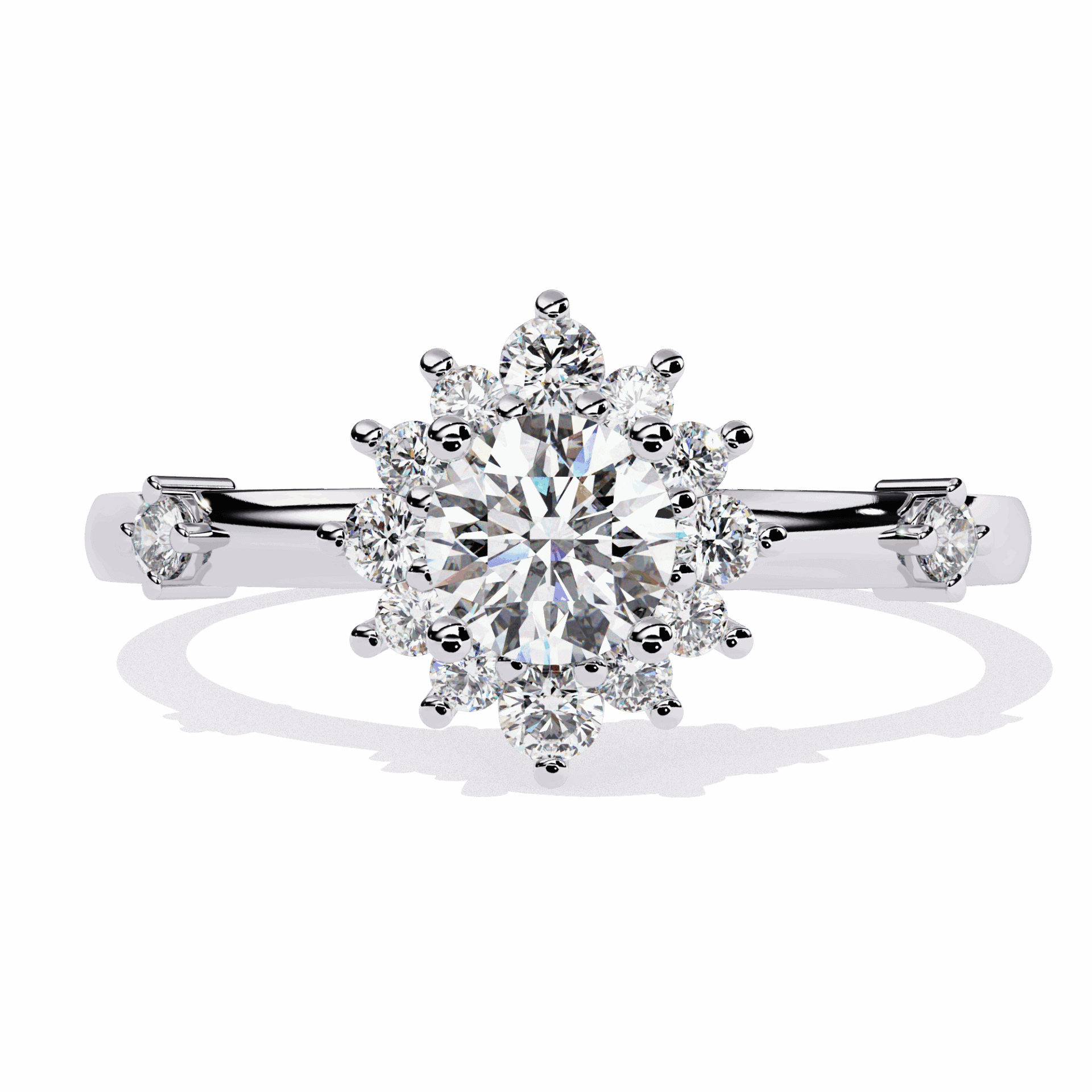 A round lab-grown diamond with 15 accent diamonds totaling 0.55 carats. Maximum brilliance in petite, everyday scale.