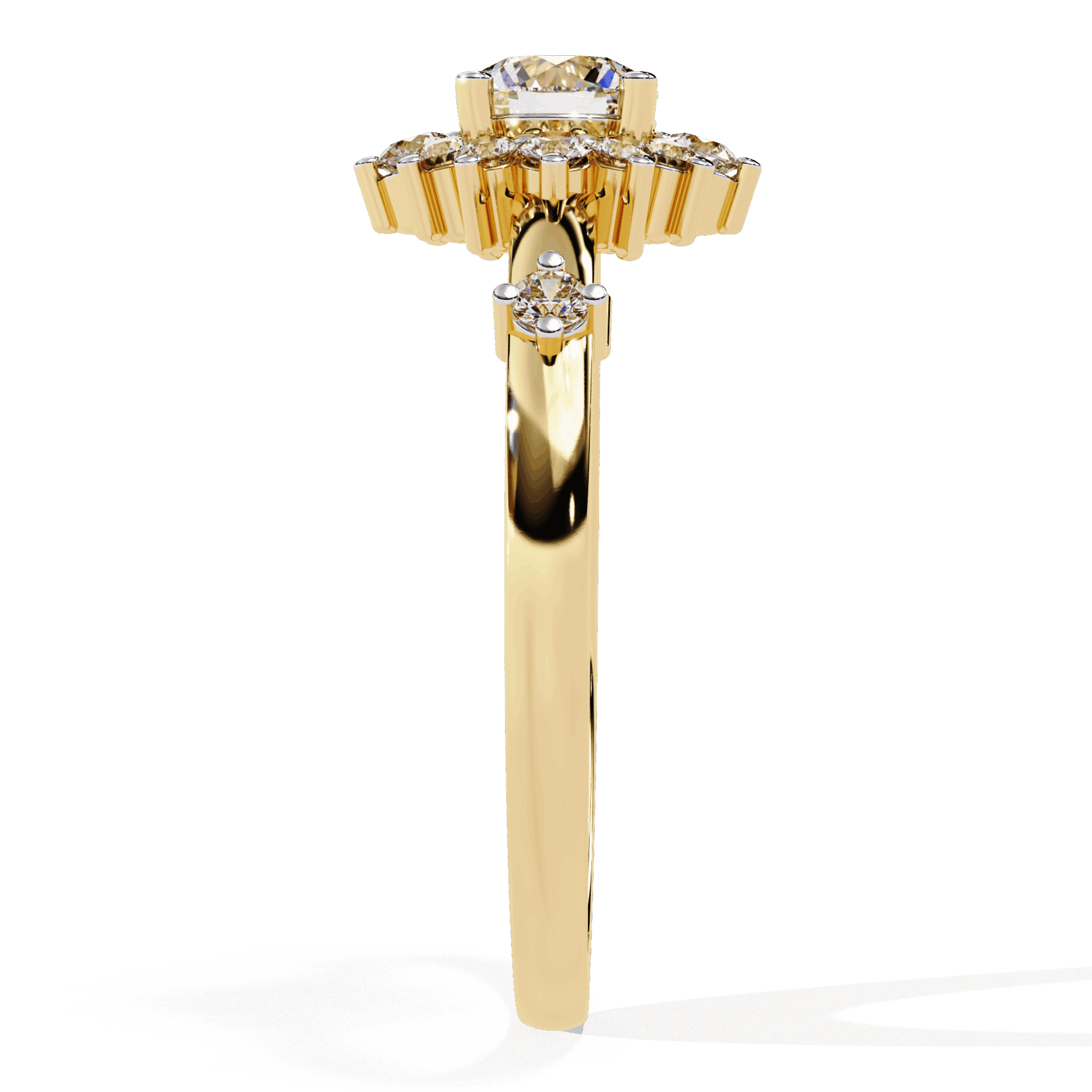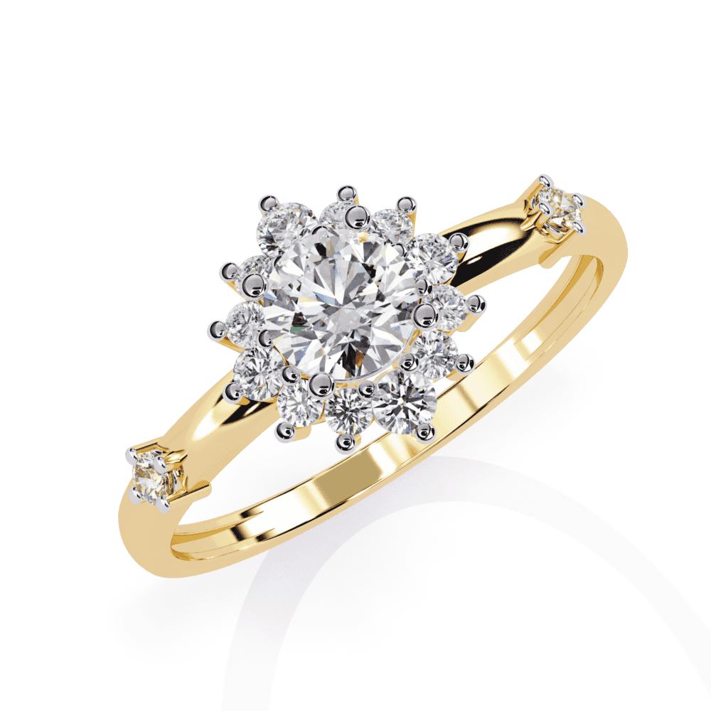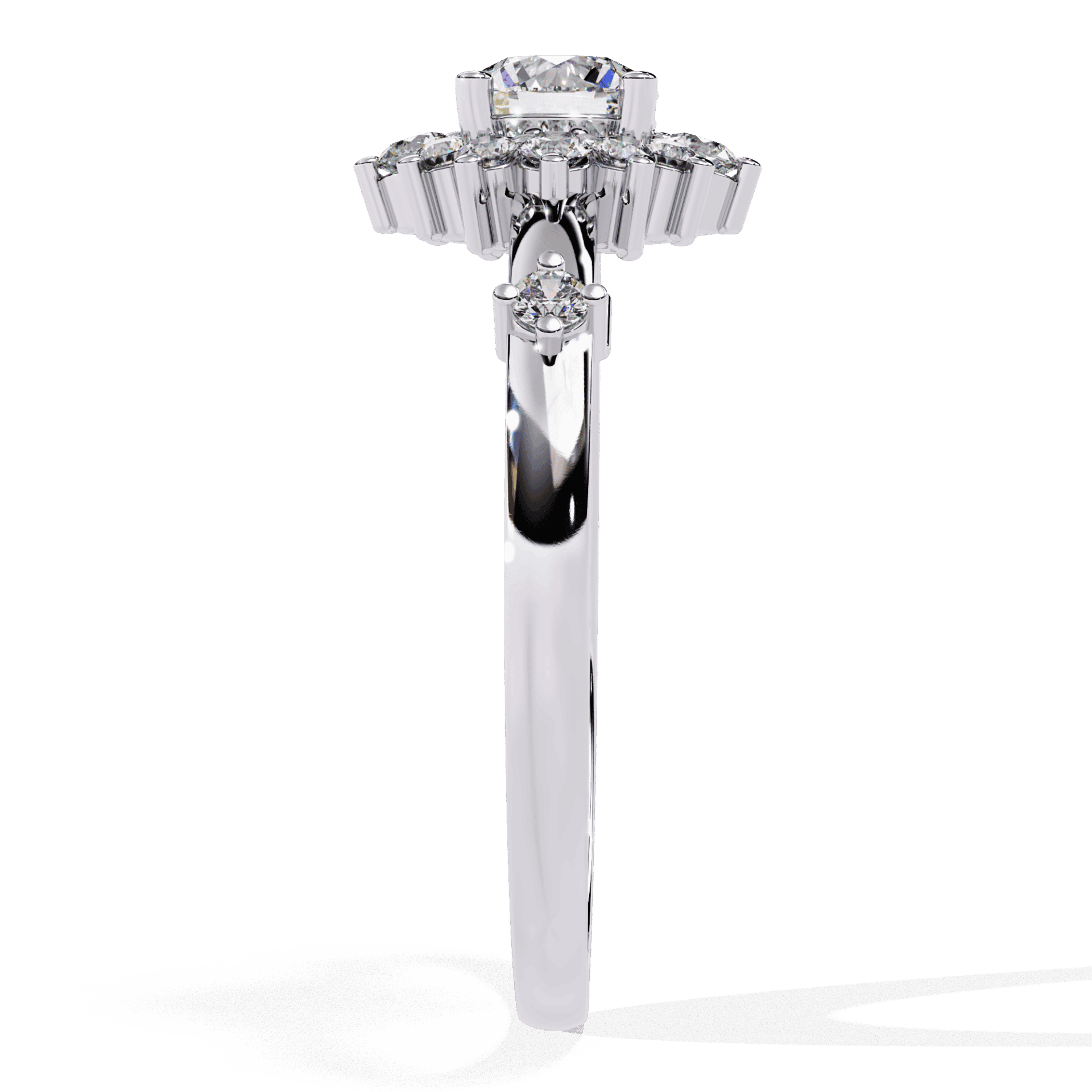 A round lab-grown diamond with 15 accent diamonds totaling 0.55 carats. Maximum brilliance in petite, everyday scale.