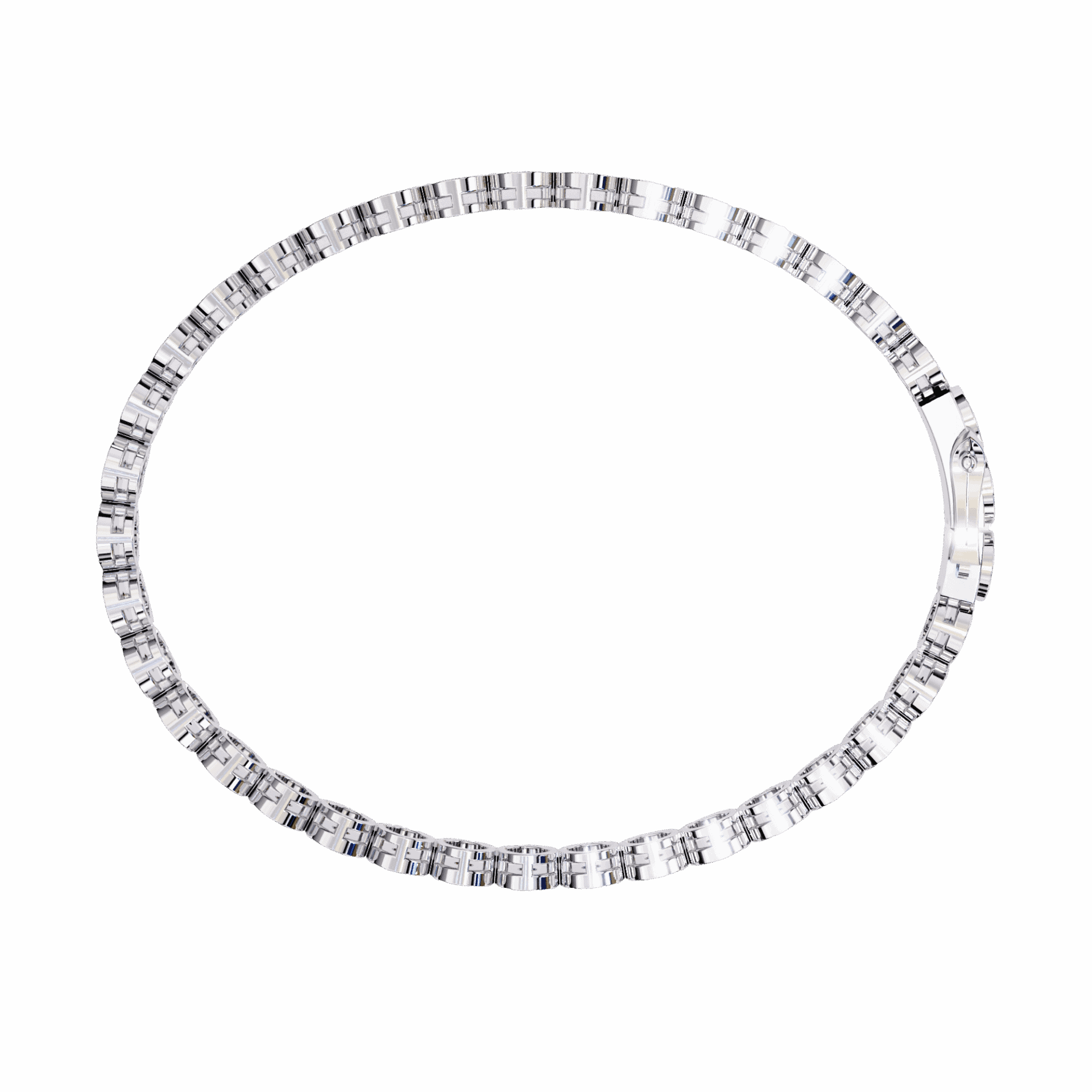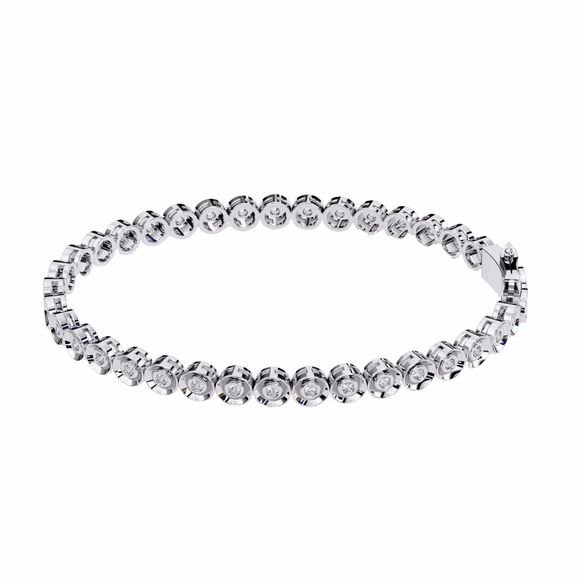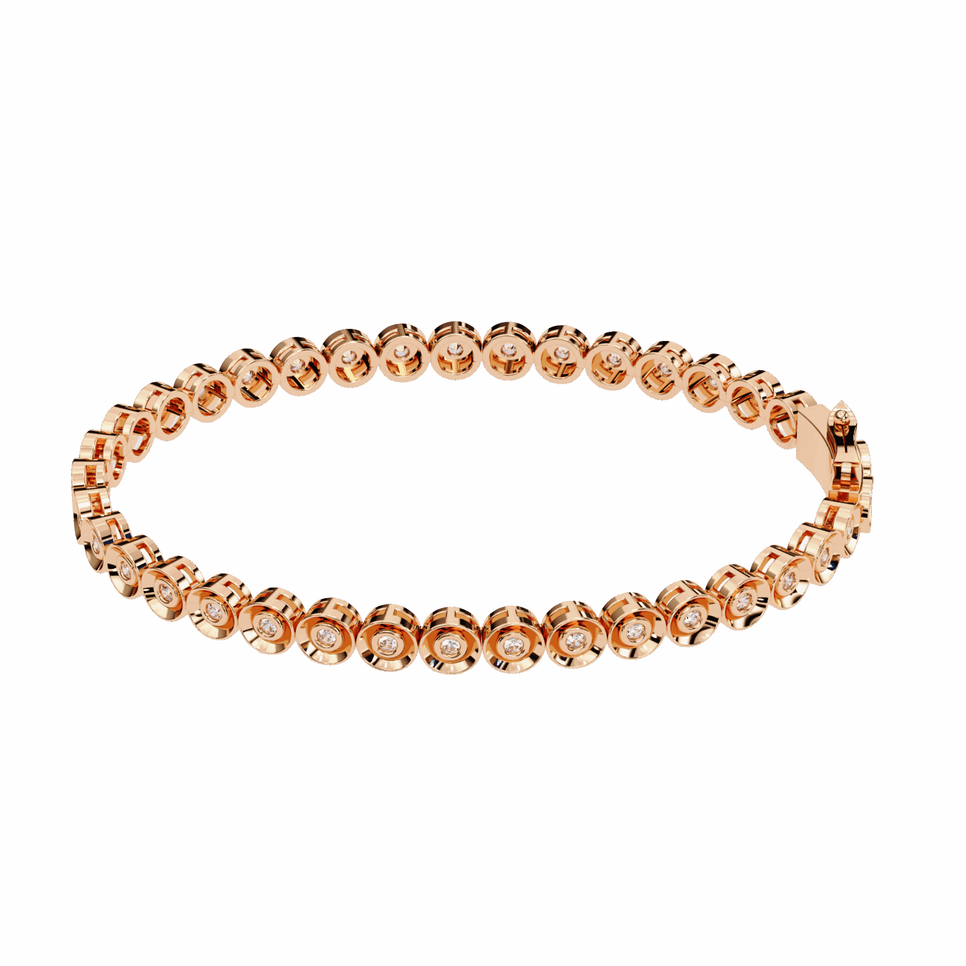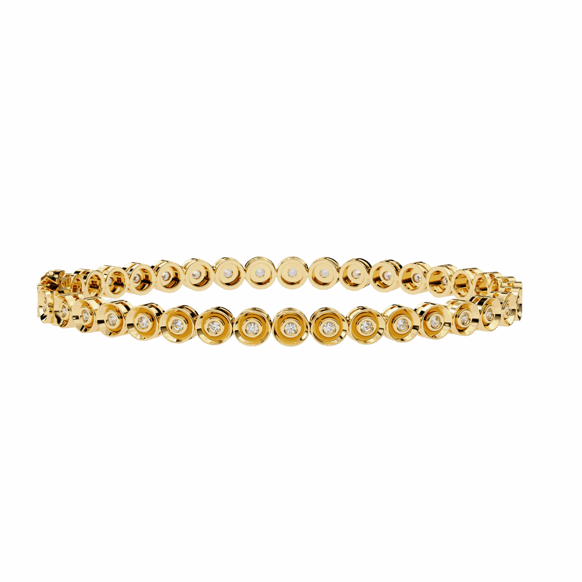 38 round lab-grown diamonds set around a flexible gold band. It has structure - holds its shape on the wrist - but enough give to feel comfortable from morning to night.