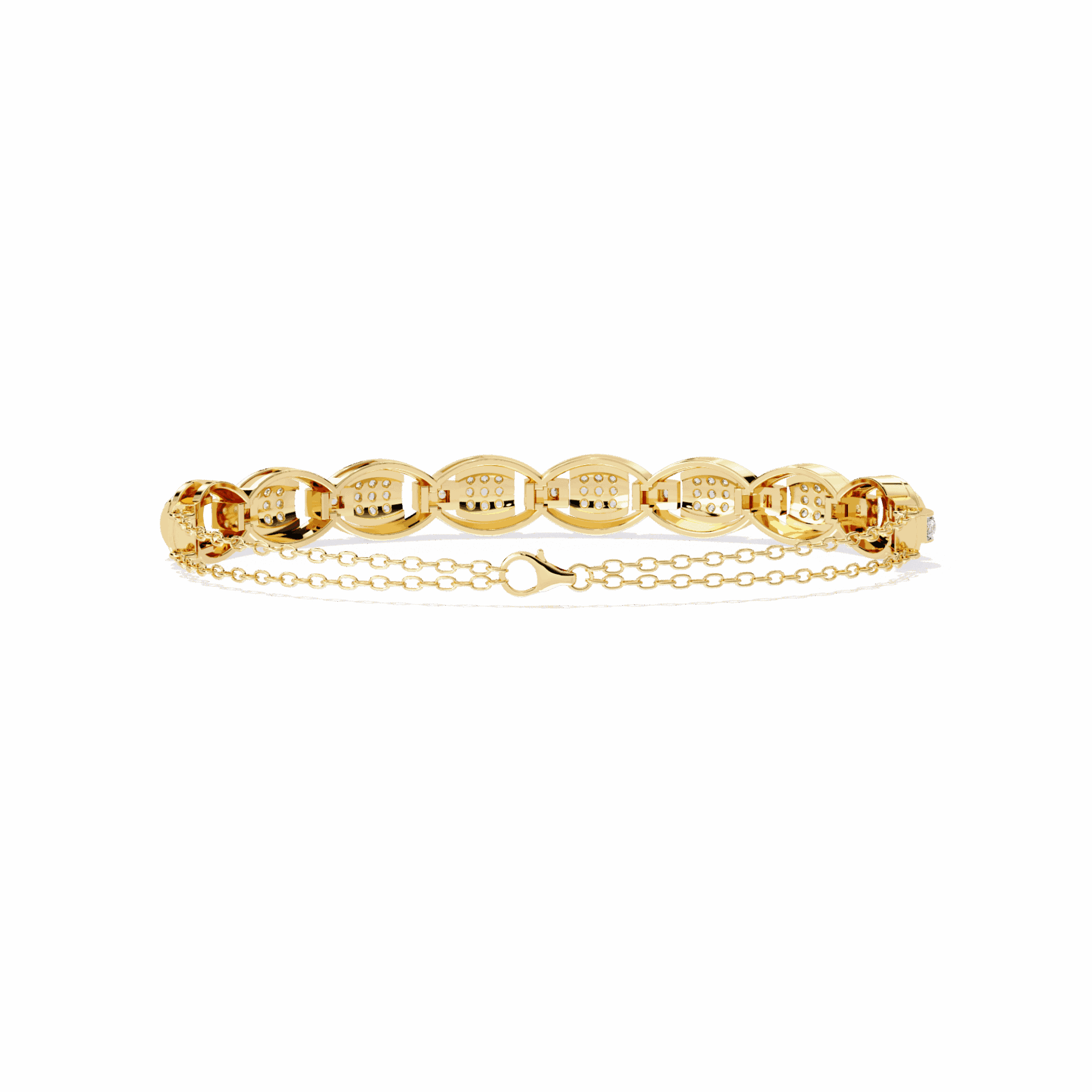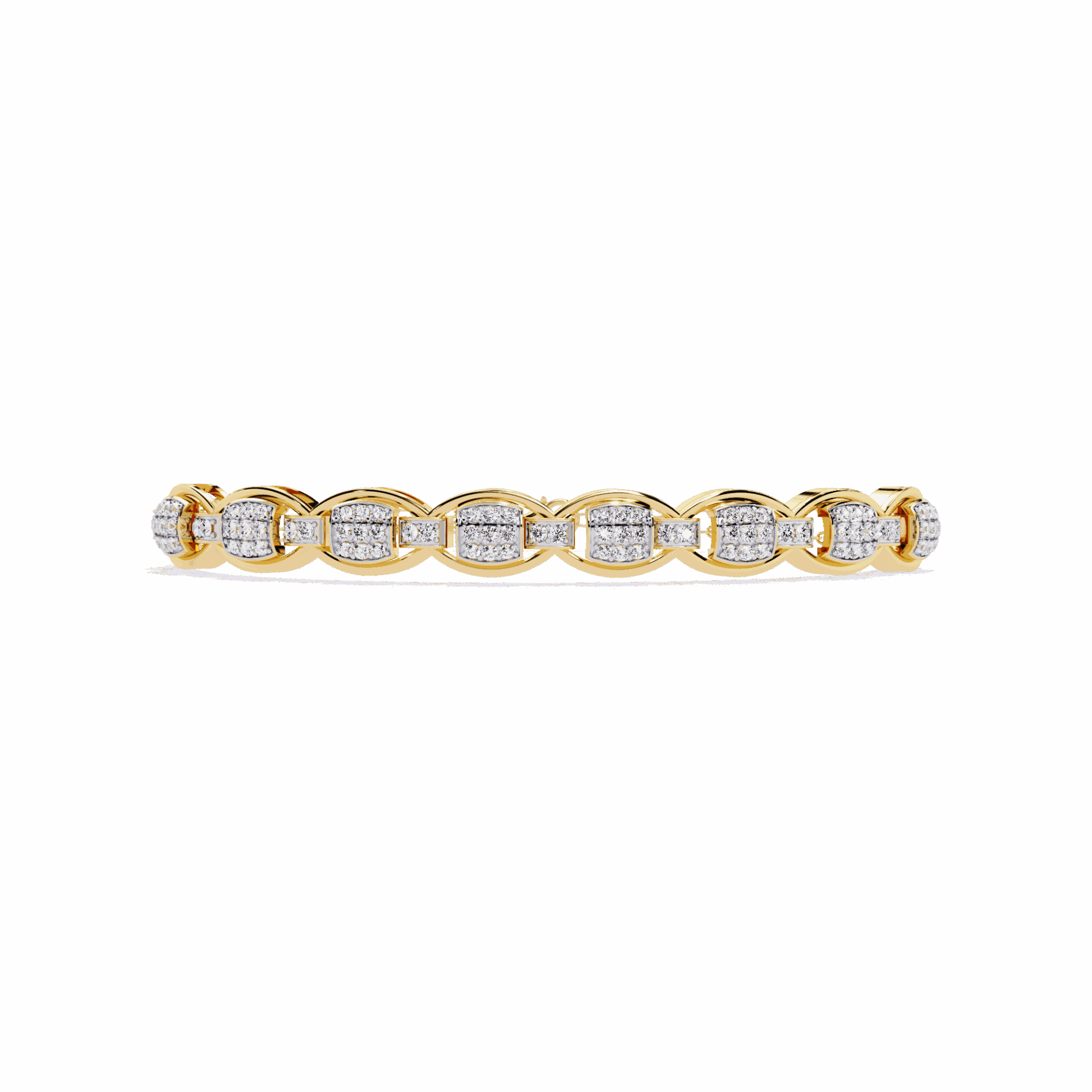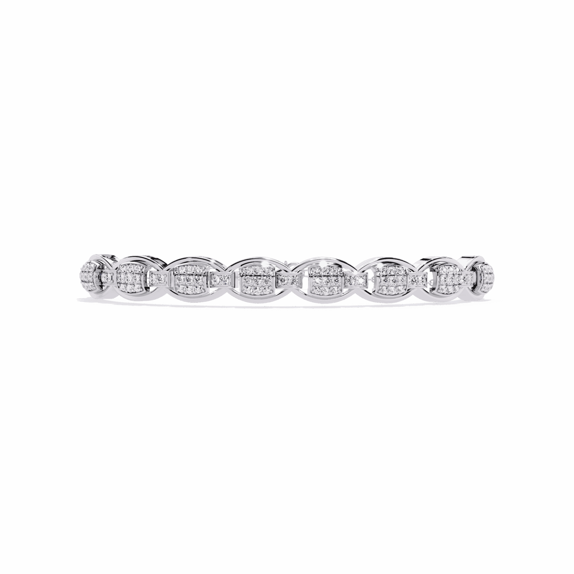 88 round diamonds in art deco-inspired geometric patterns. 1920s glamour, 2020s ethics.