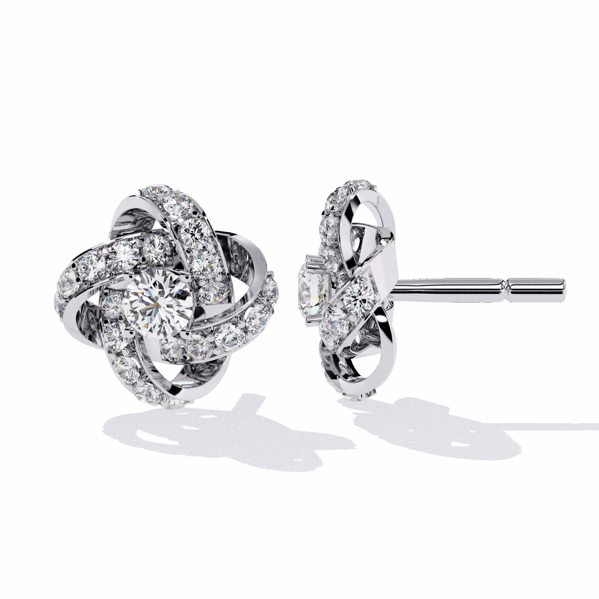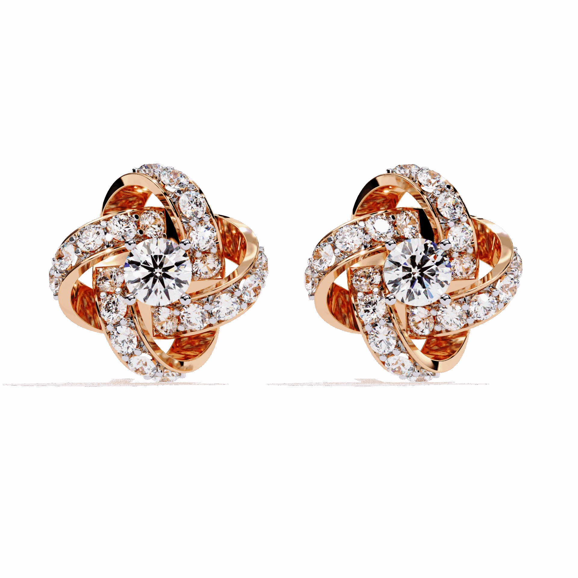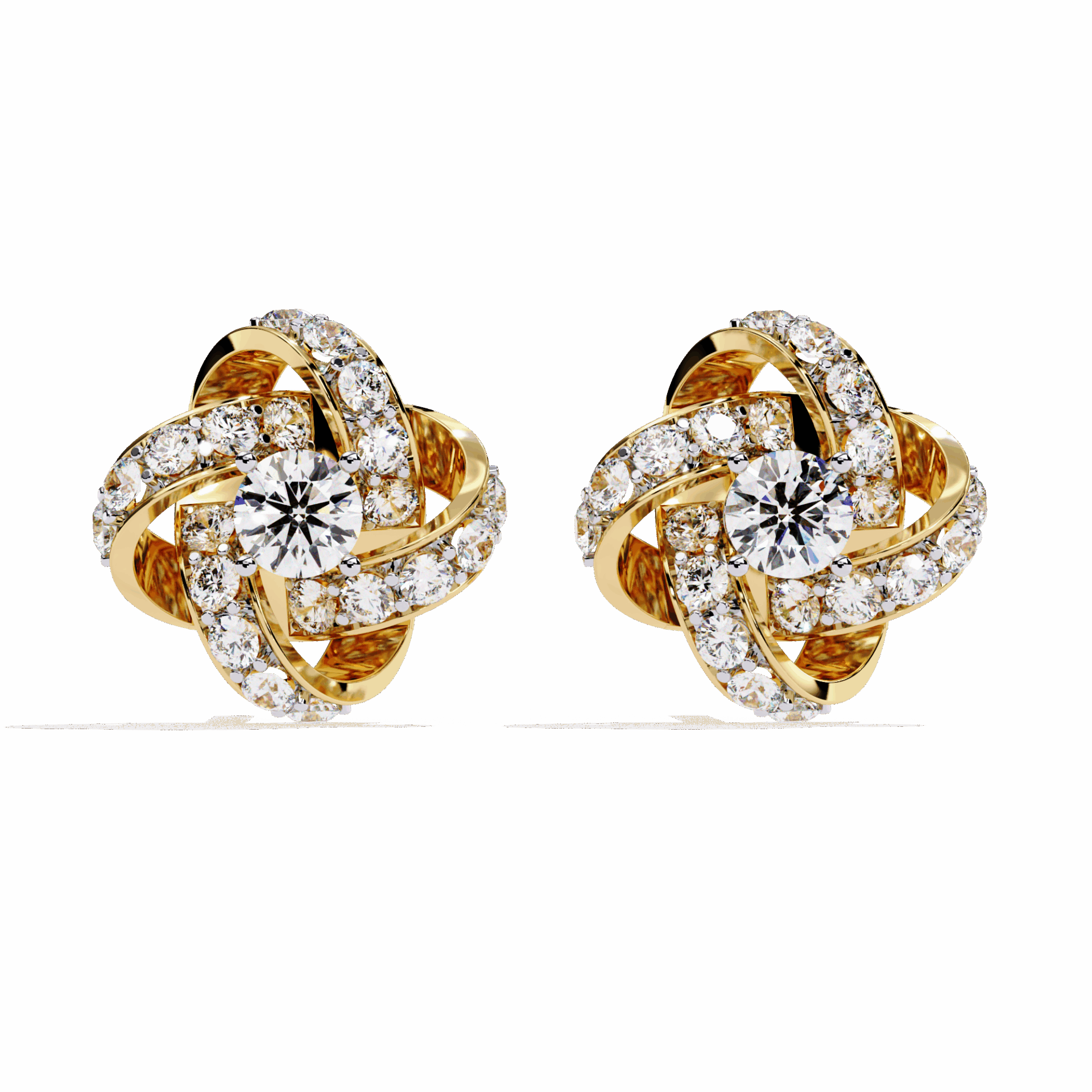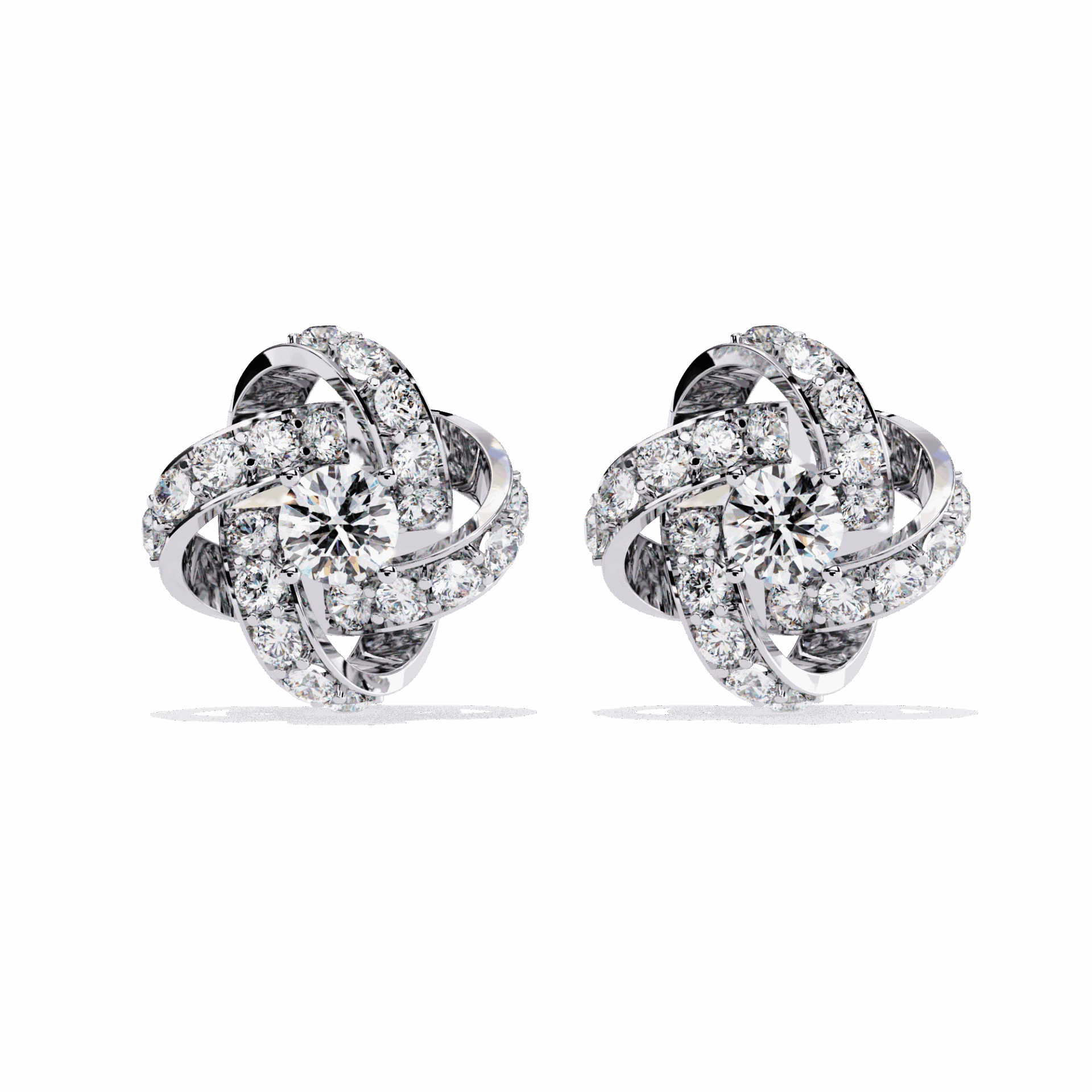 42 round diamonds in dual cluster settings. Two clusters per ear, double the impact.