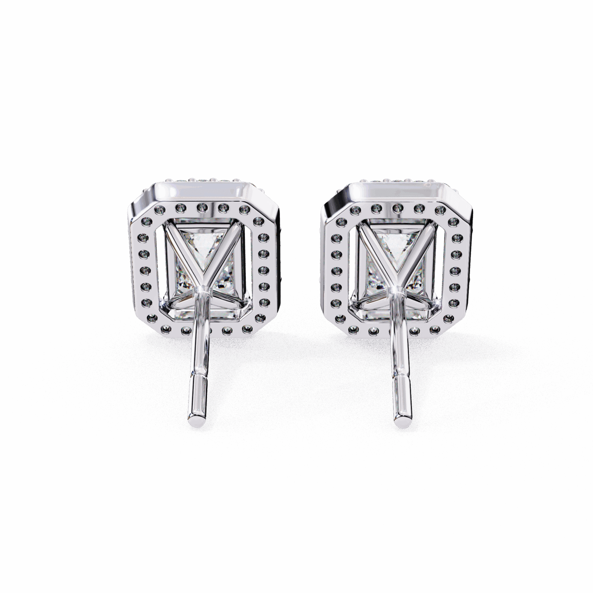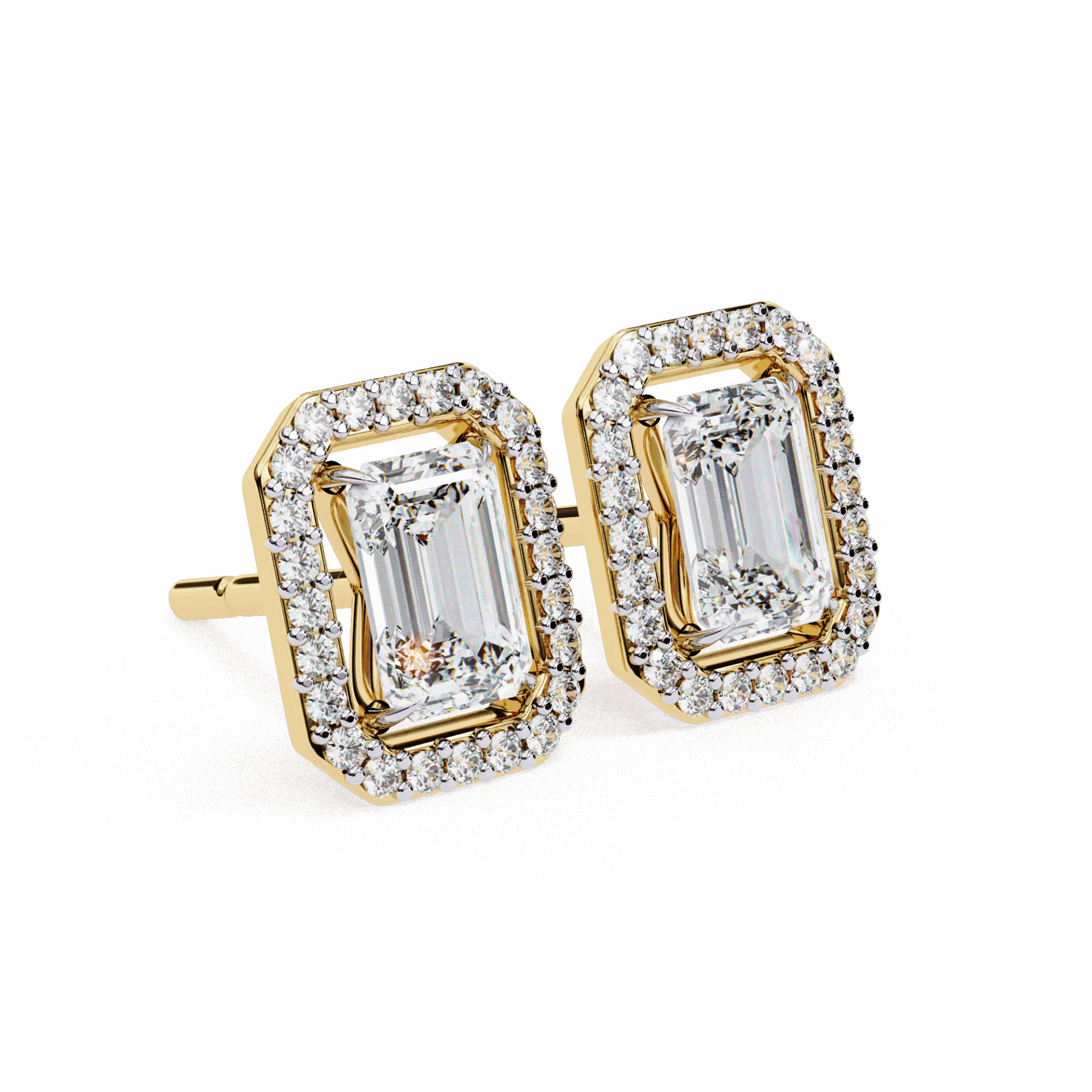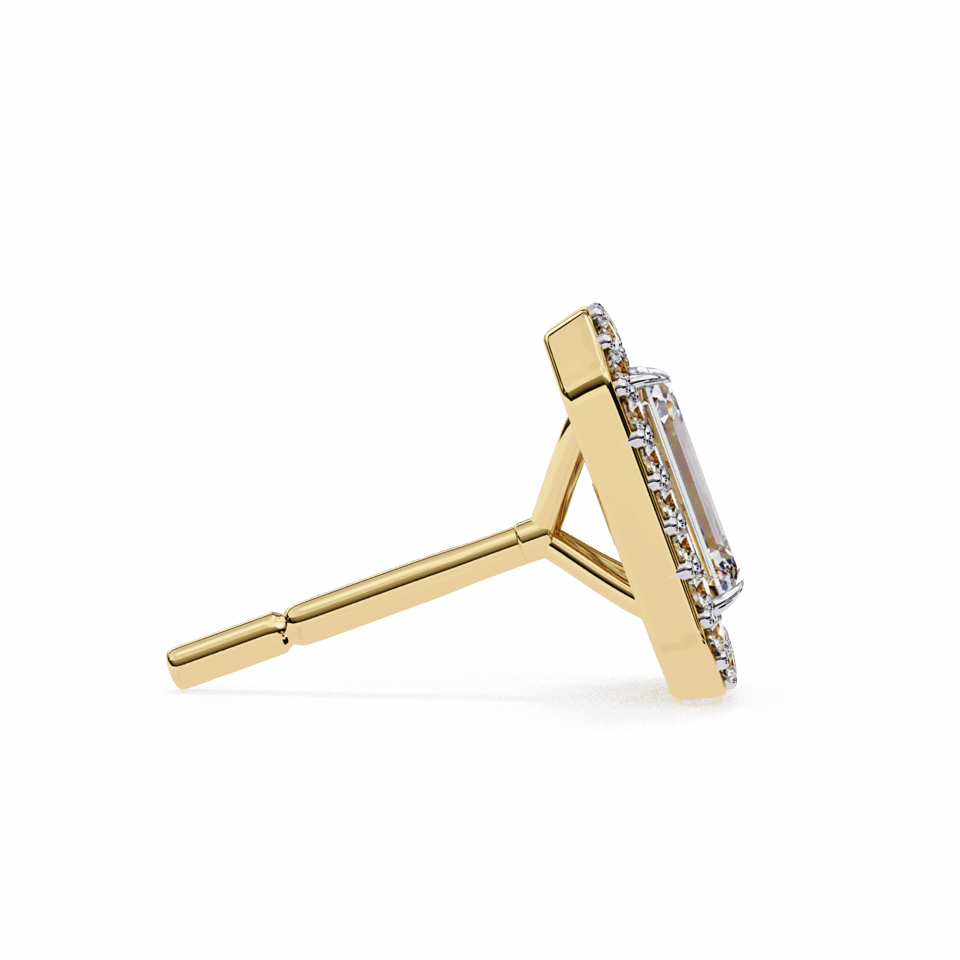 0.9 Carat Emerald and Round Diamond Stud Earrings