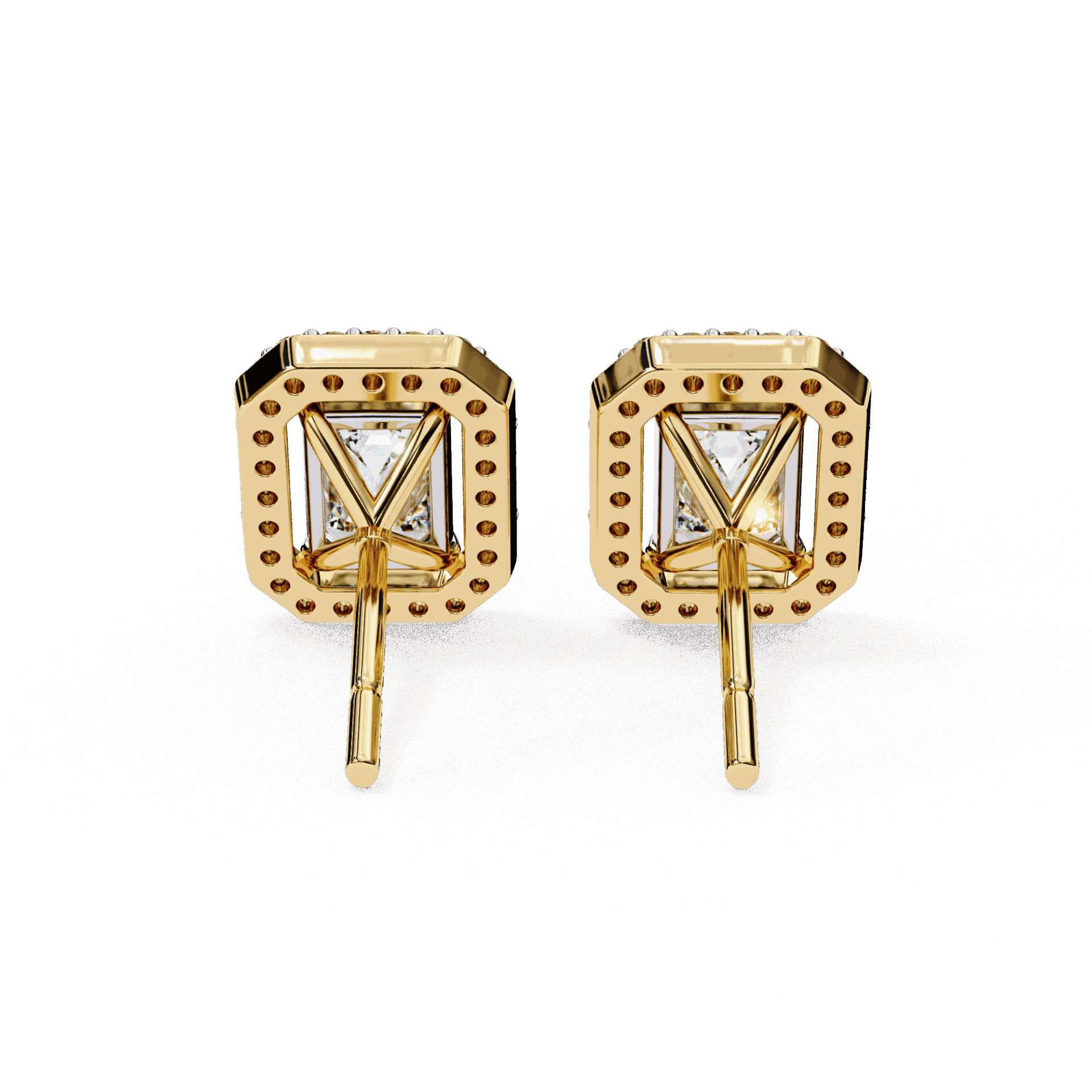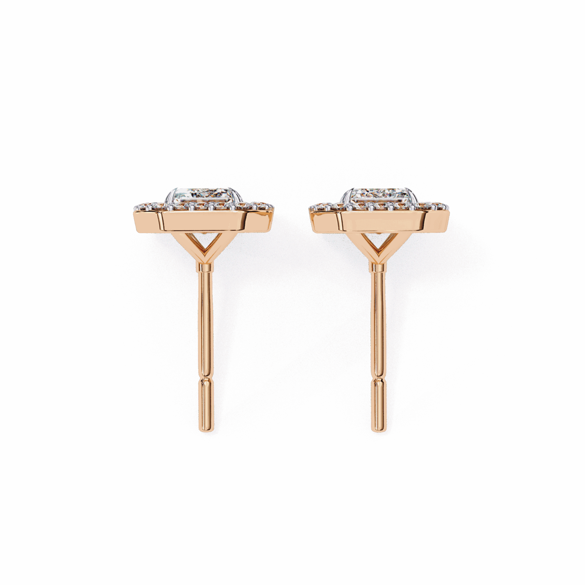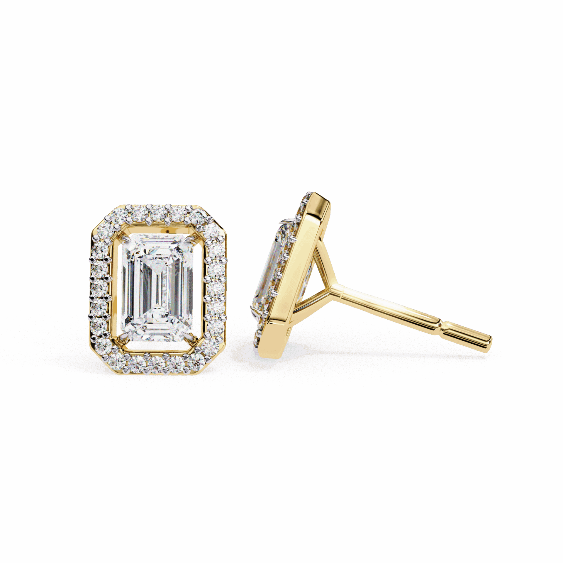 0.9 Carat Emerald and Round Diamond Stud Earrings