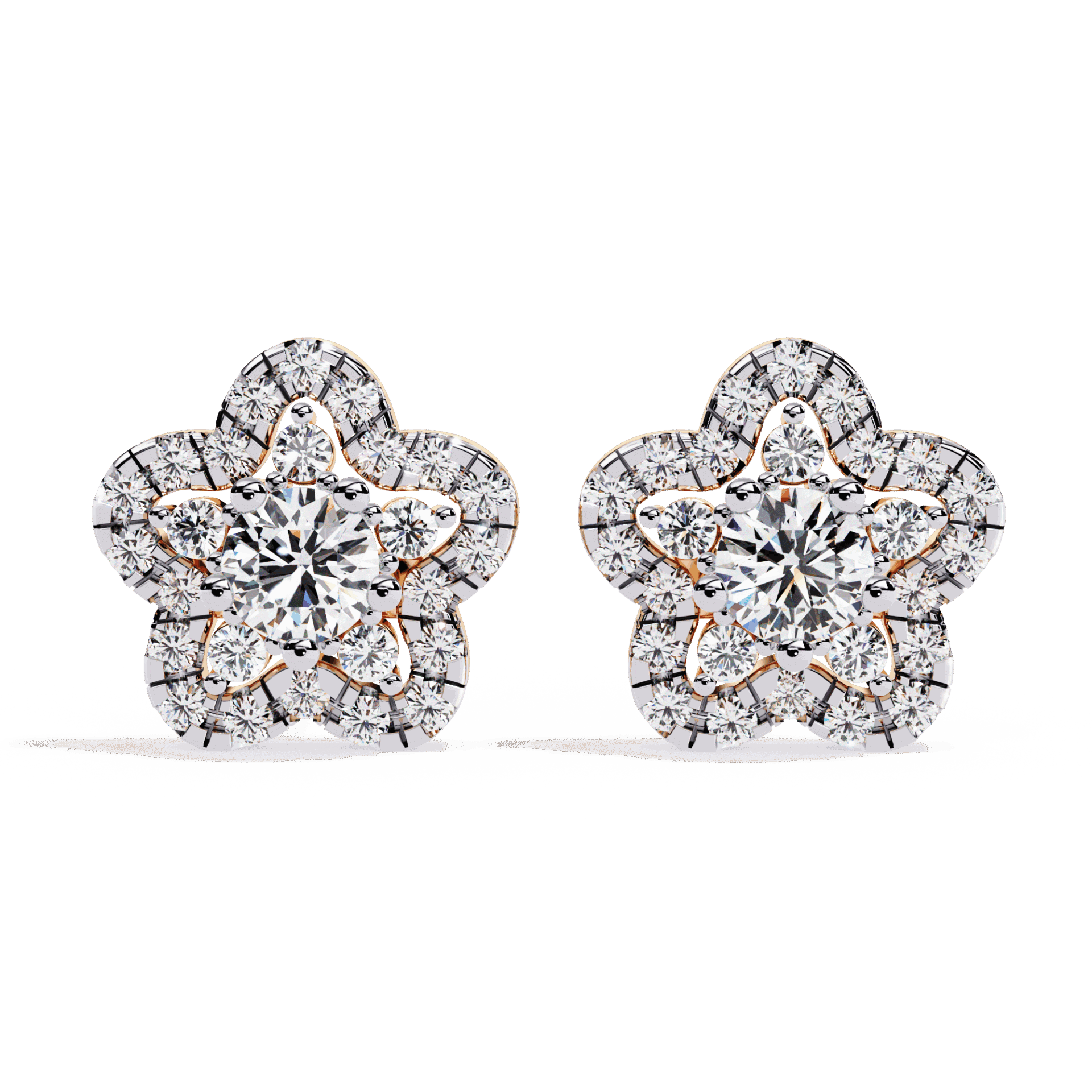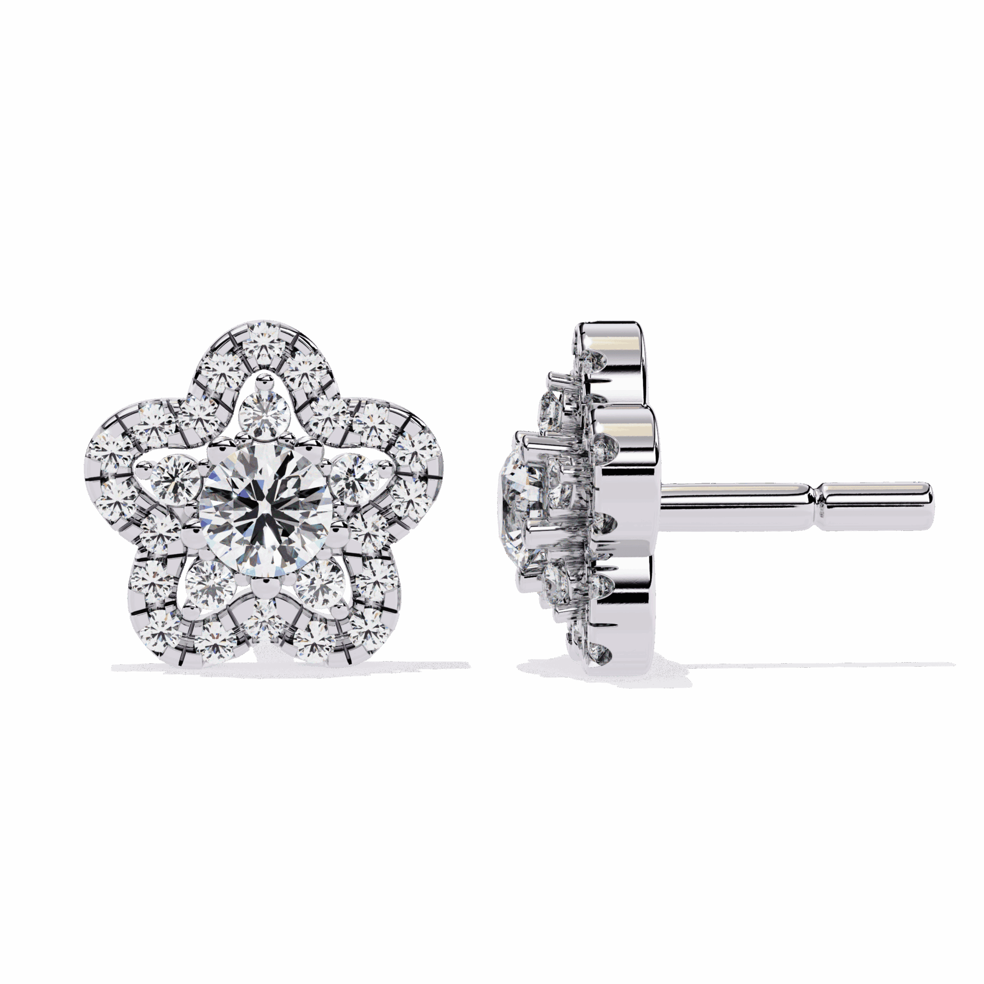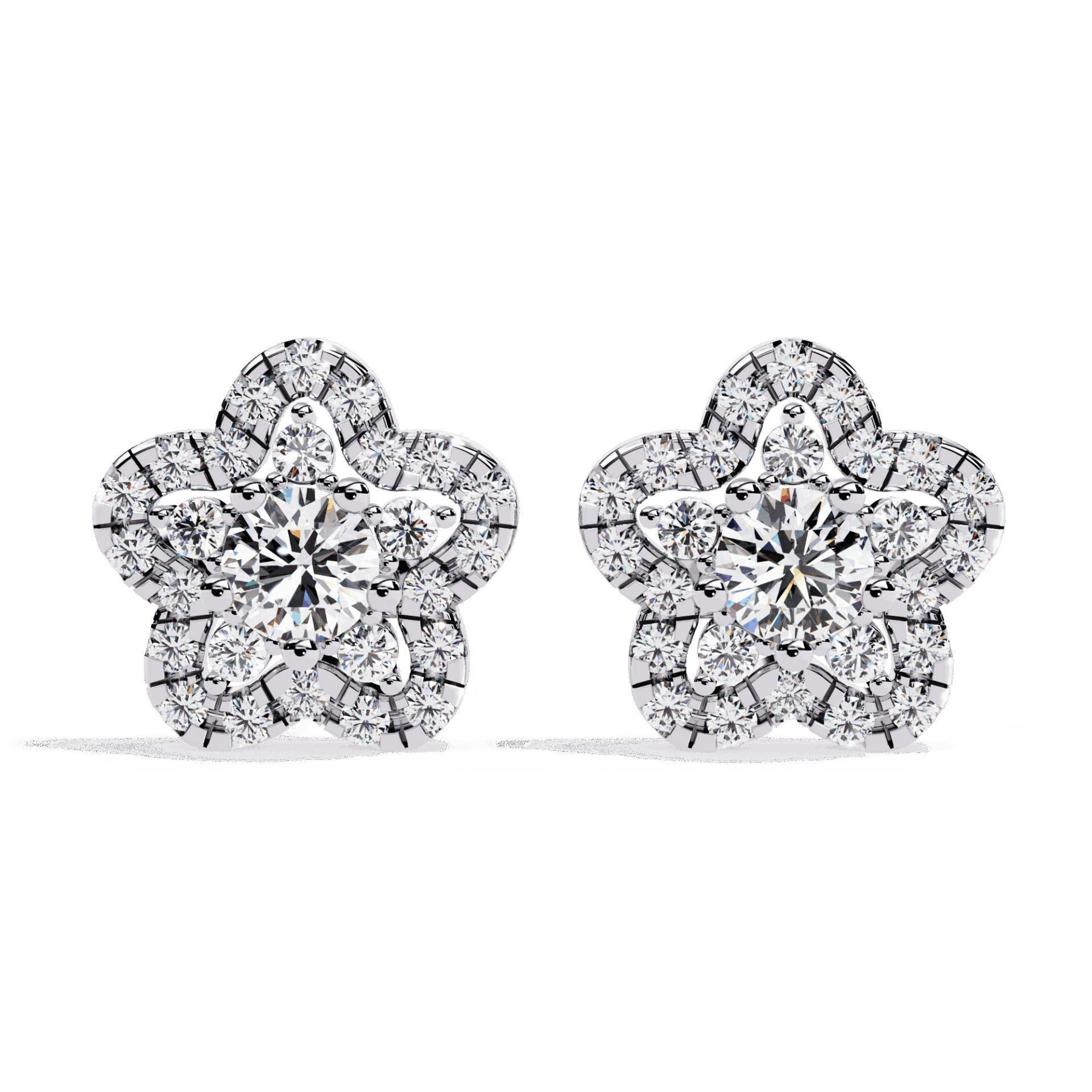 52 round lab-grown diamonds totaling 0.87 carats in radiant trio cluster settings. Three clusters per ear arranged for maximum light reflection and visual impact.