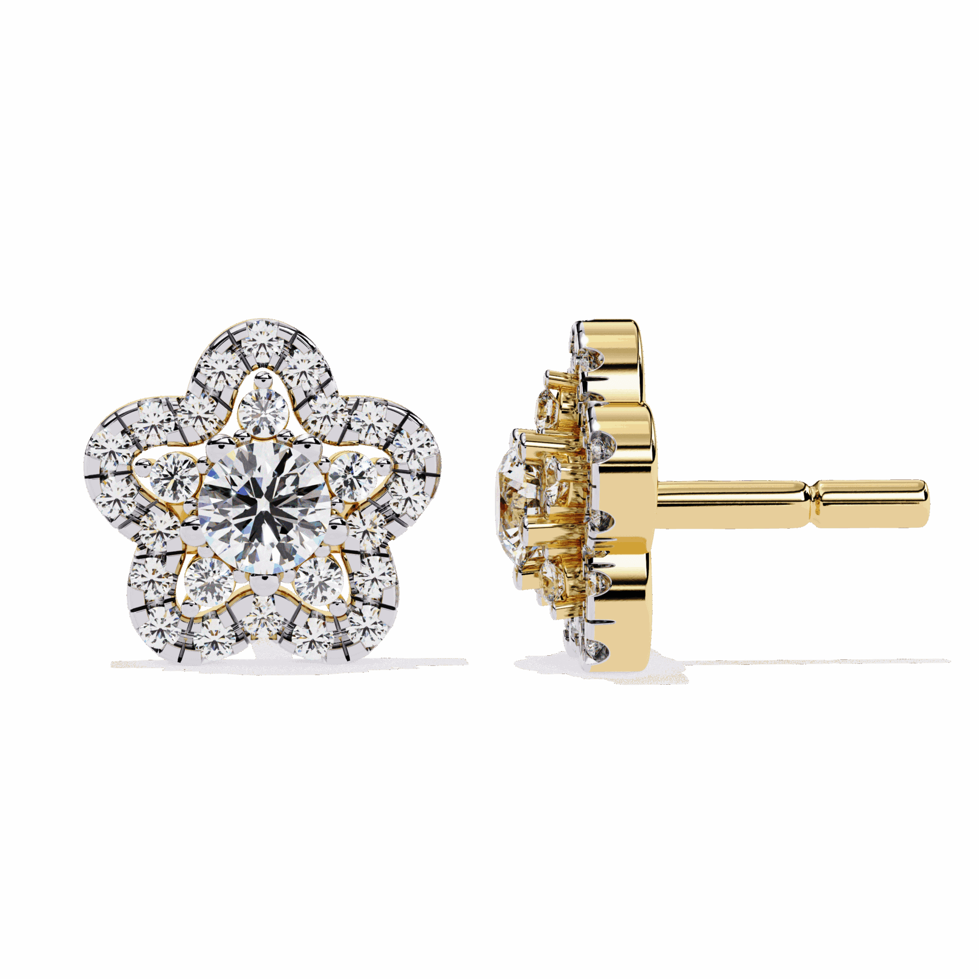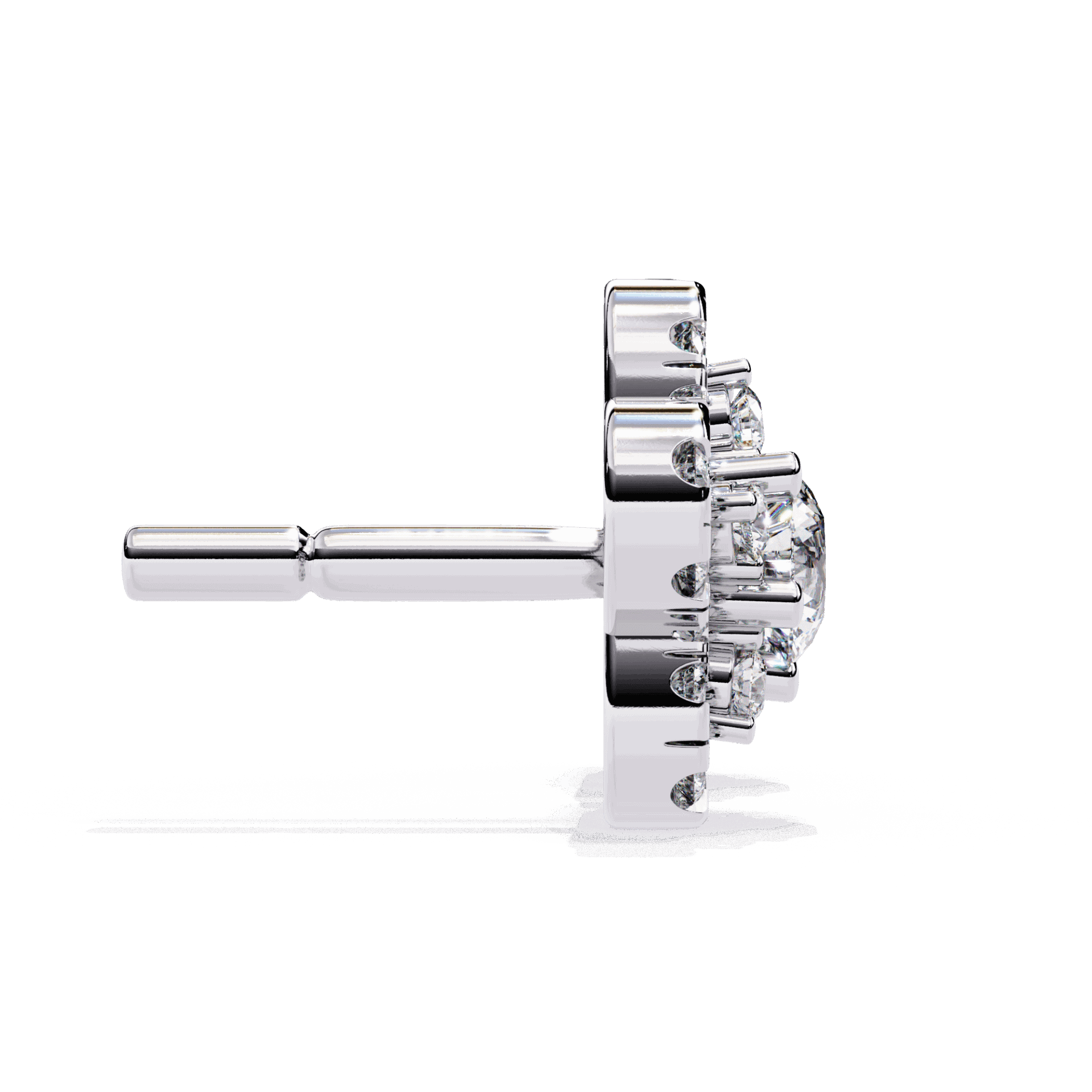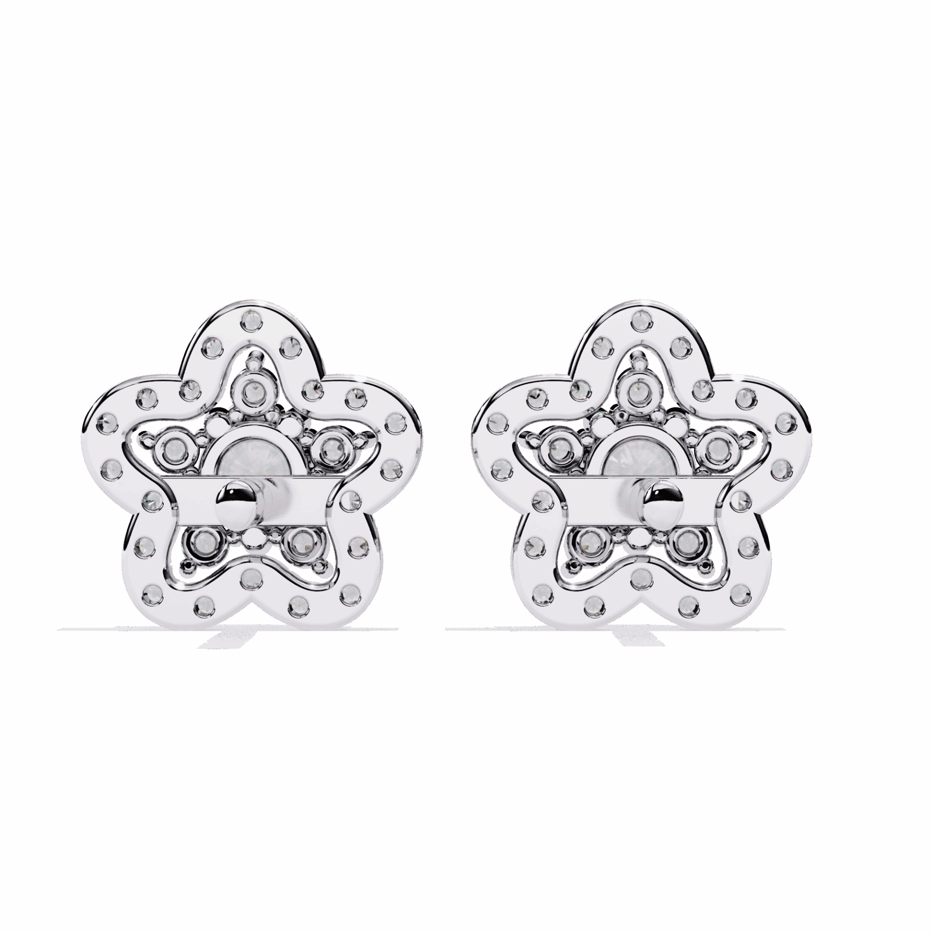 52 round lab-grown diamonds totaling 0.87 carats in radiant trio cluster settings. Three clusters per ear arranged for maximum light reflection and visual impact.