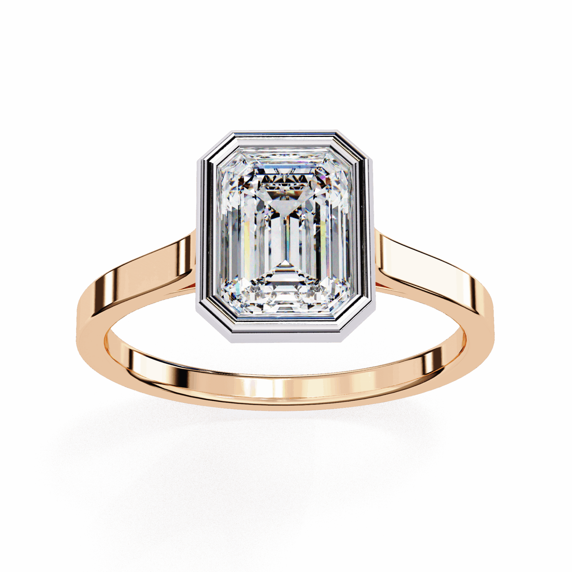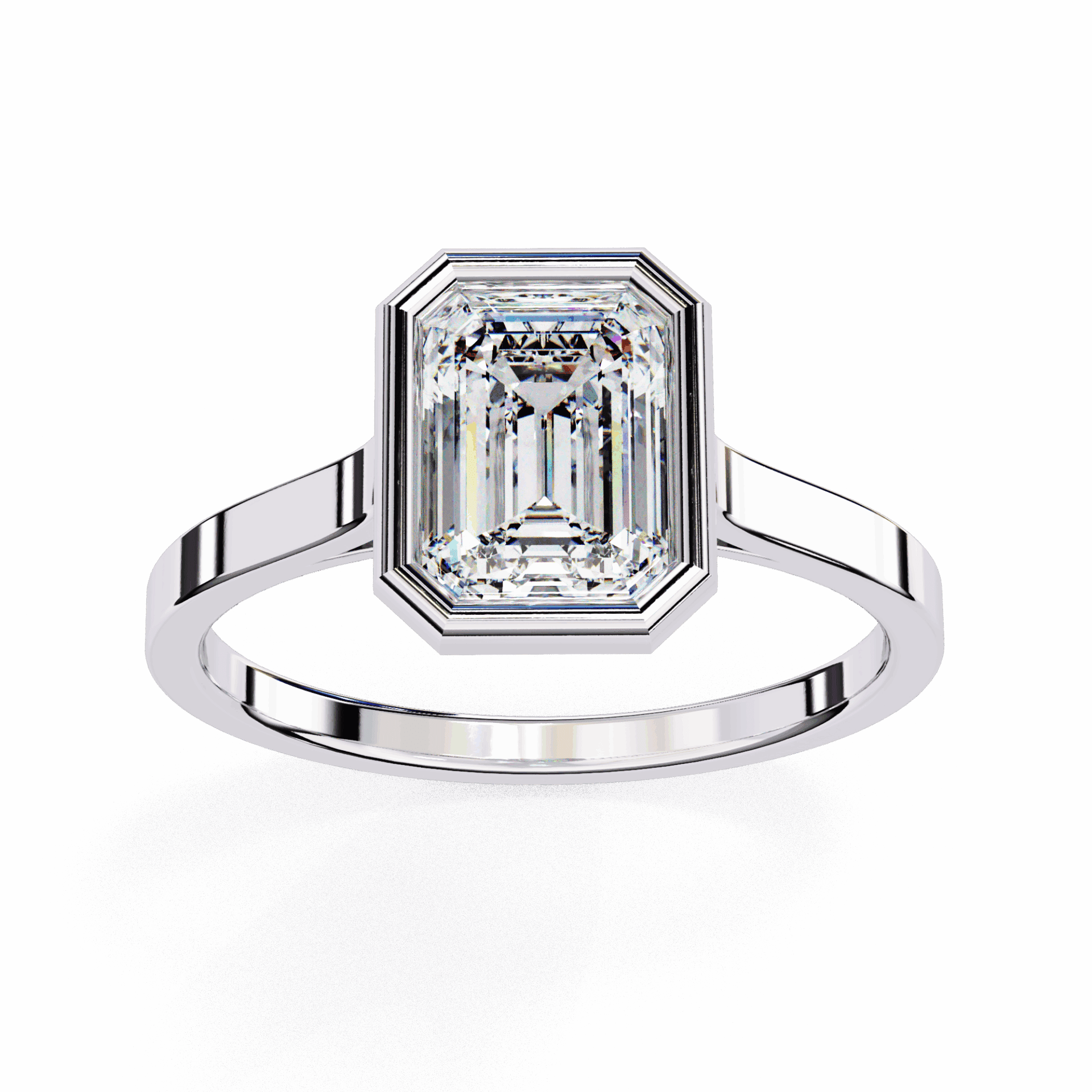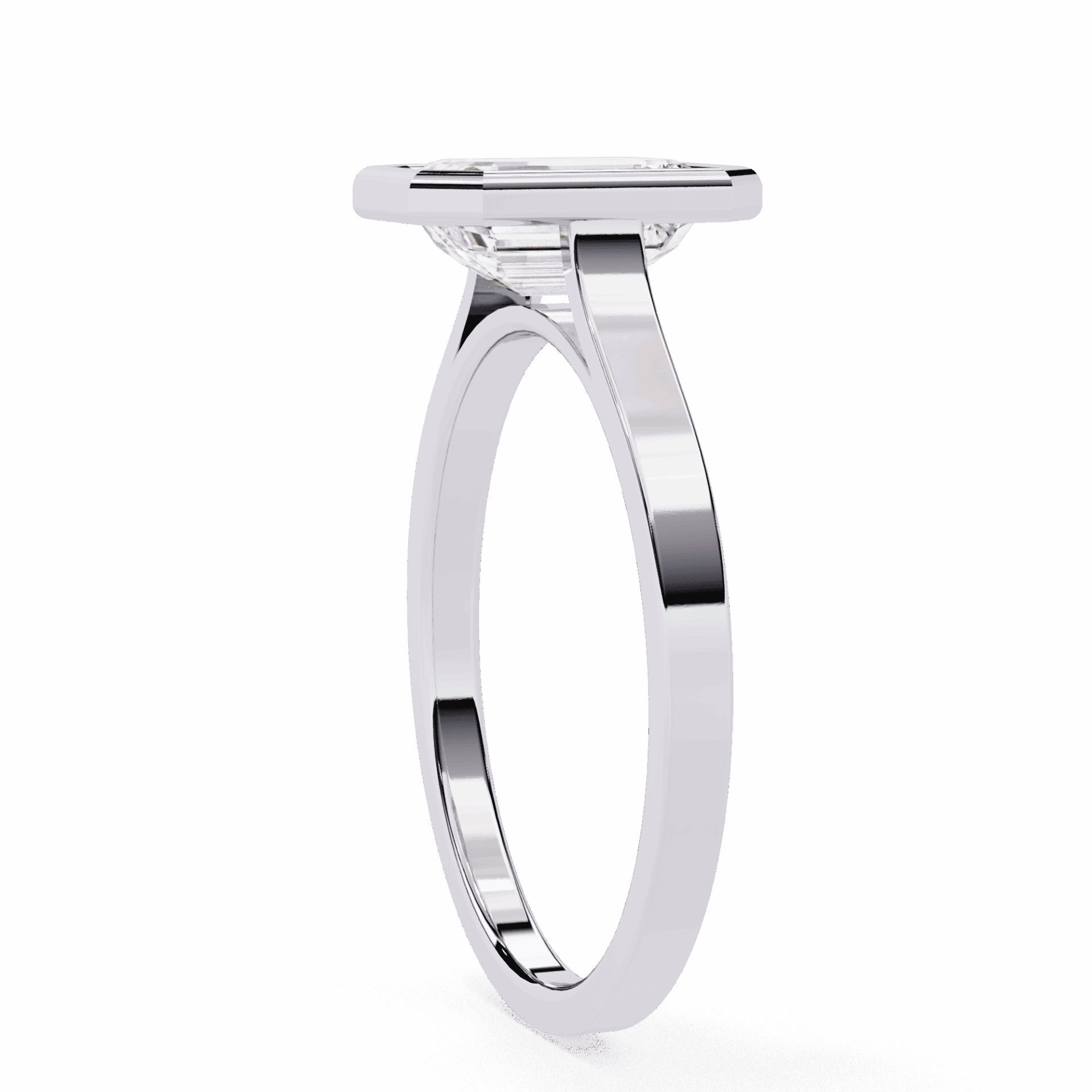 One emerald-cut diamond in a minimalist setting. Step-cut simplicity.