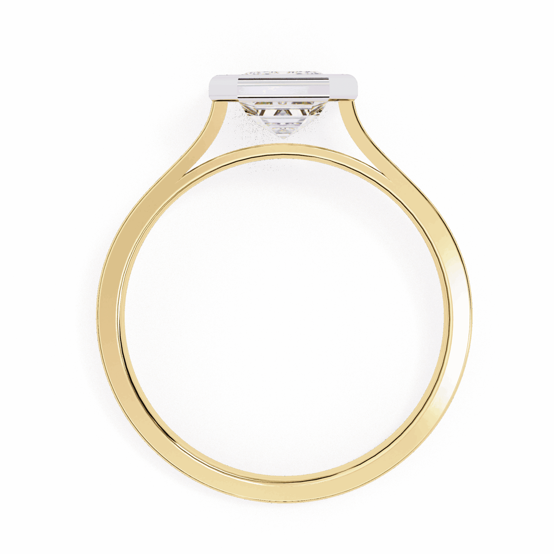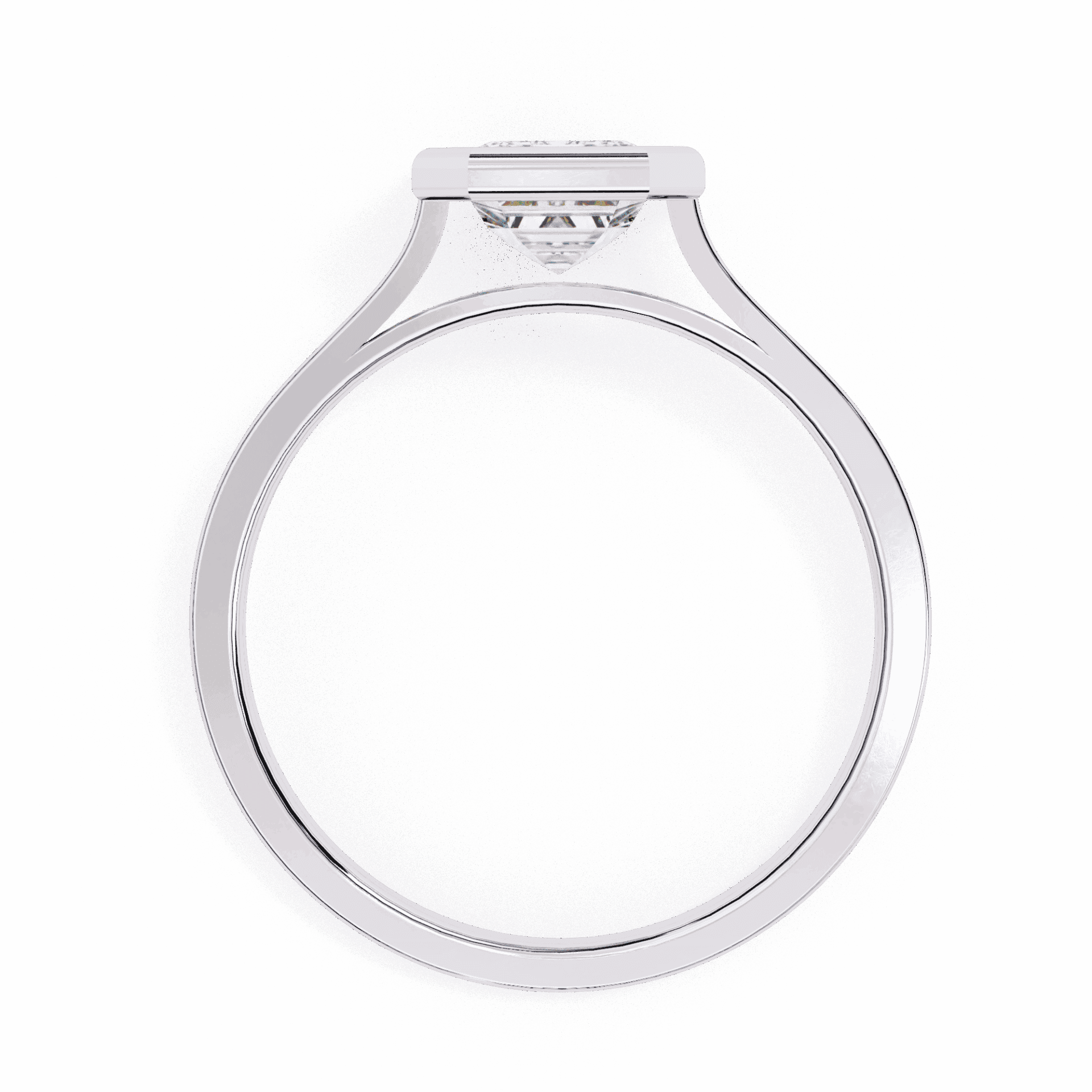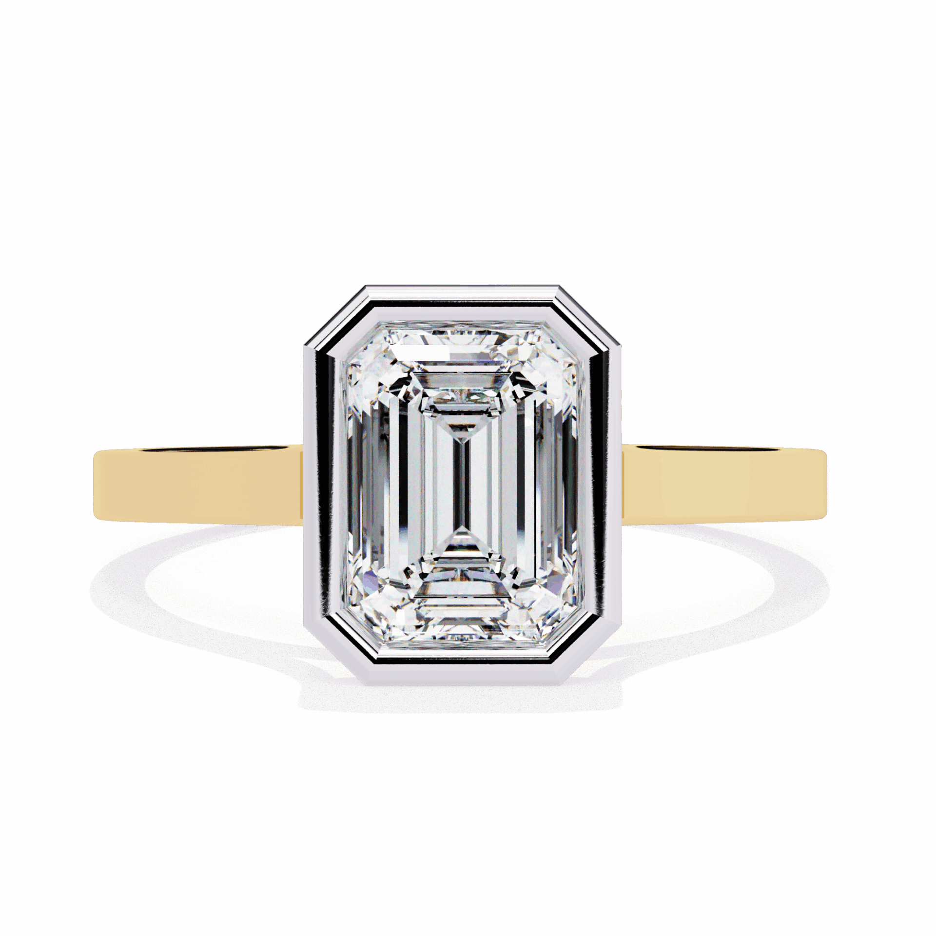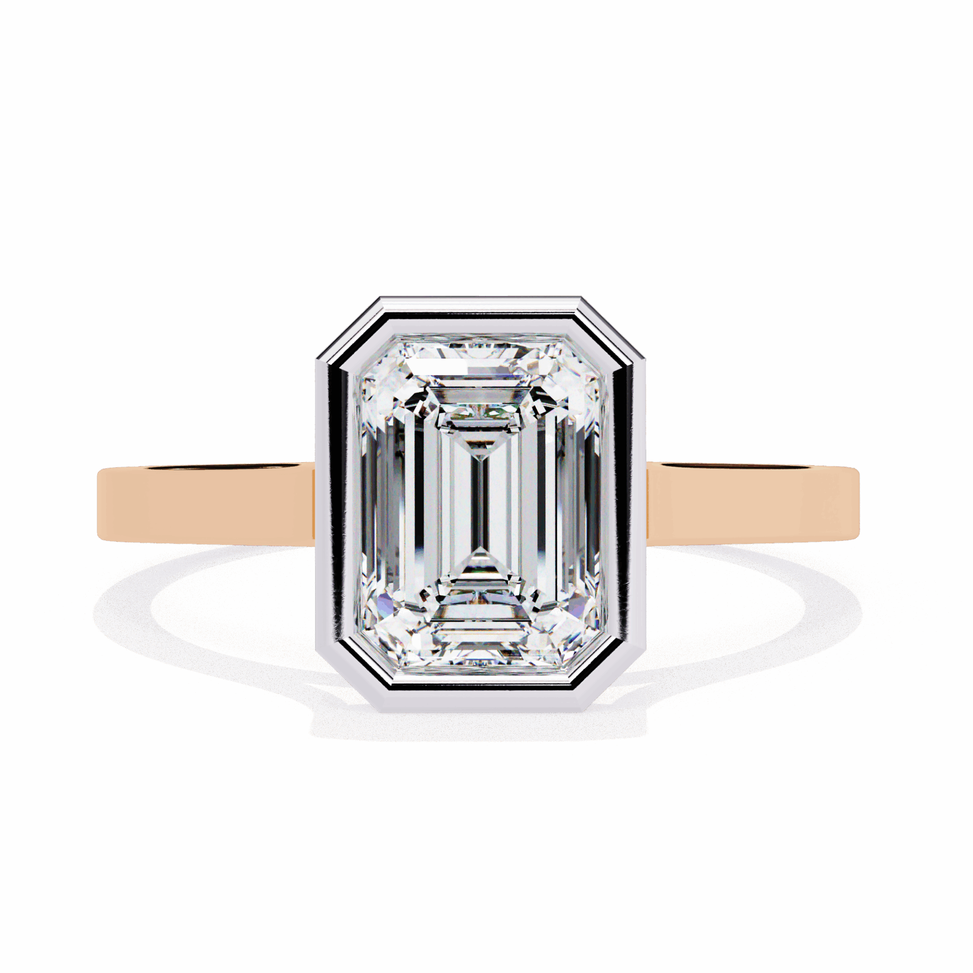 One emerald-cut diamond in a minimalist setting. Step-cut simplicity.