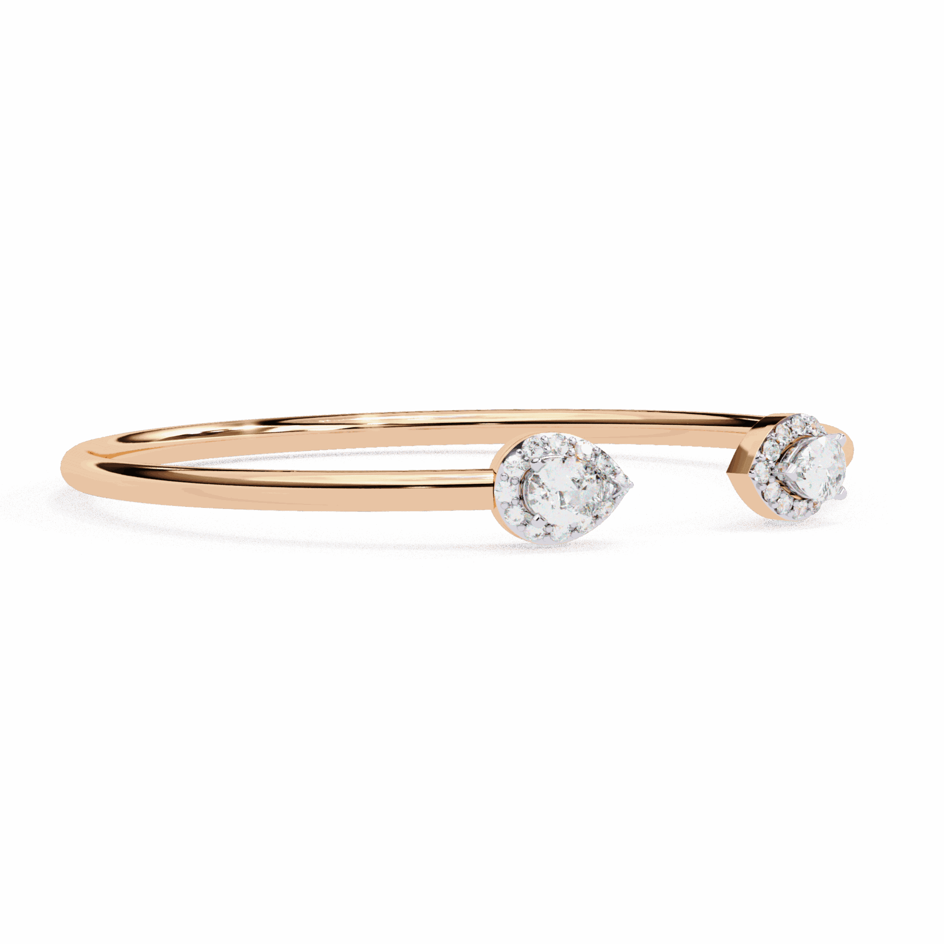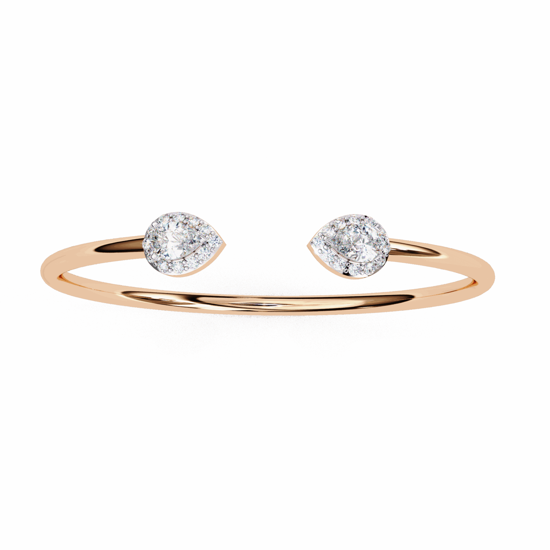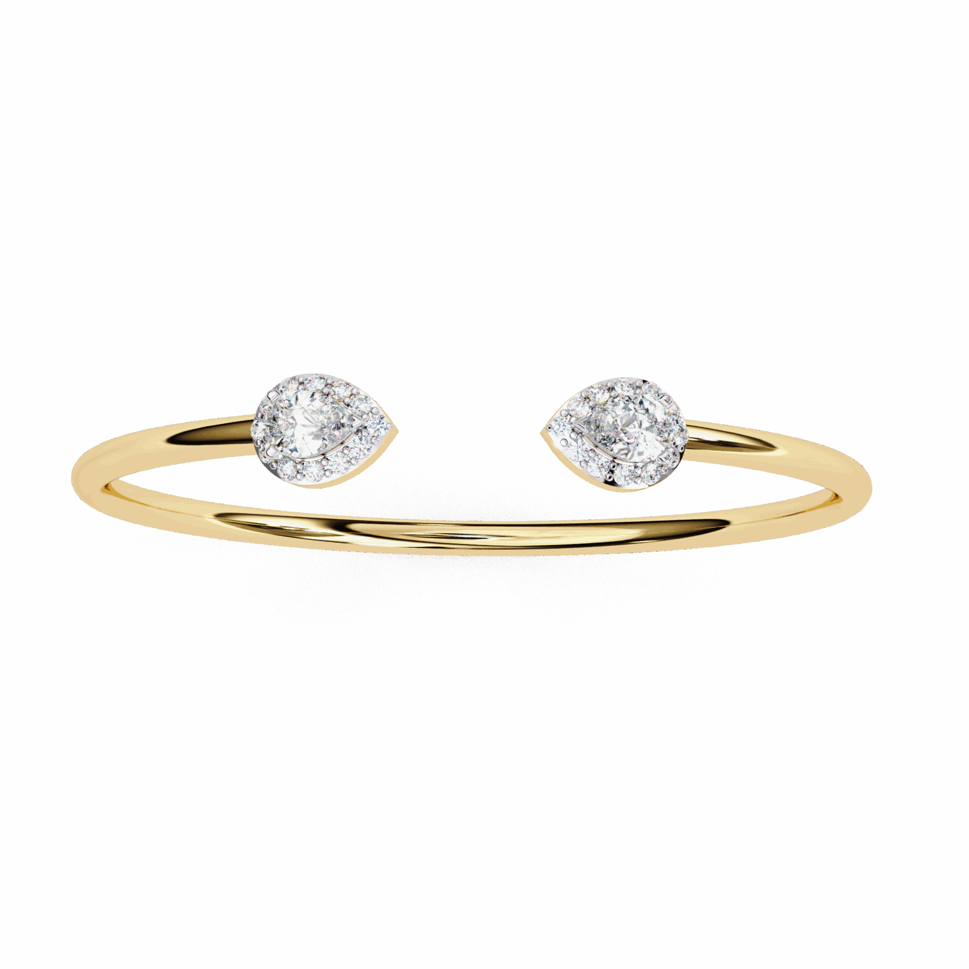 Two pear-cut lab-grown diamonds sit at the open ends of a solid gold cuff - facing each other, almost touching, but not quite. The tension in the design is intentional. It's what makes people look twice.