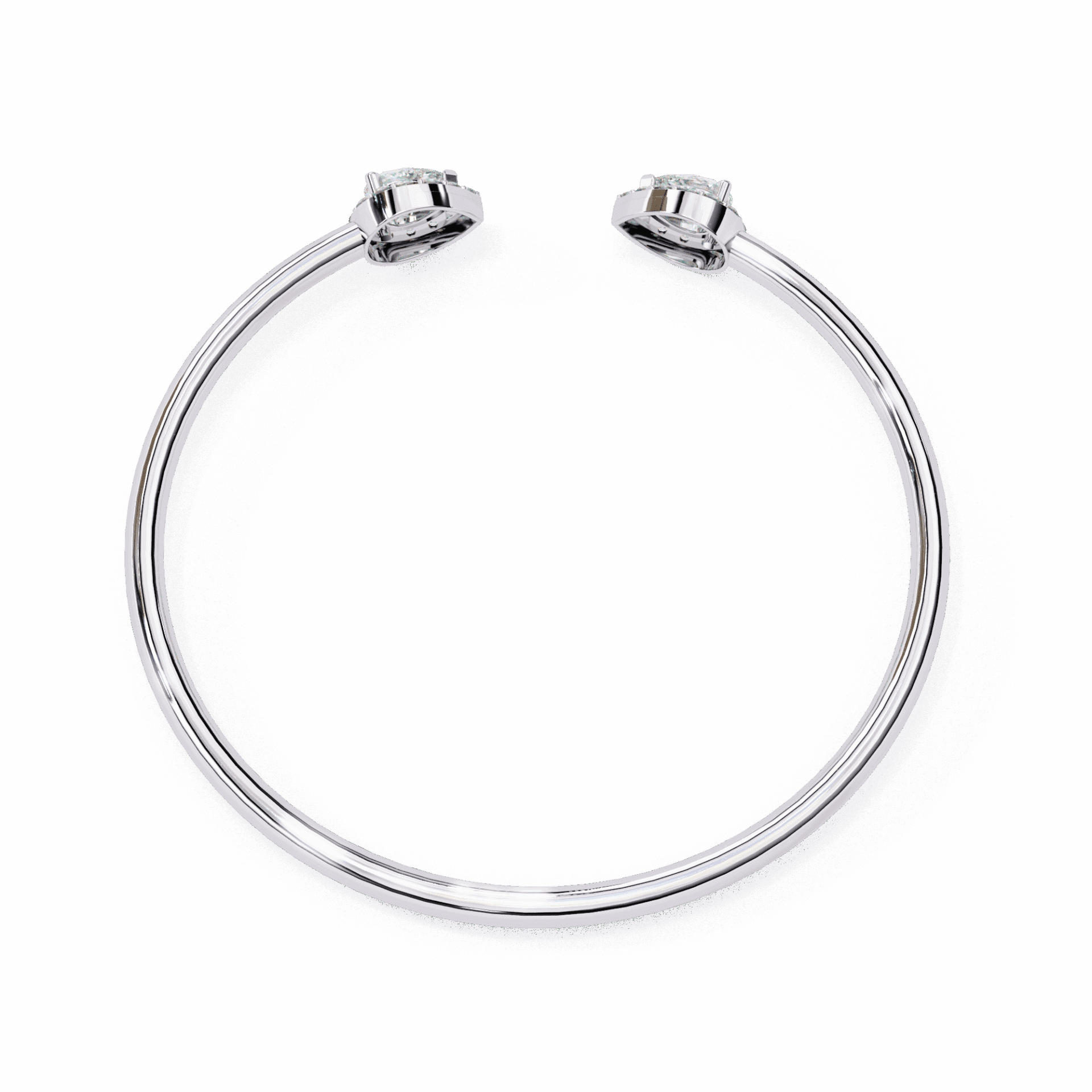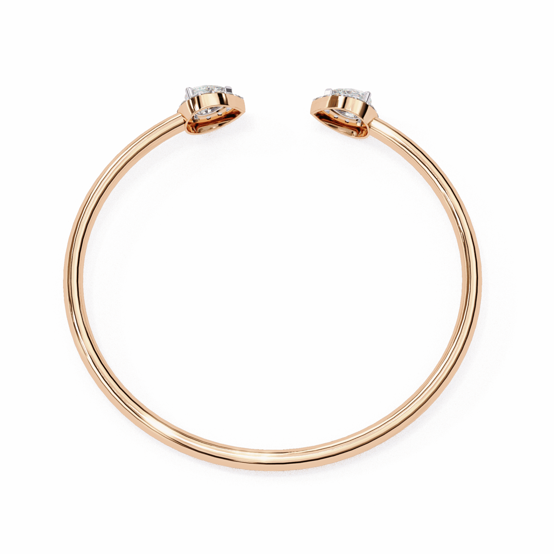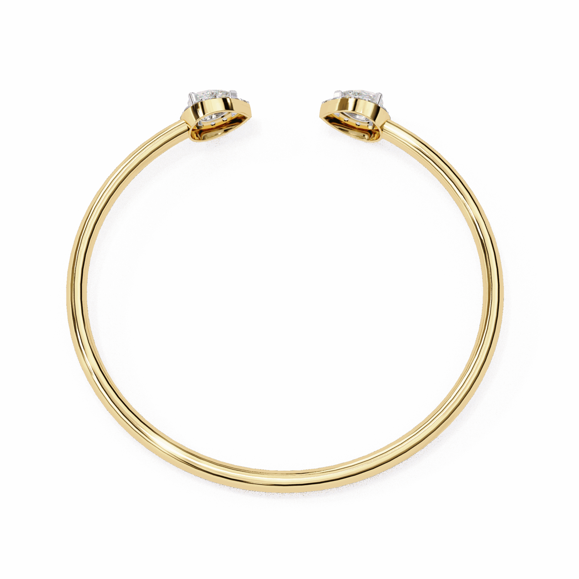 Two pear-cut lab-grown diamonds sit at the open ends of a solid gold cuff - facing each other, almost touching, but not quite. The tension in the design is intentional. It's what makes people look twice.