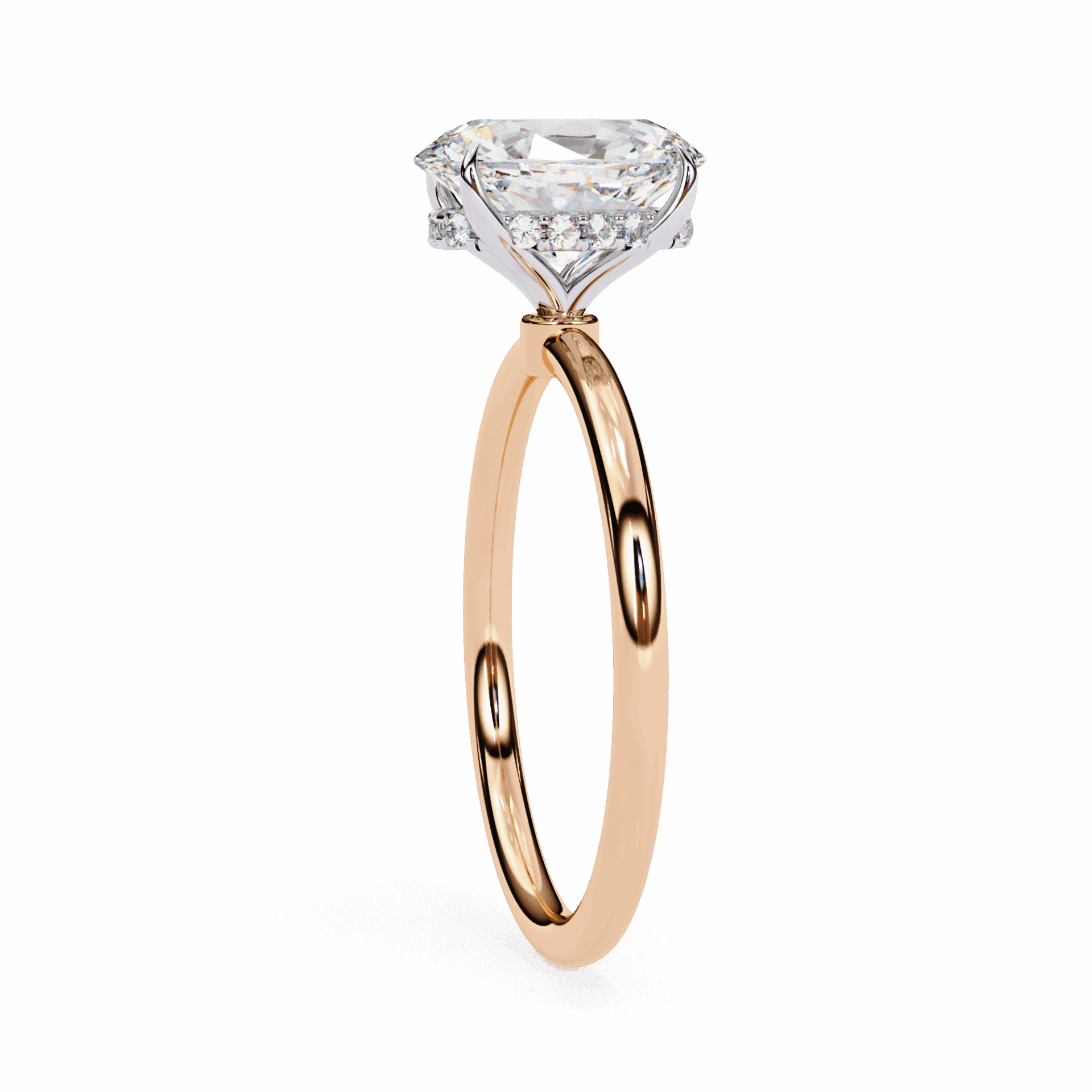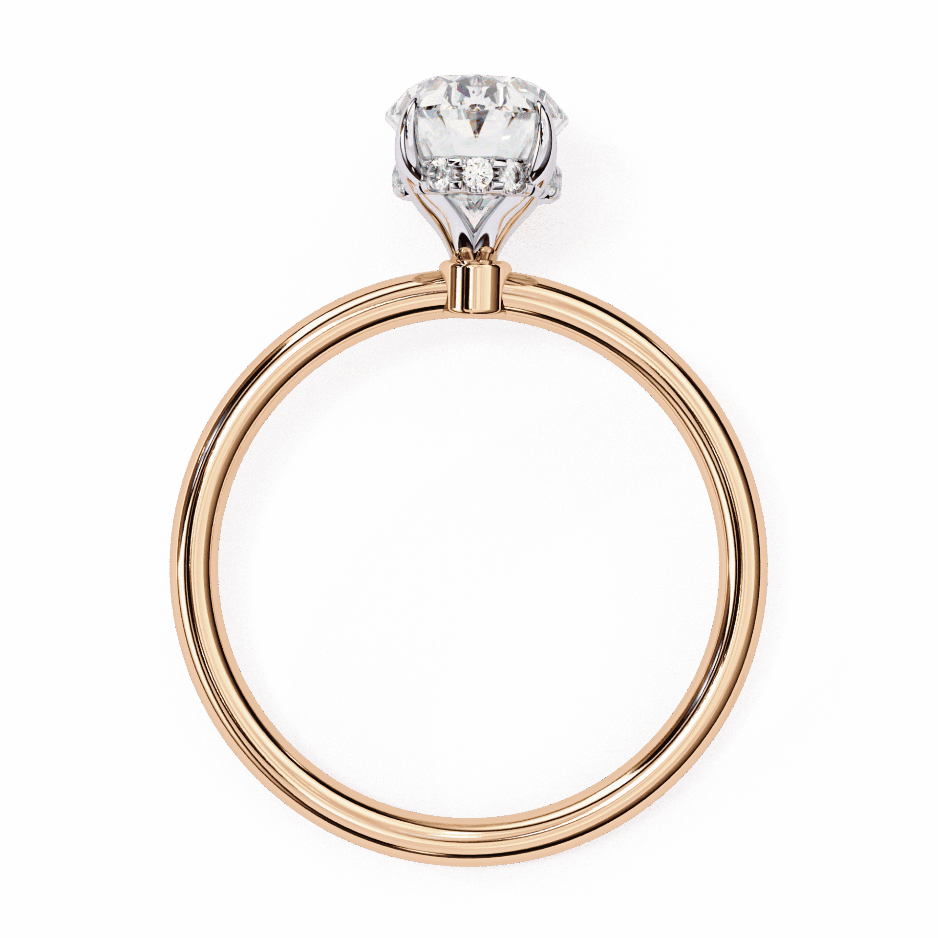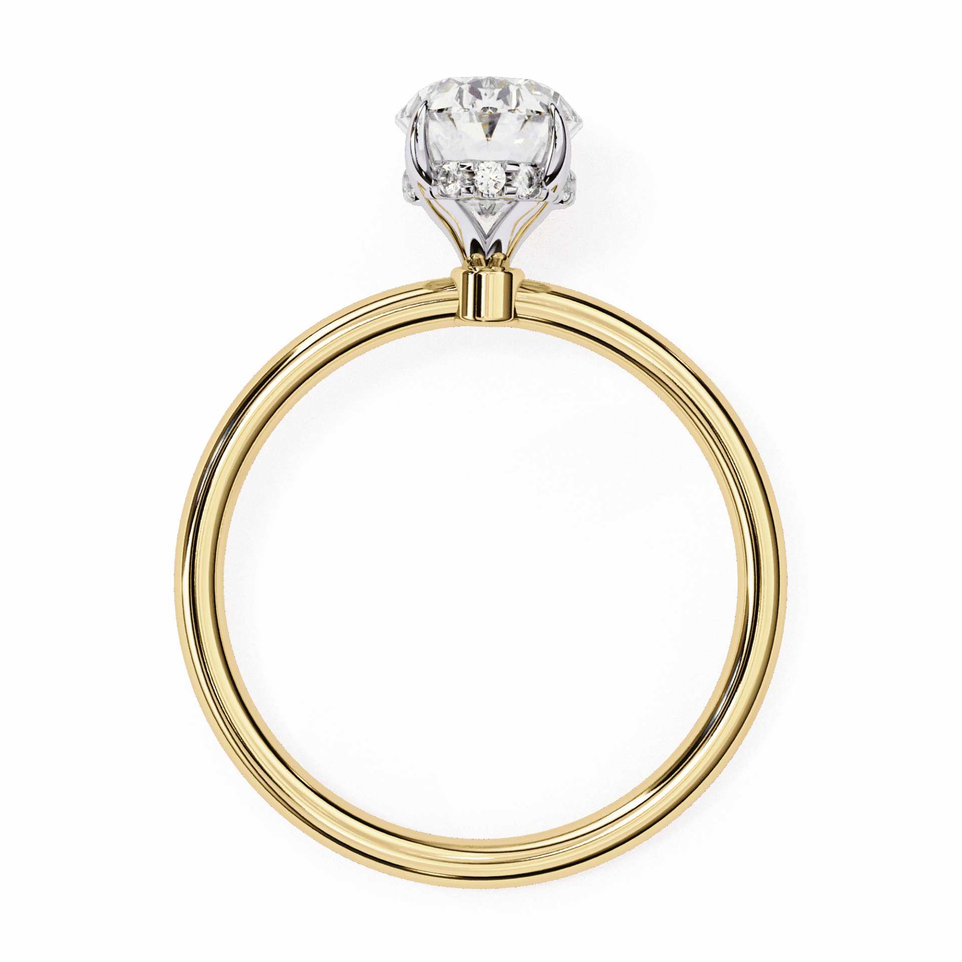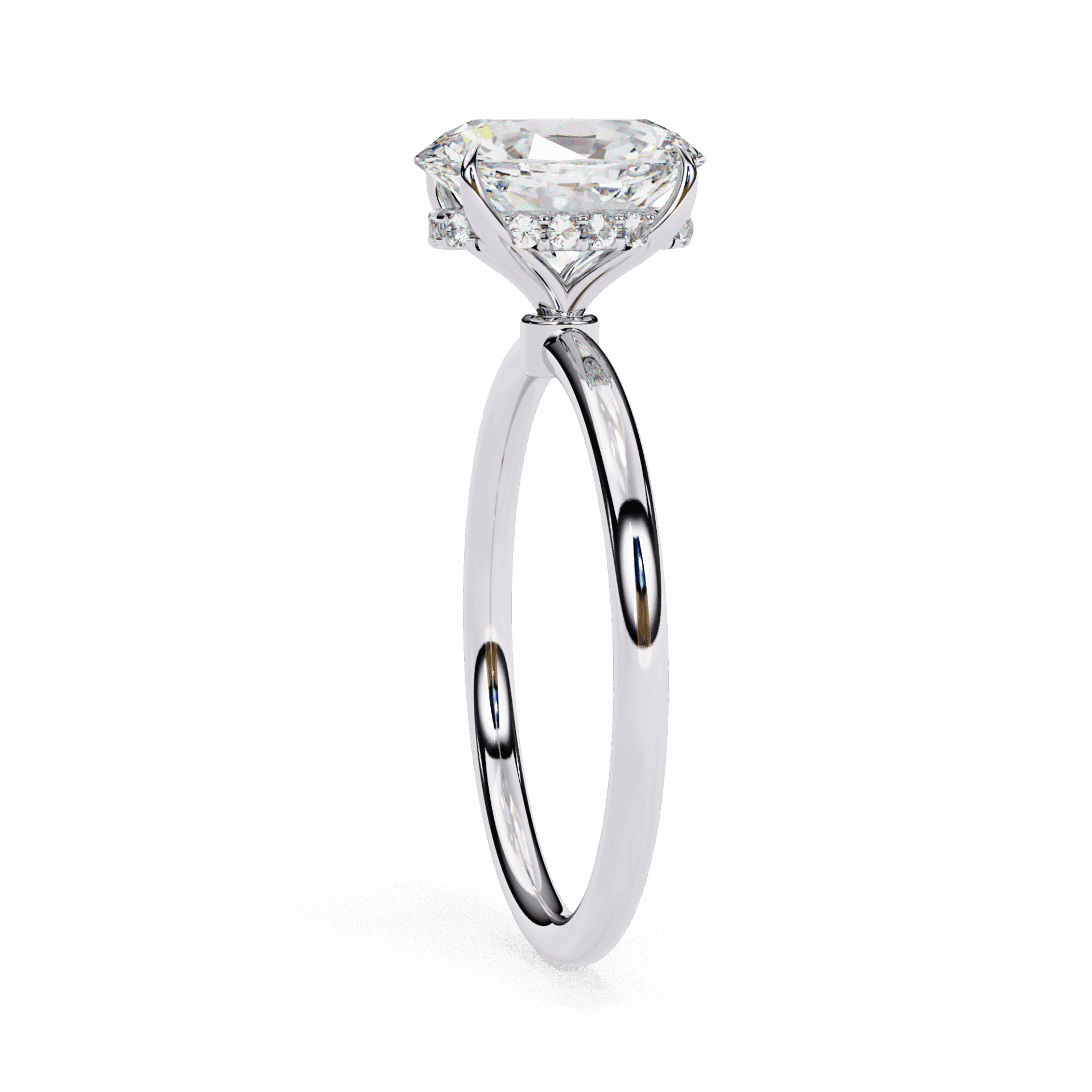 An oval-cut lab-grown diamond with 15 accent diamonds totaling 1.25 carats. Flattering elongation in the Eternal Solitaire setting.