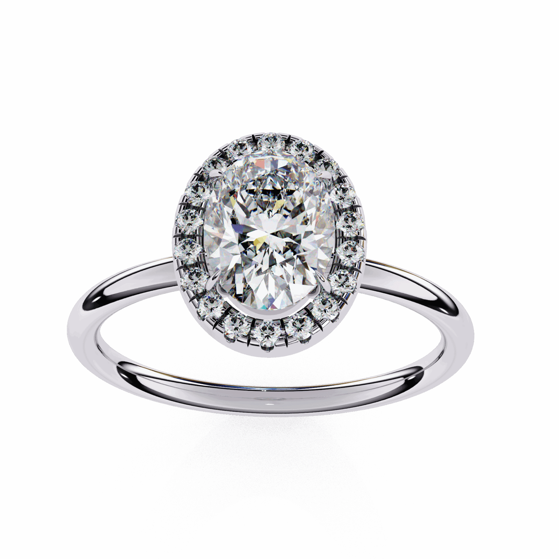 An oval-cut lab-grown diamond with 19 accent diamonds totaling 1.24 carats. Flattering shape in the Legacy setting.
