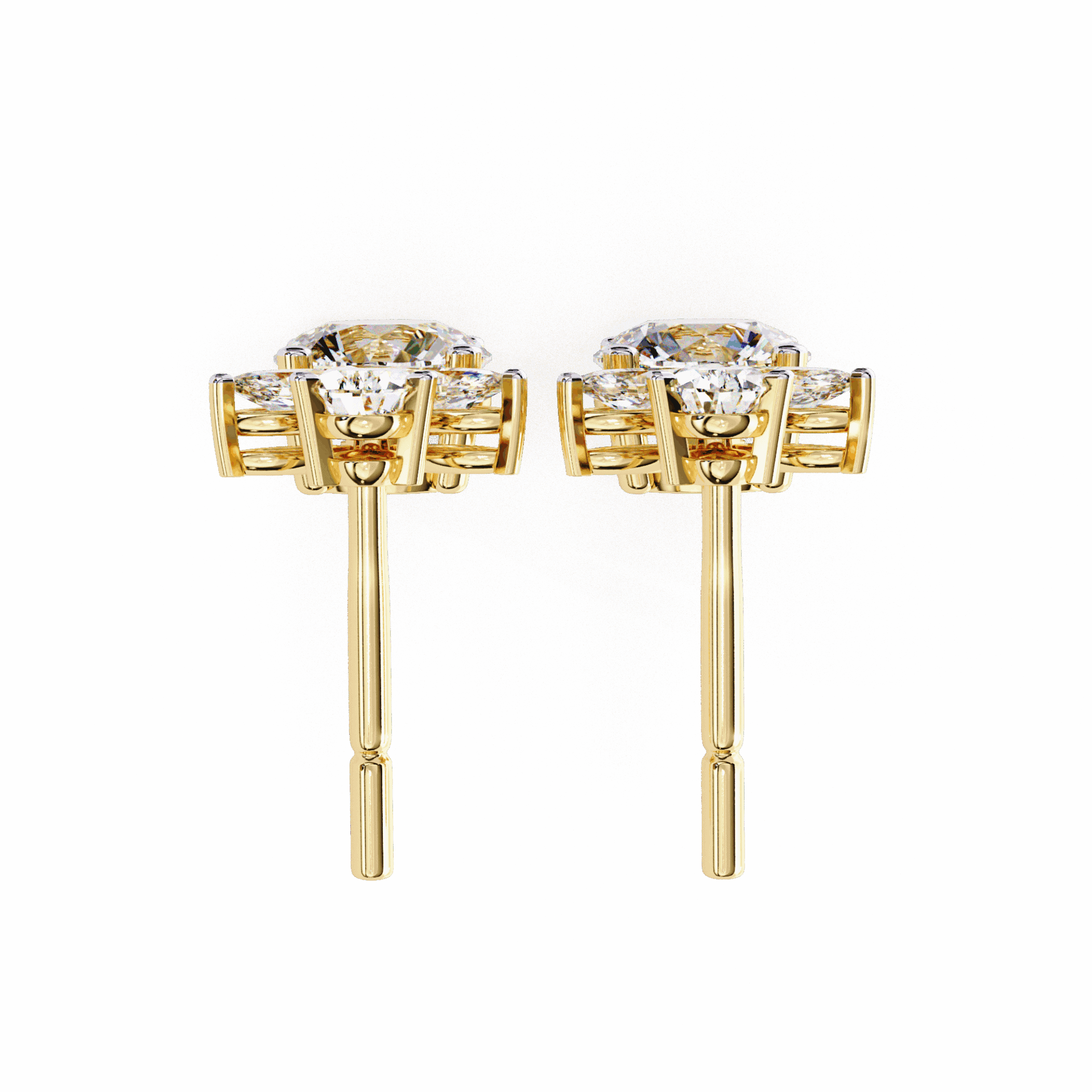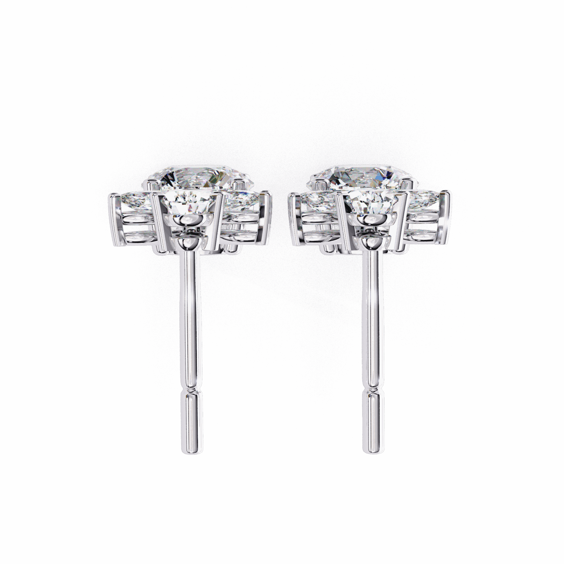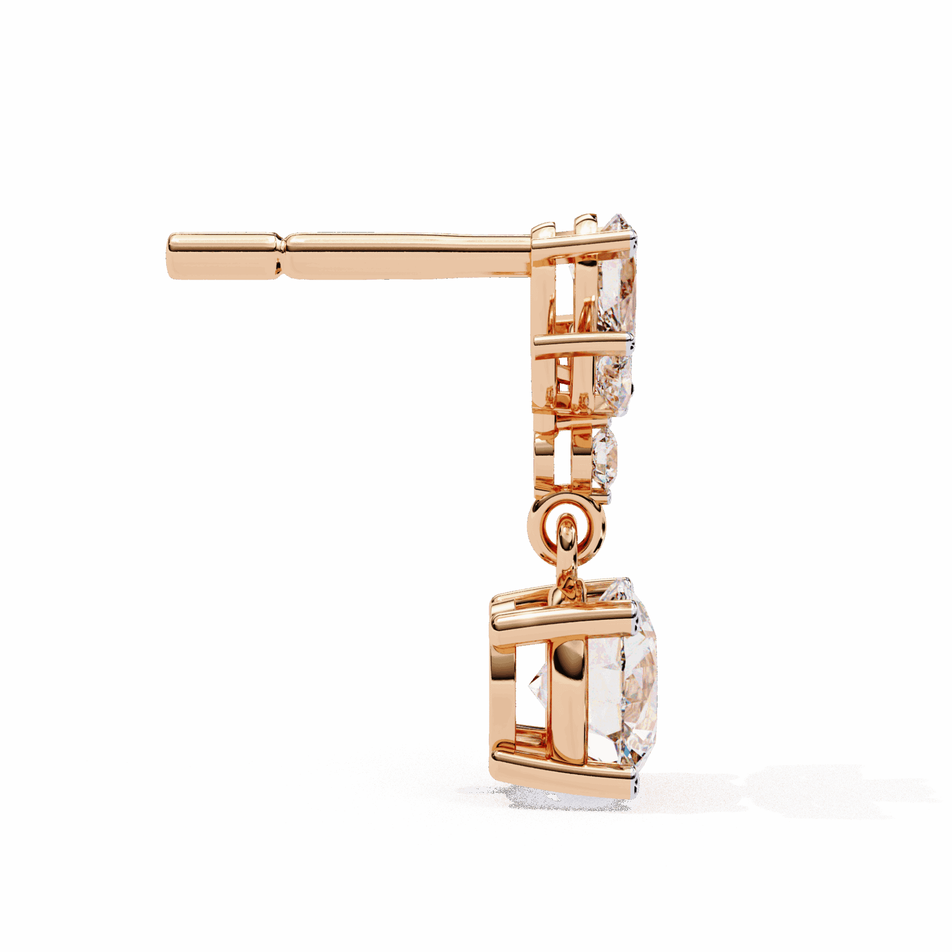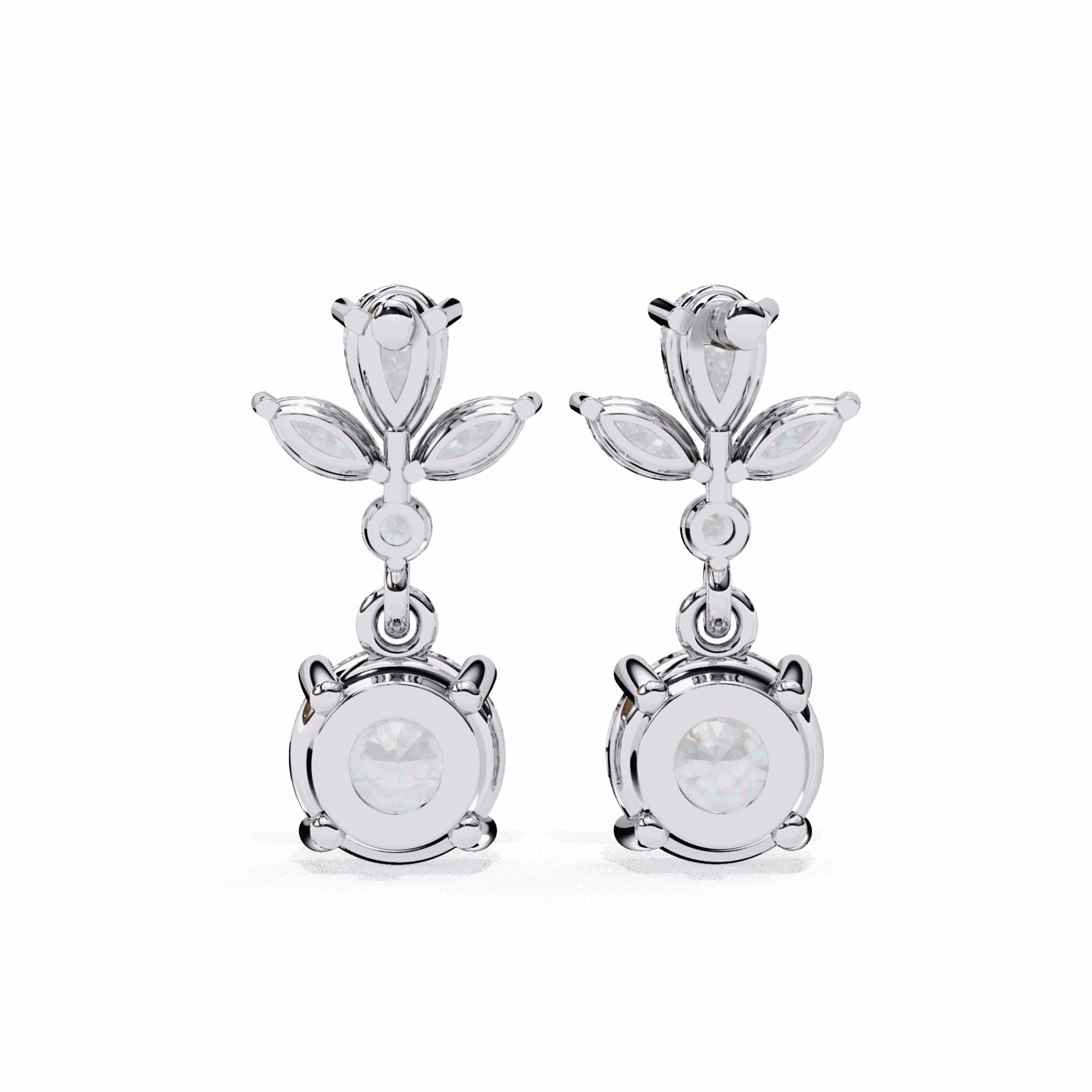 10 lab-grown diamonds – marquise, round, and pear cuts – totaling 1.17 carats in a cascading dangle design. Each cut catches light differently as the earrings move.