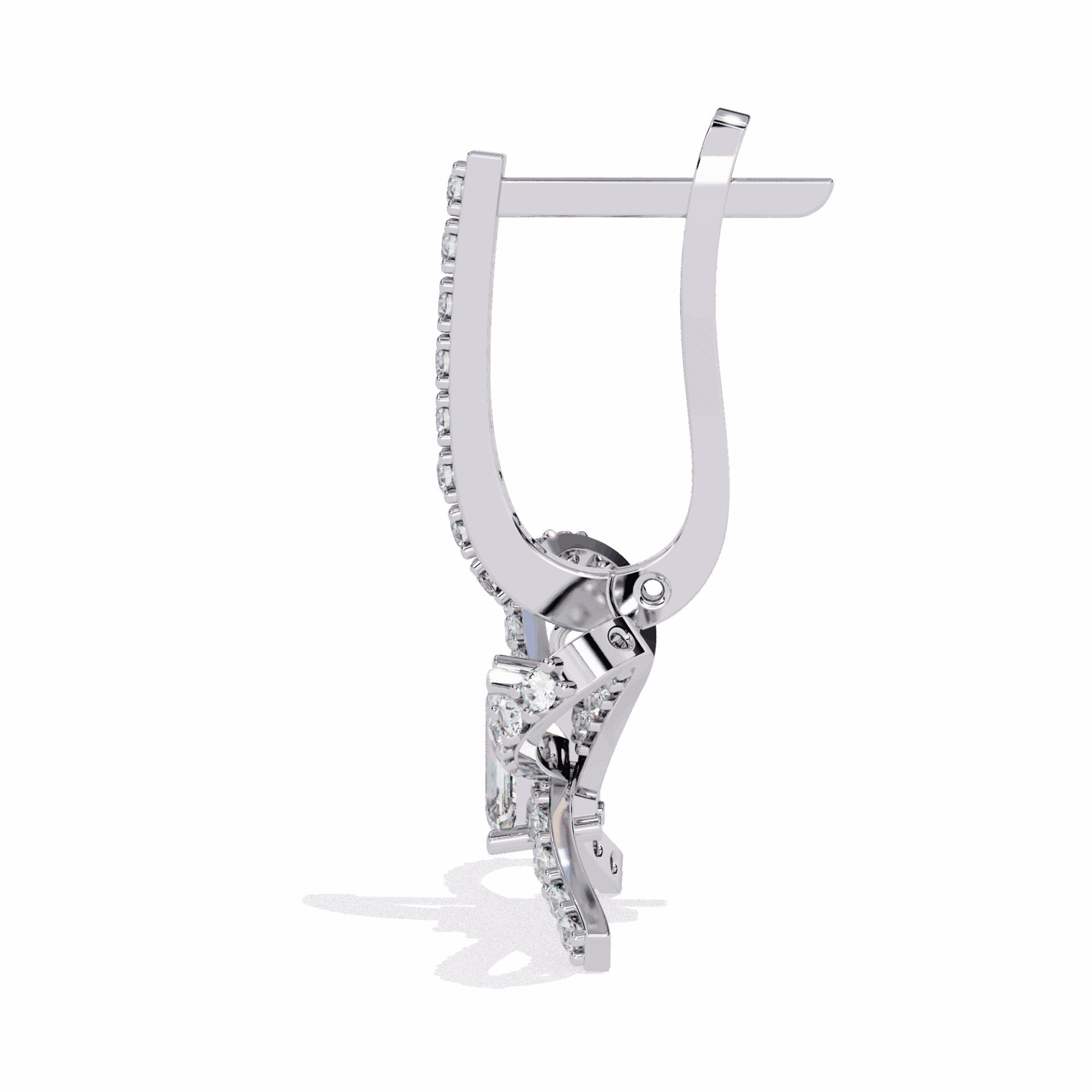 86 diamonds – emerald and round – in flowing ribbon-inspired dangles. Graceful movement.