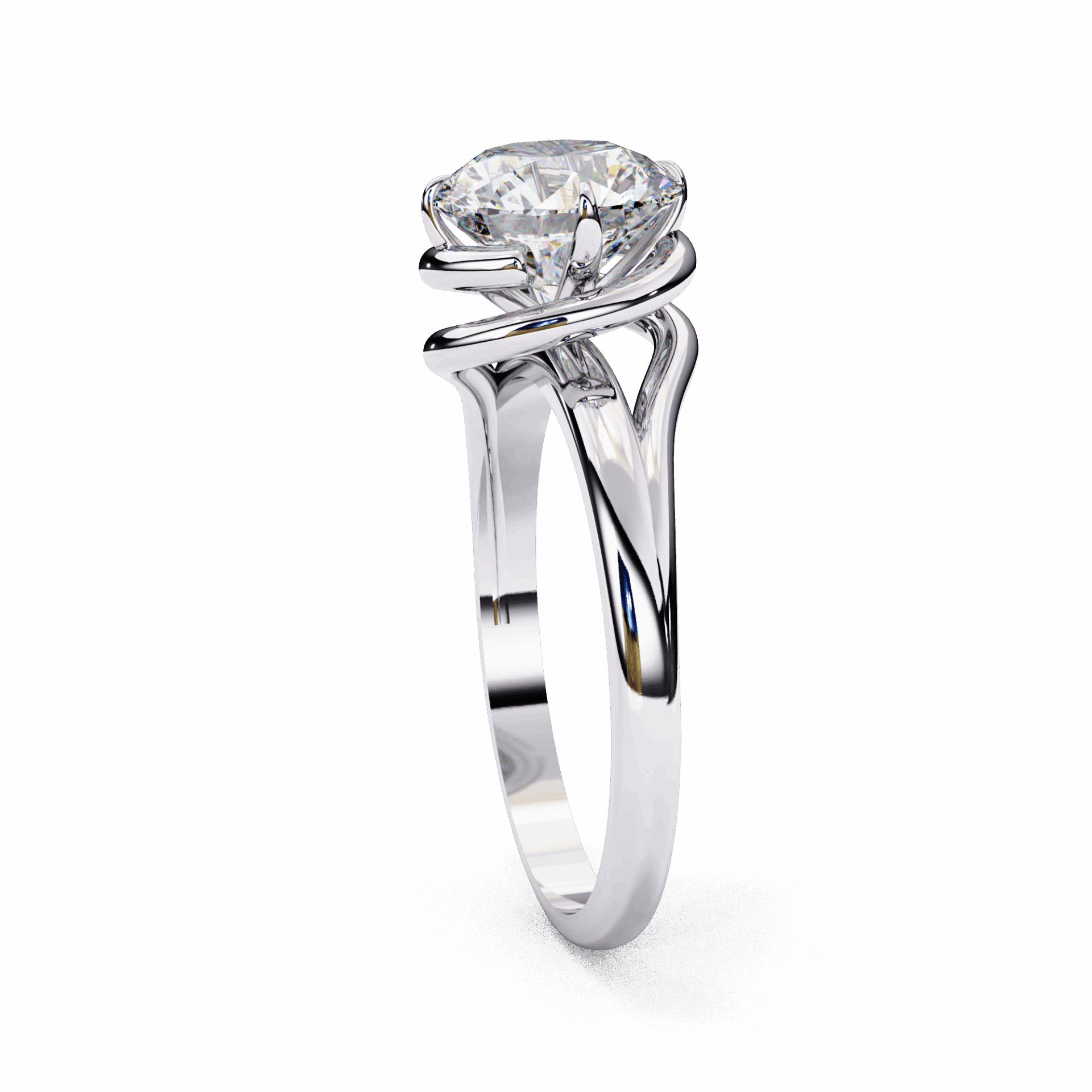 One round diamond in a classic band setting. The essential solitaire.