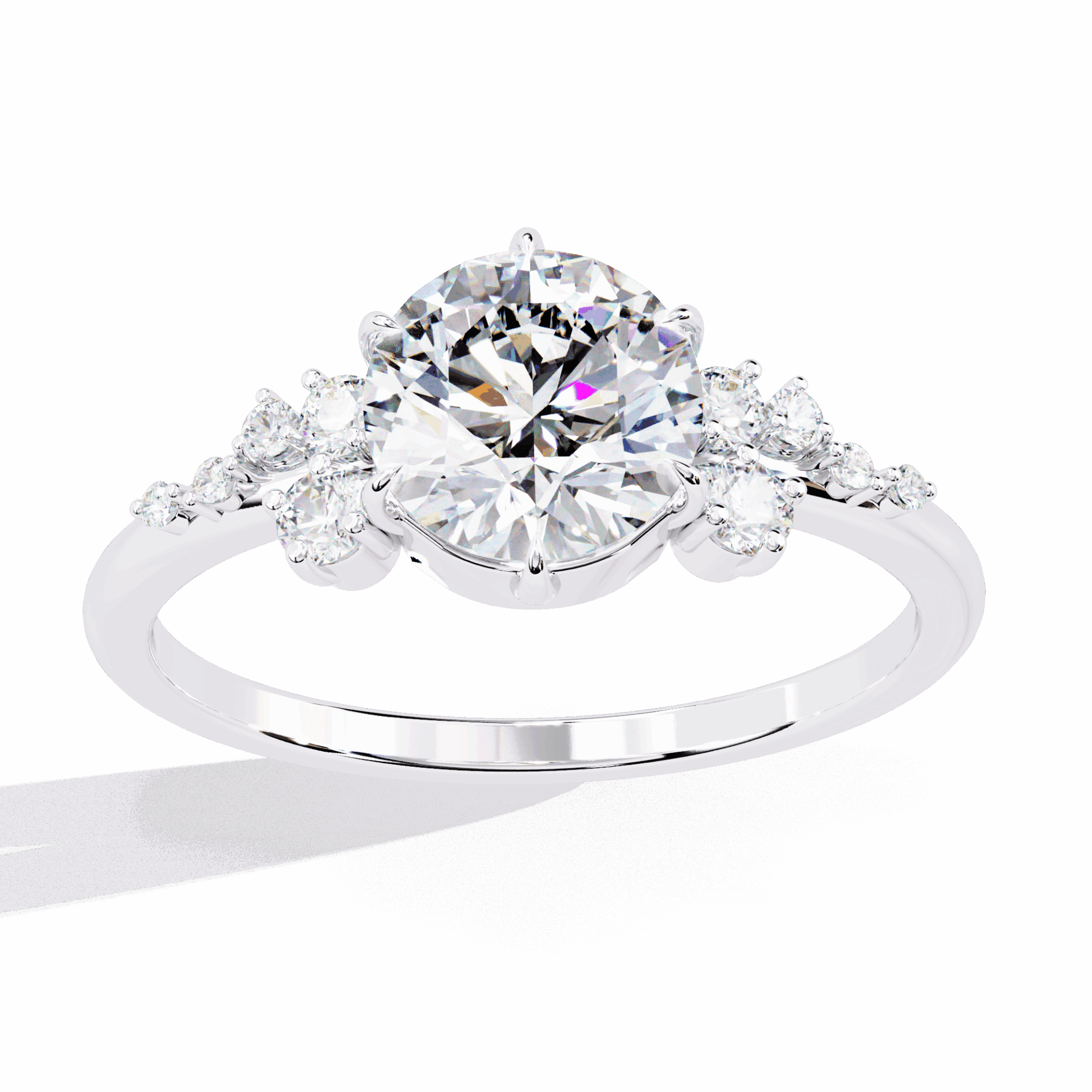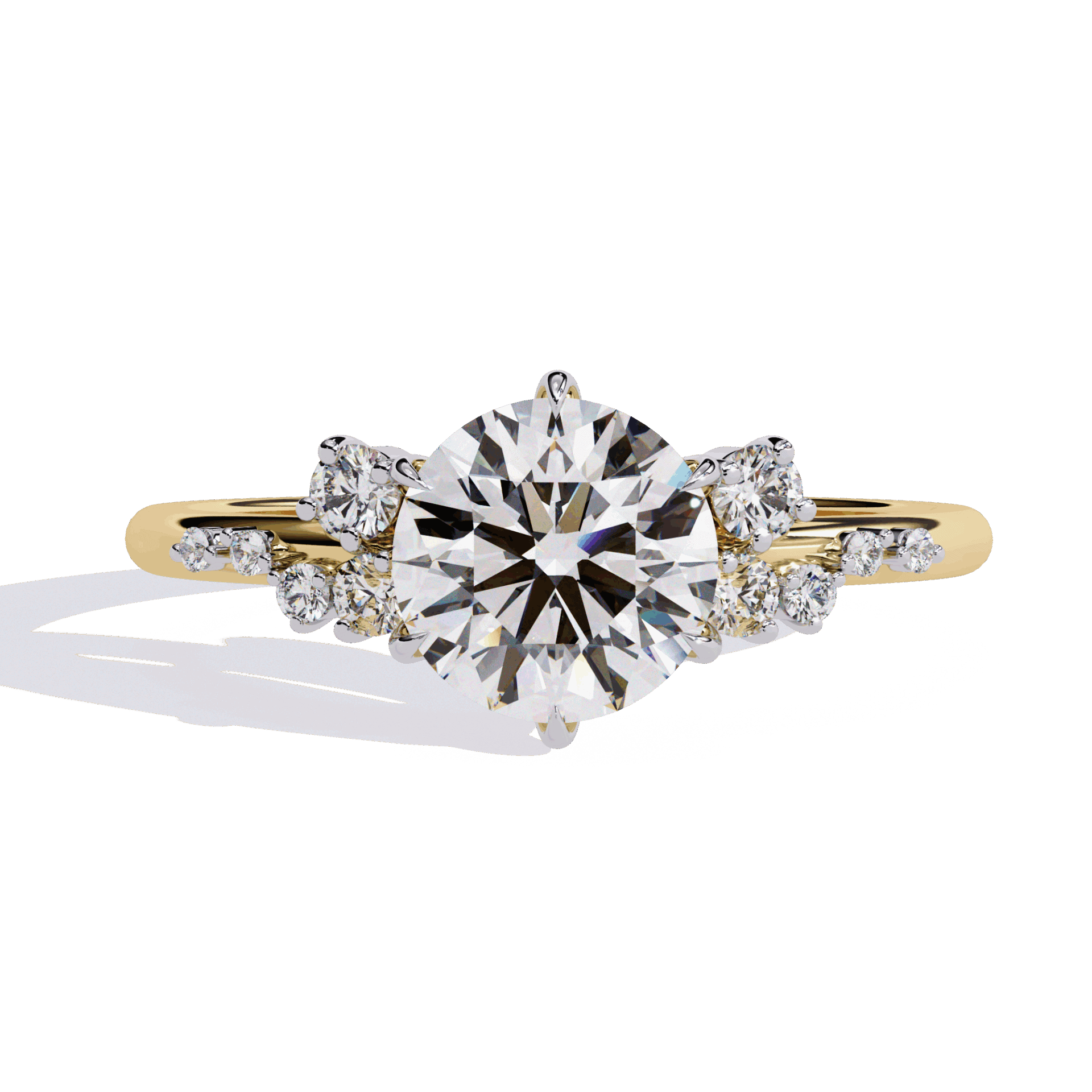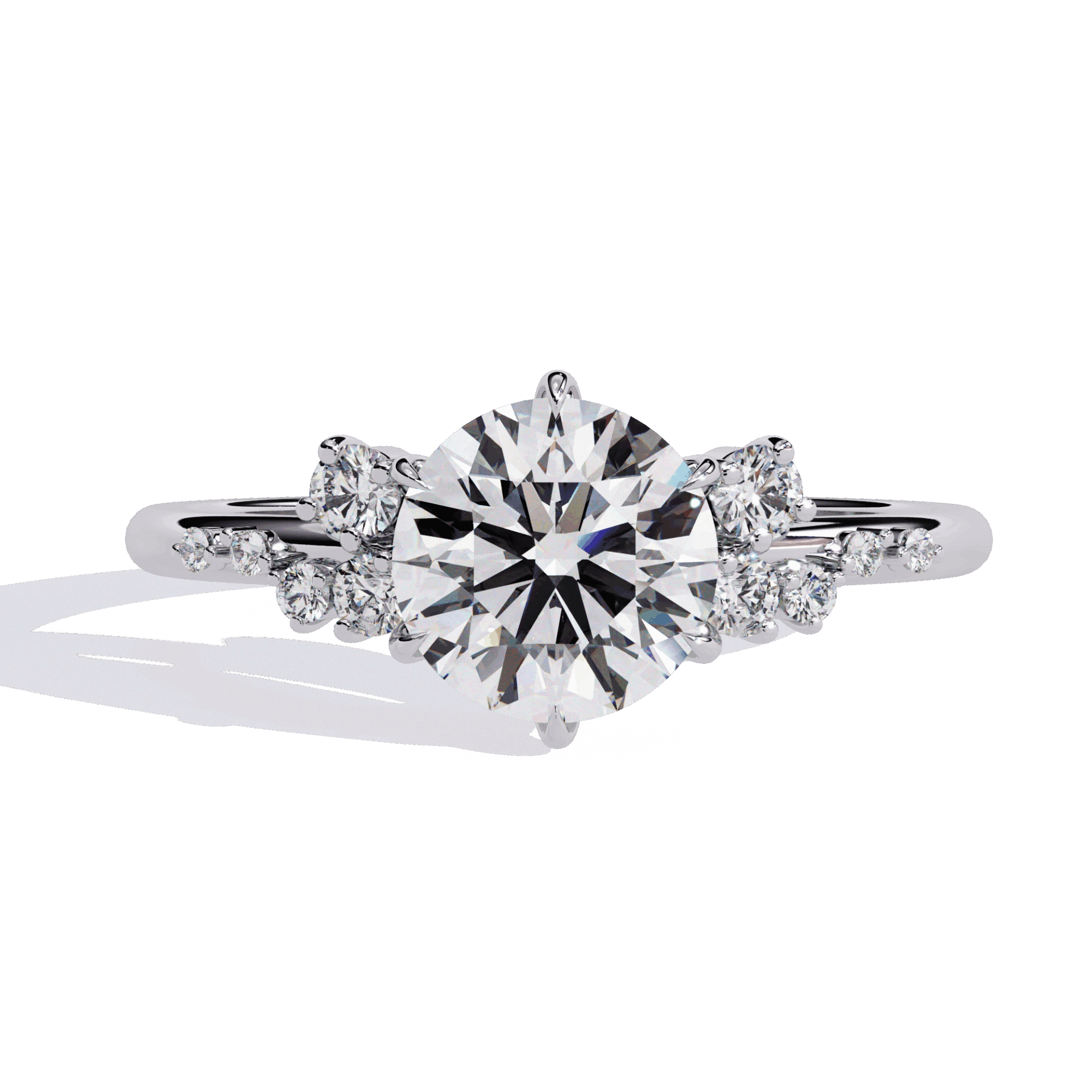 A round lab-grown diamond with 11 accent diamonds totaling 1.37 carats. Maximum brilliance that works from dawn to dusk.