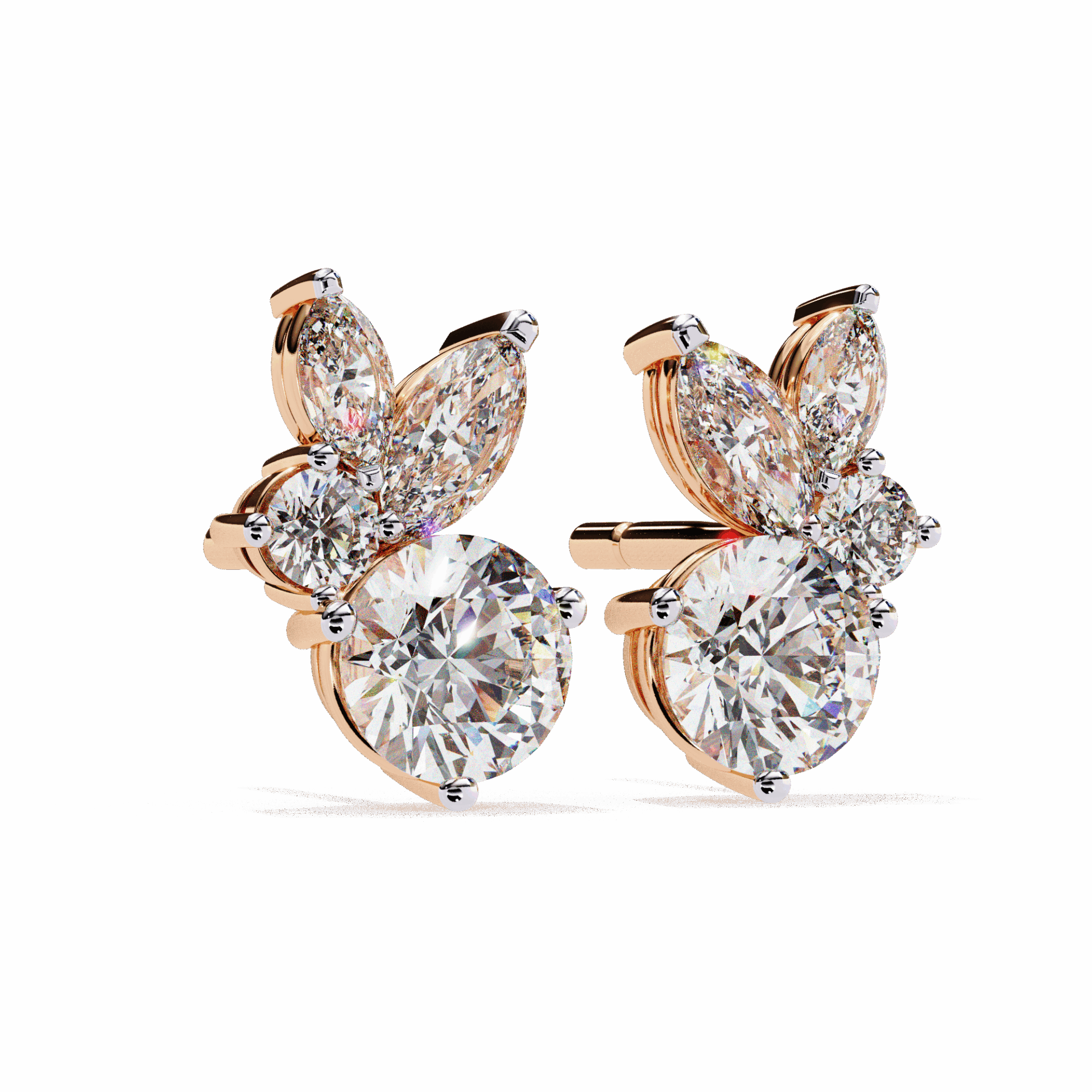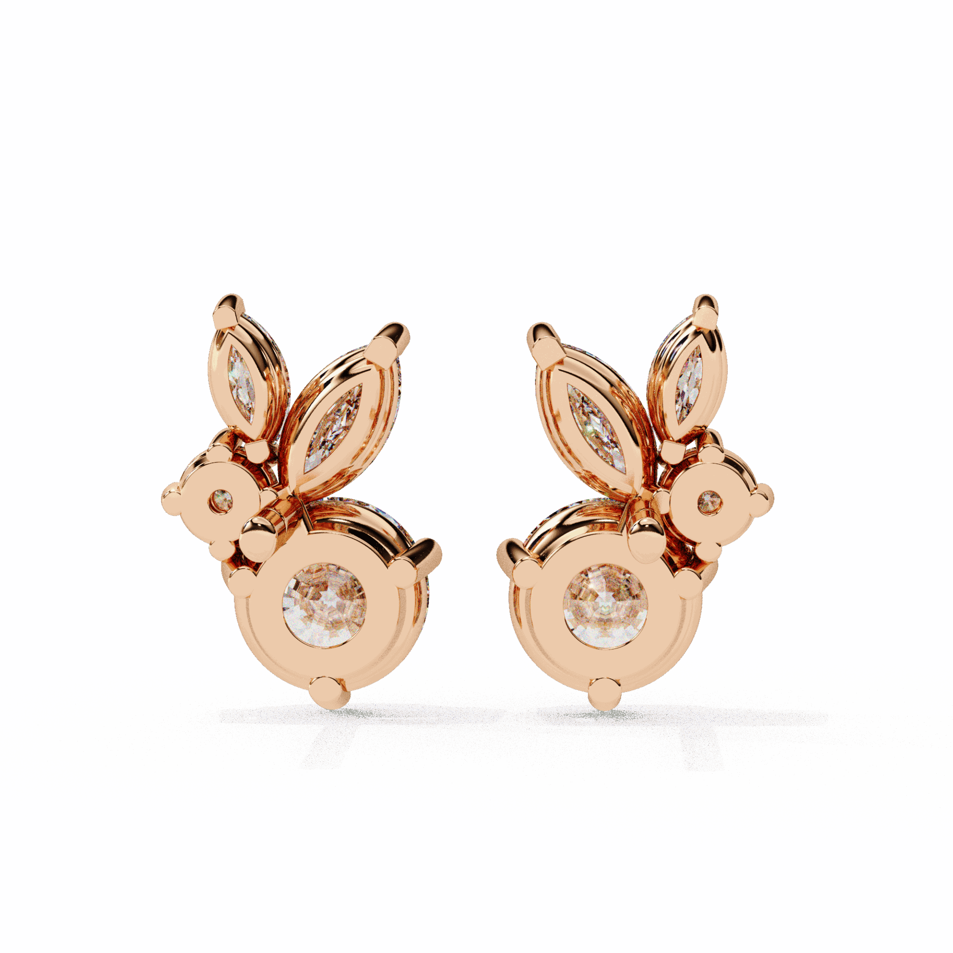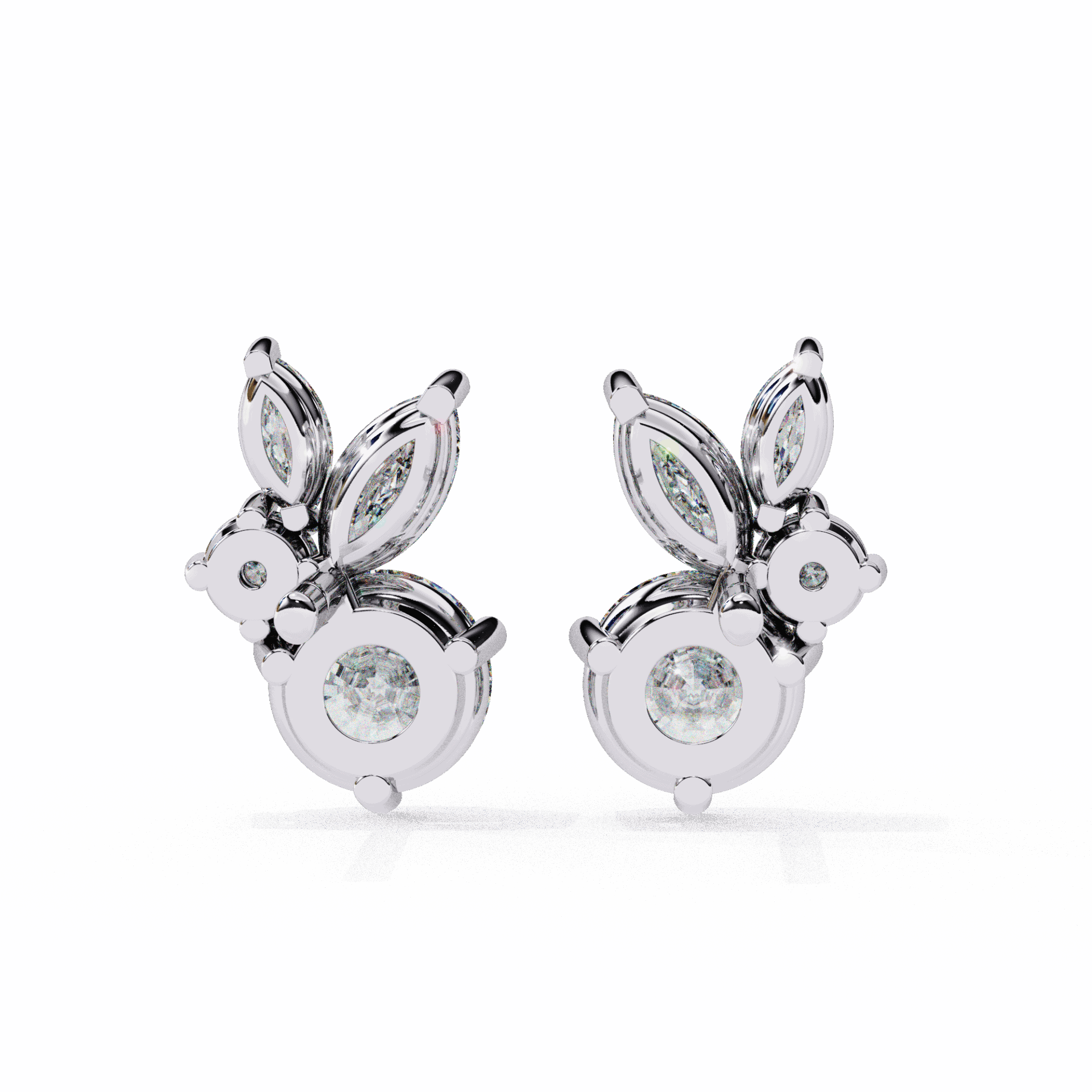 8 lab-grown diamonds – marquise and round cuts alternating – totaling 1.42 carats. The rhythm of different cuts creates visual interest that single-cut earrings can’t match.
