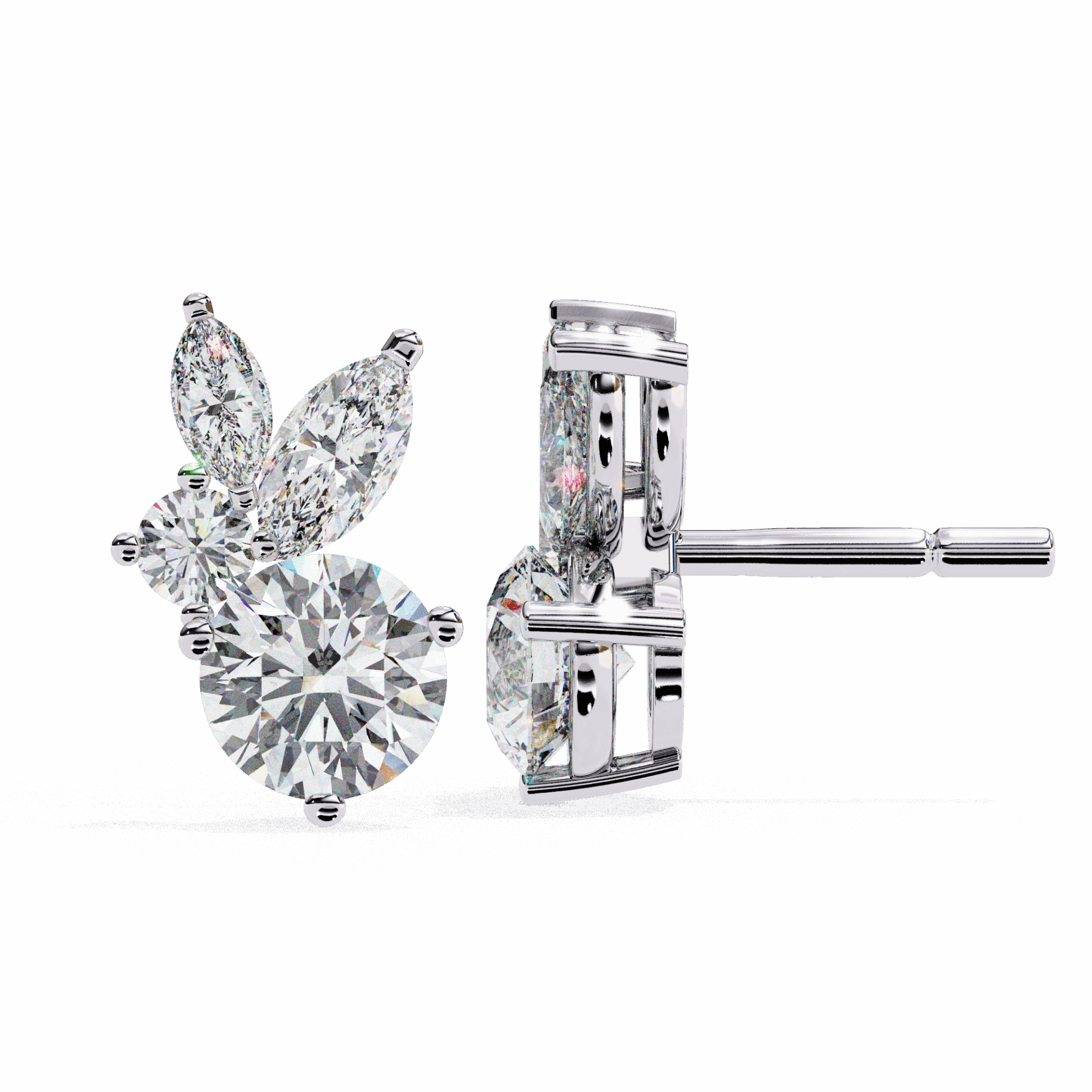 1.5 Carat Alternating Marquise and Round Diamond Stud Earrings