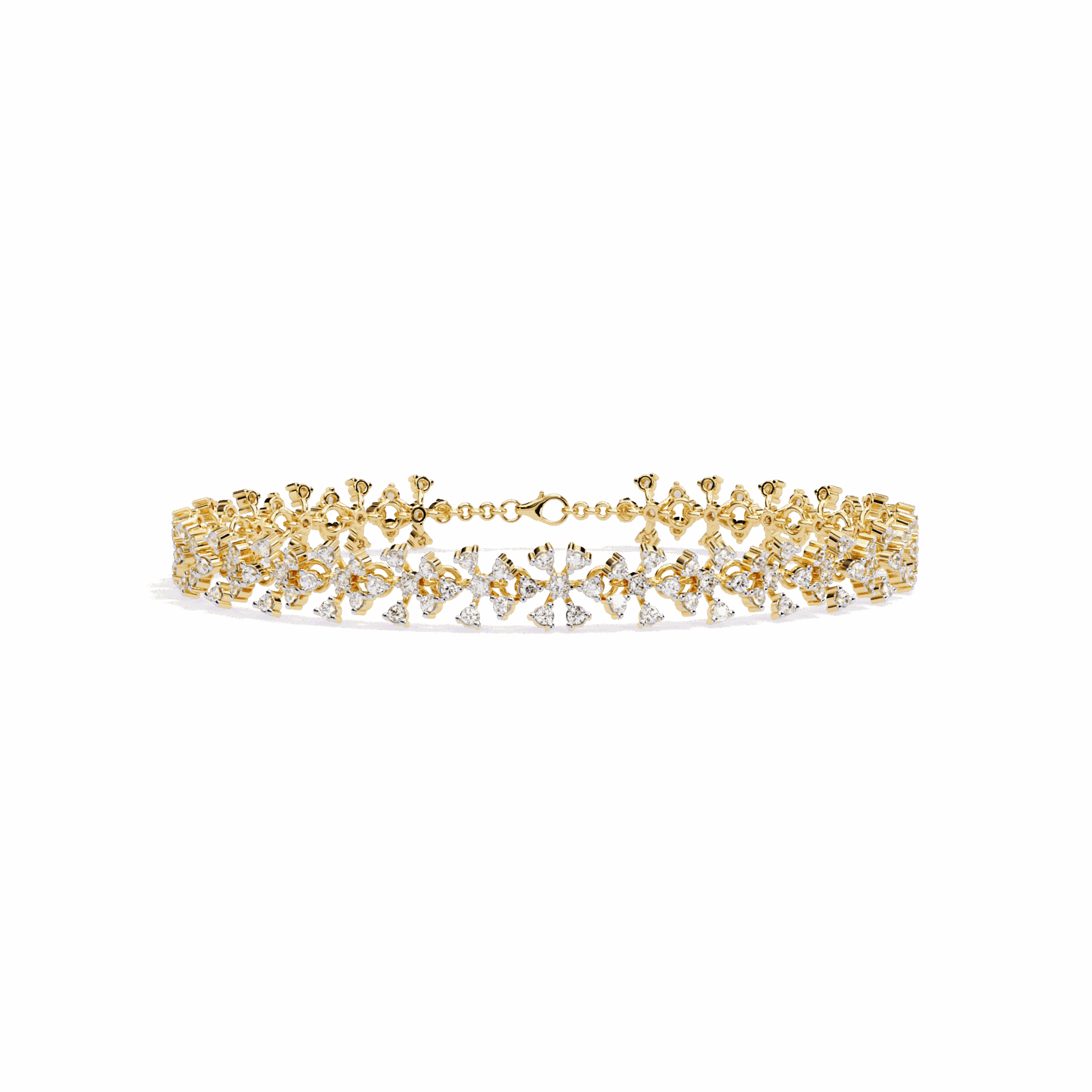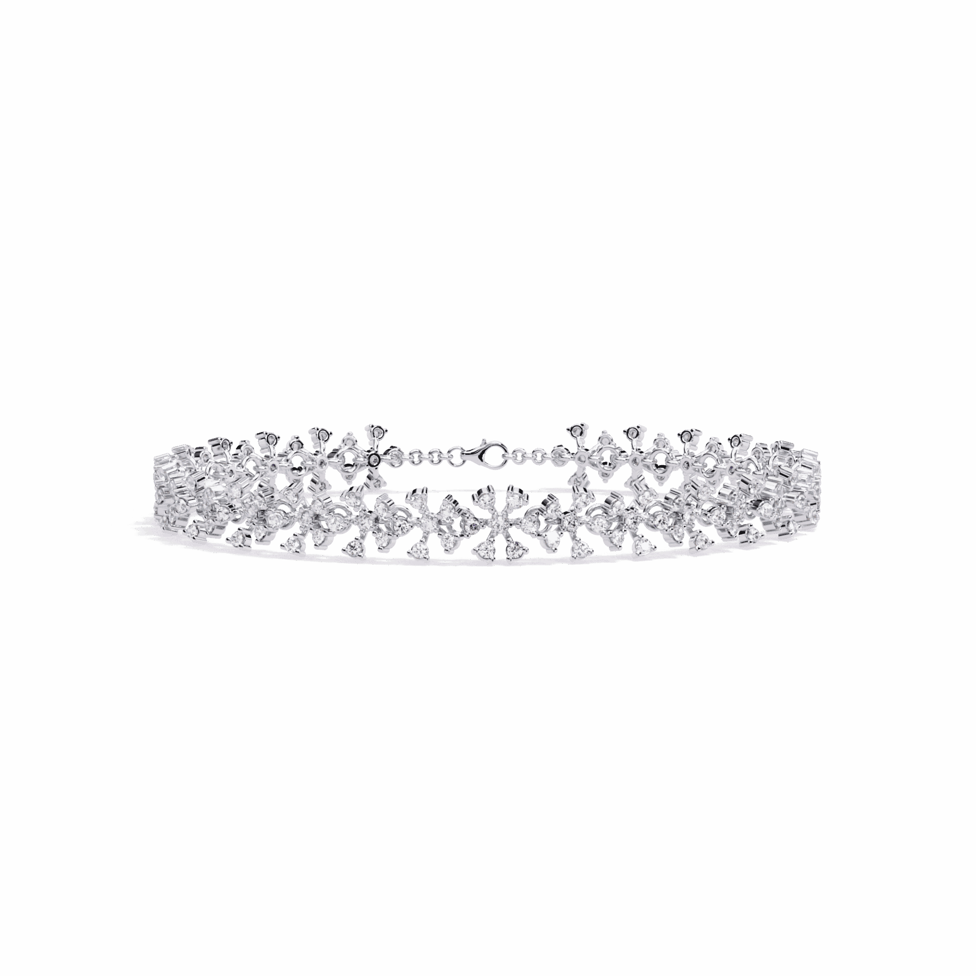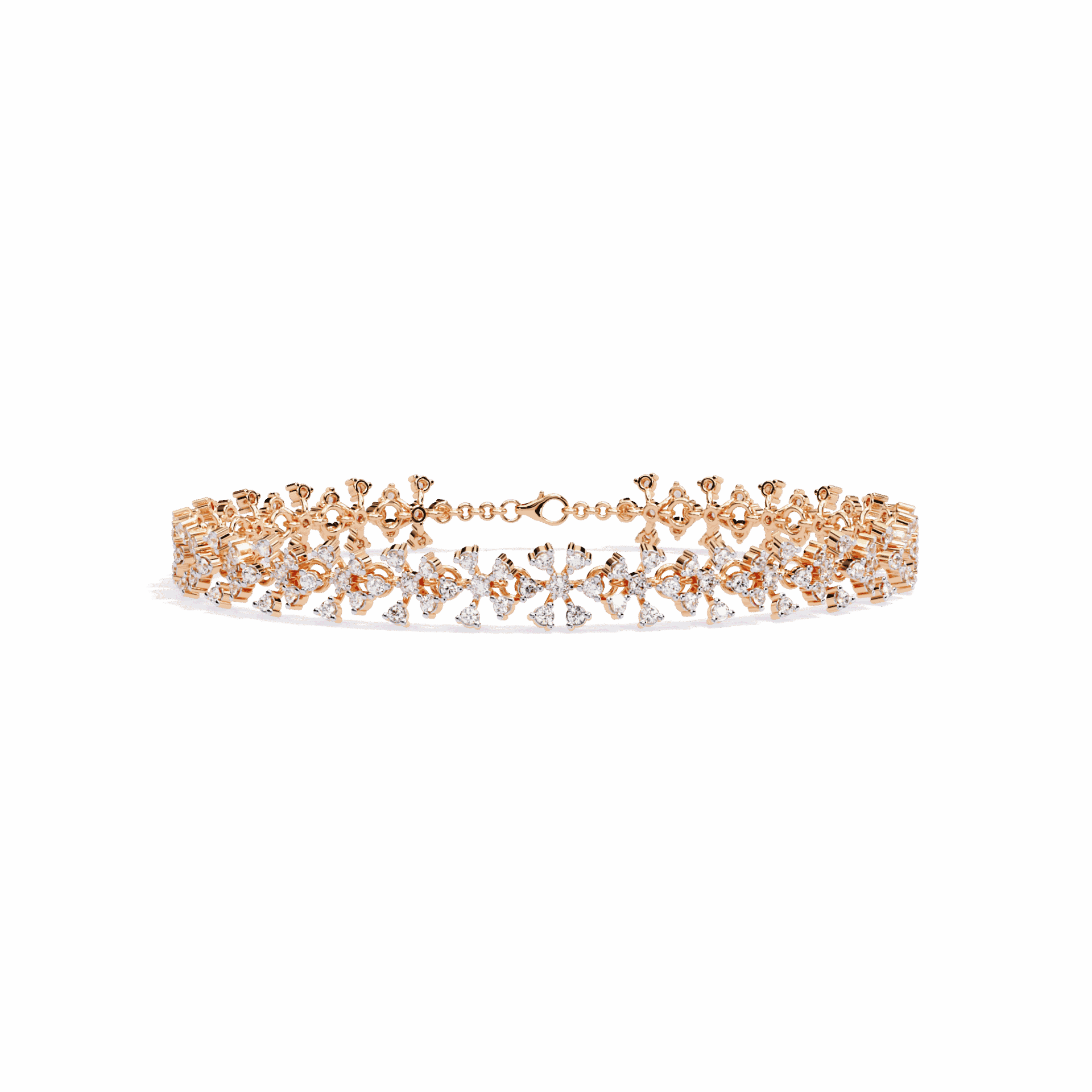 139 round lab-grown diamonds arranged in delicate petal formations, creating a continuous floral pattern around the wrist. It’s the structure of a tennis bracelet with the softness of nature.