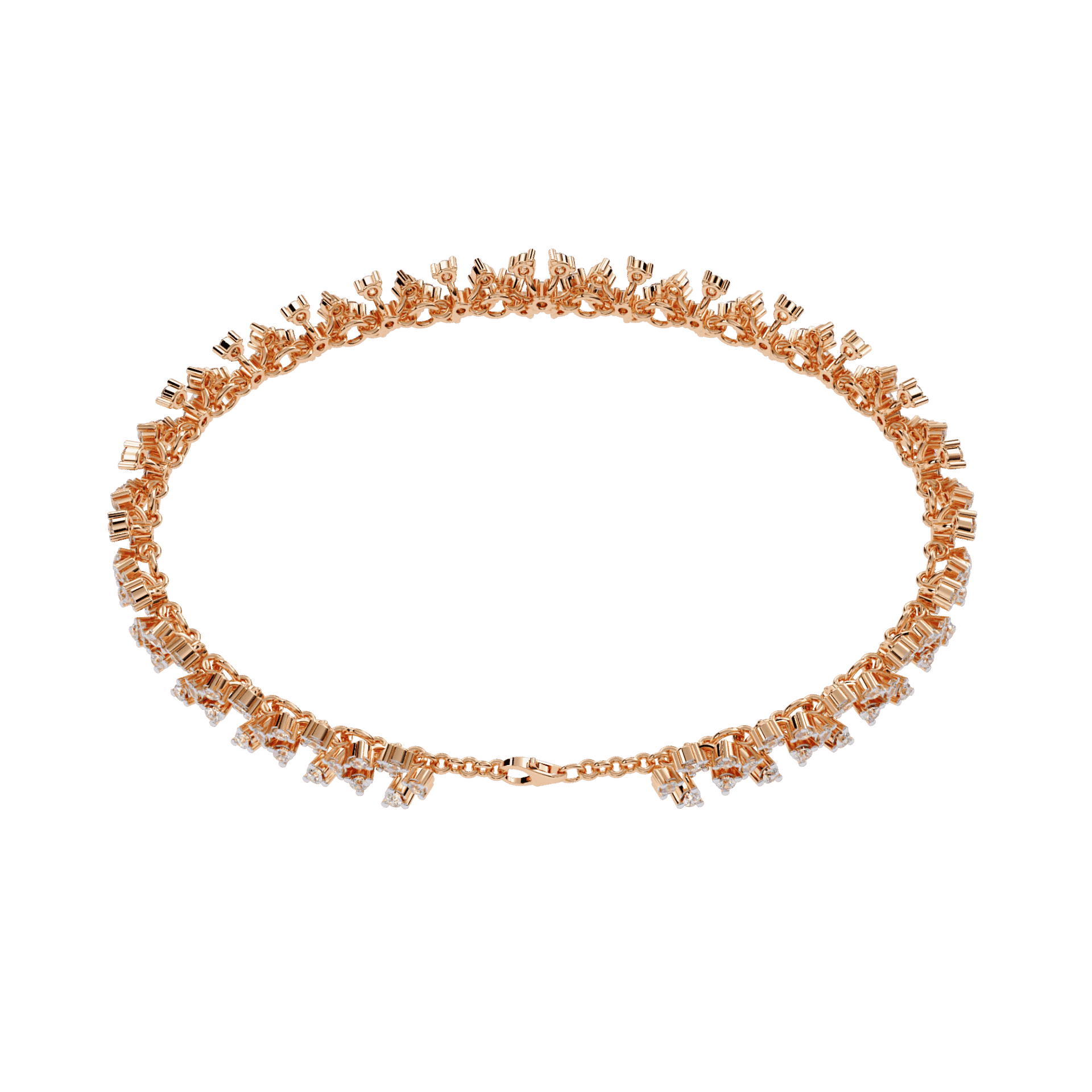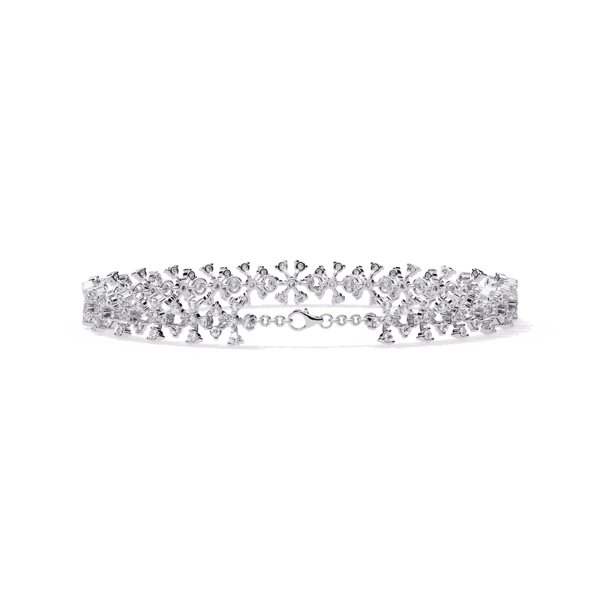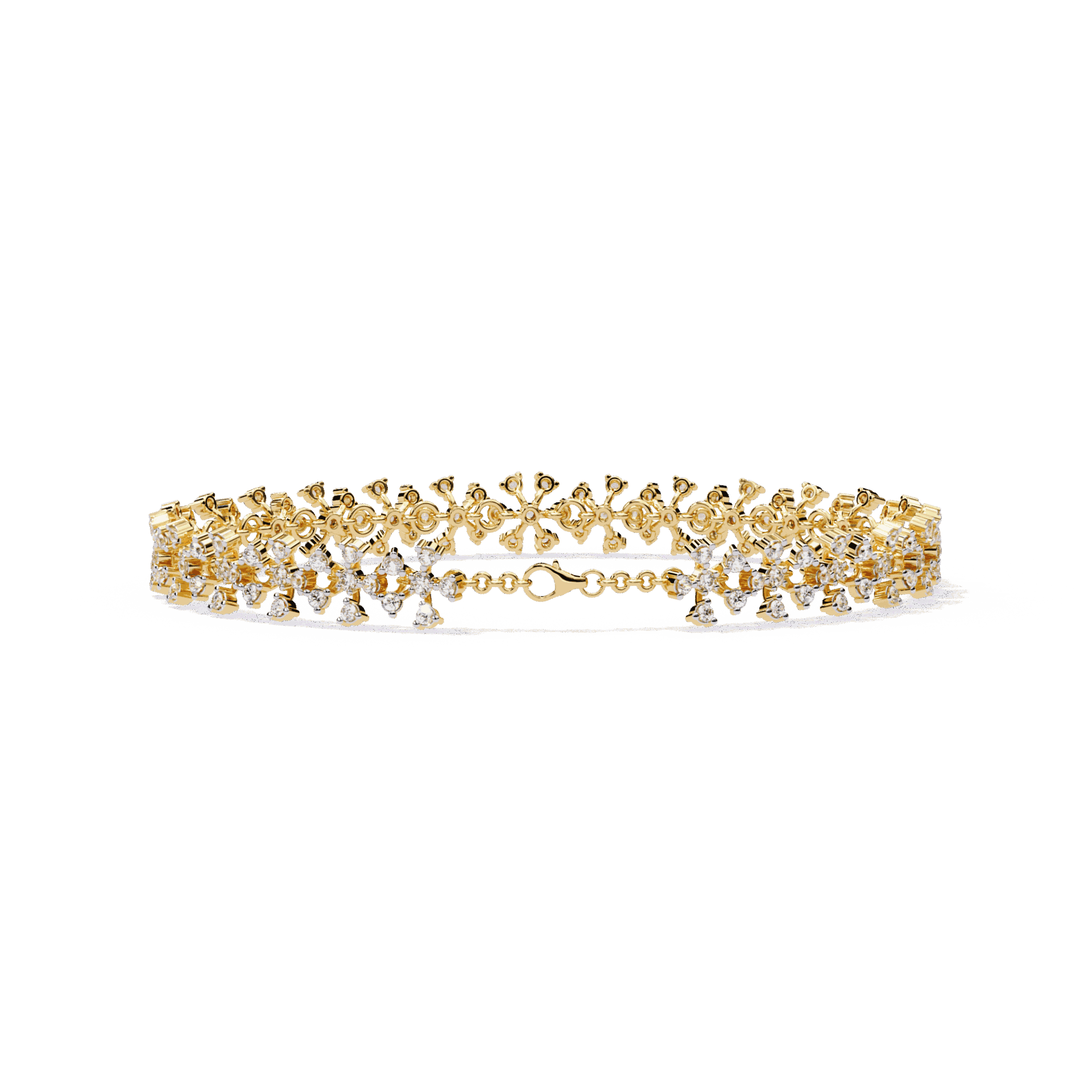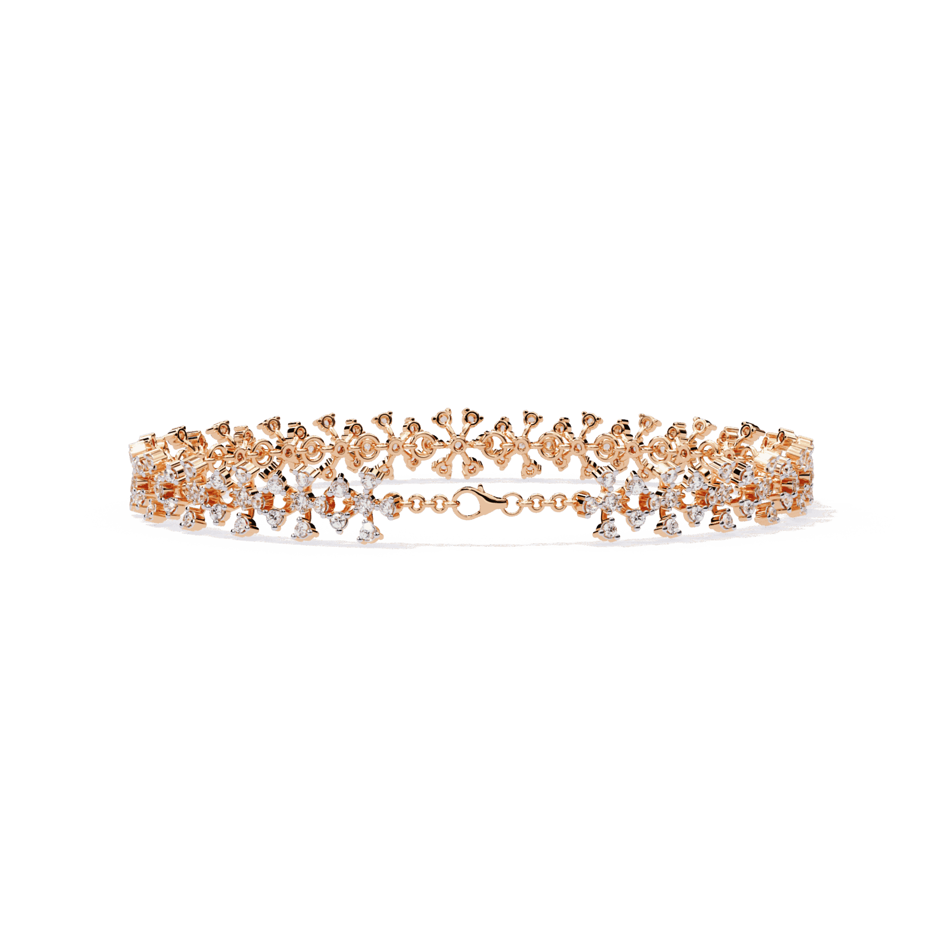139 round lab-grown diamonds arranged in delicate petal formations, creating a continuous floral pattern around the wrist. It’s the structure of a tennis bracelet with the softness of nature.
