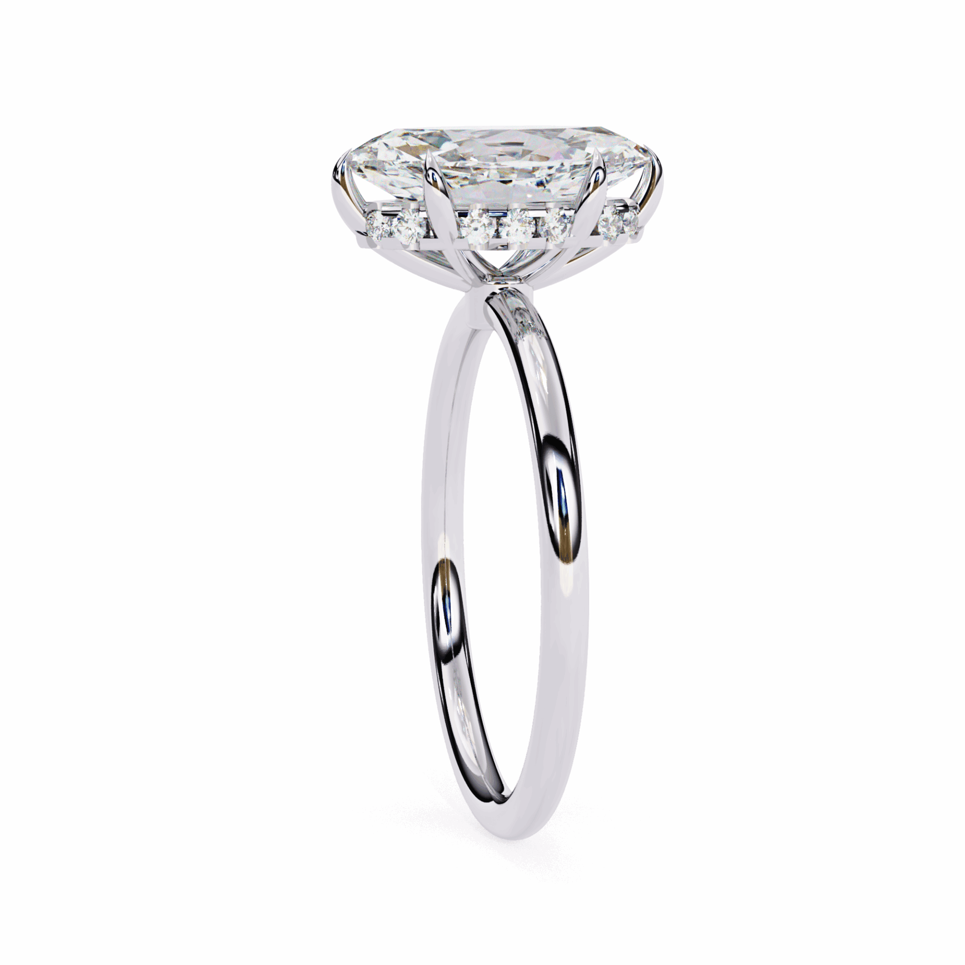A marquise-cut lab-grown diamond with 15 accent diamonds totaling 1.54 carats. The most flattering cut in the Eternal Solitaire setting.