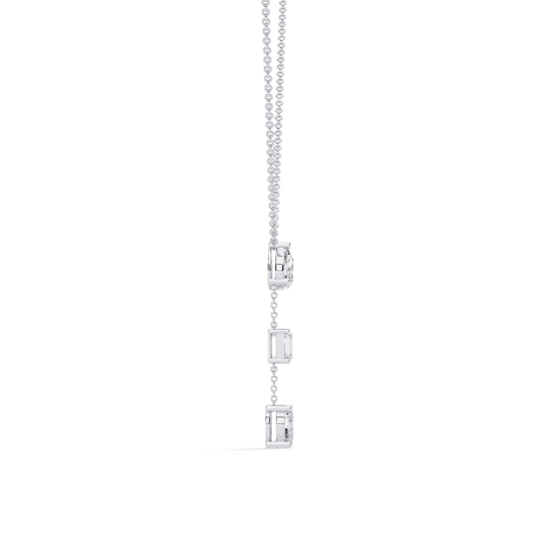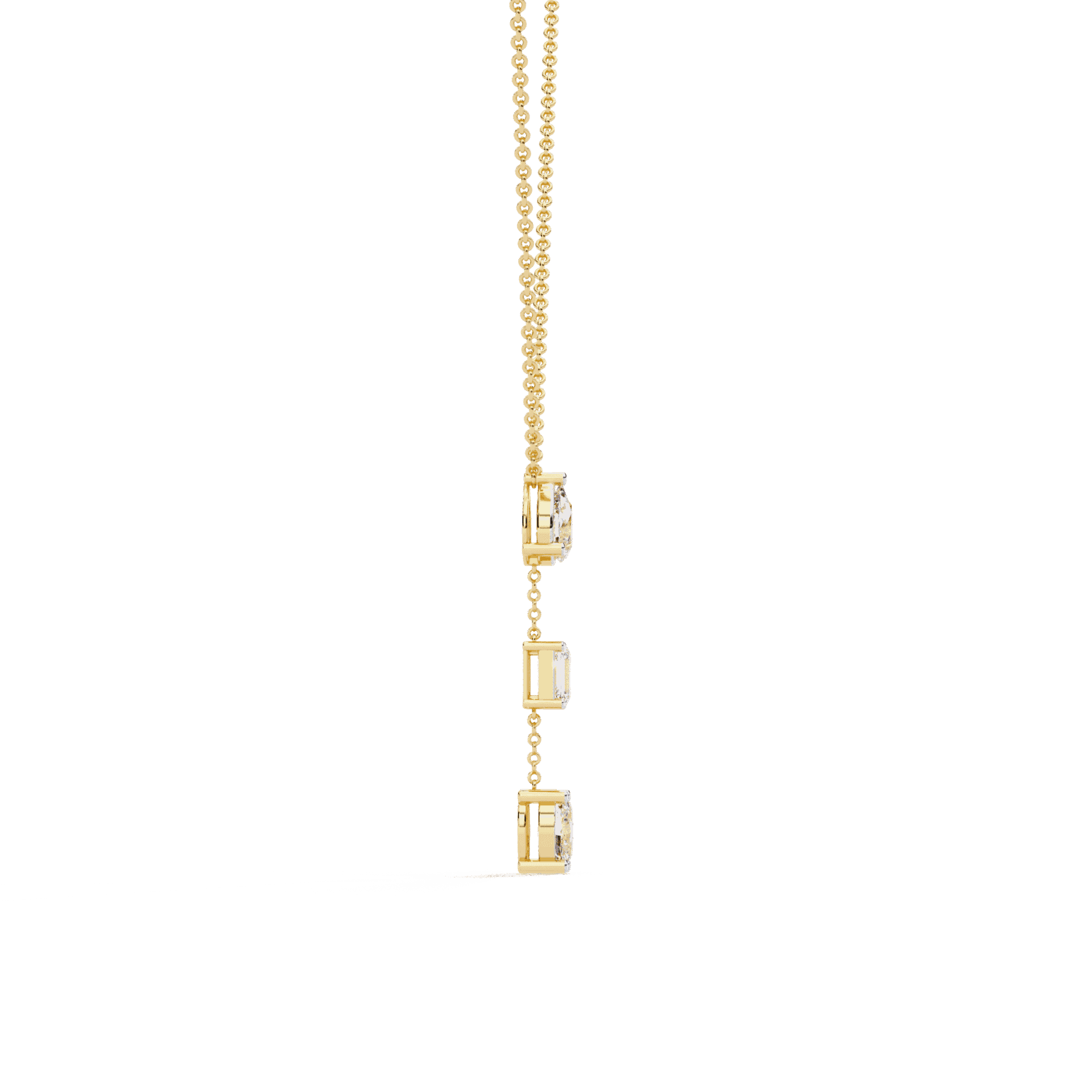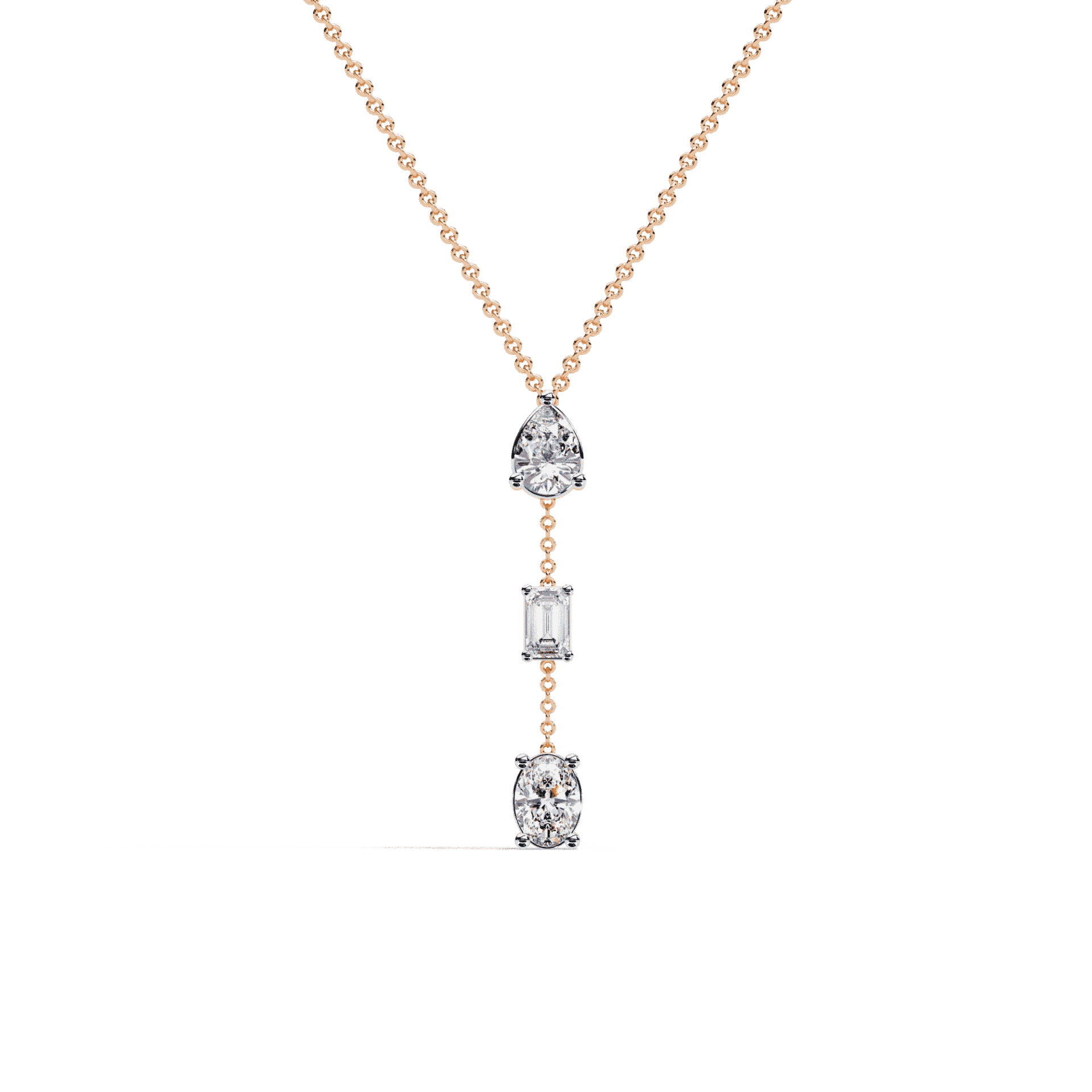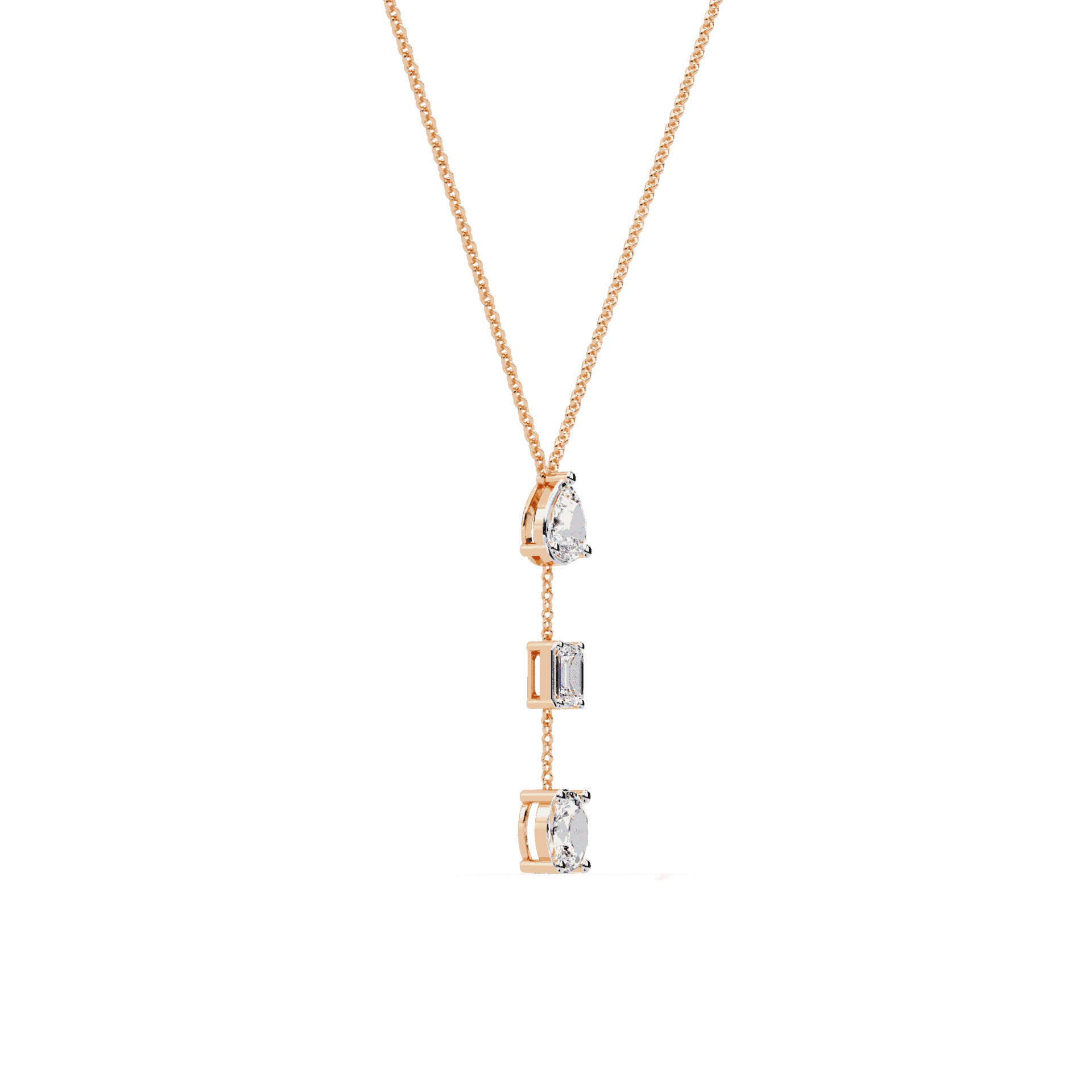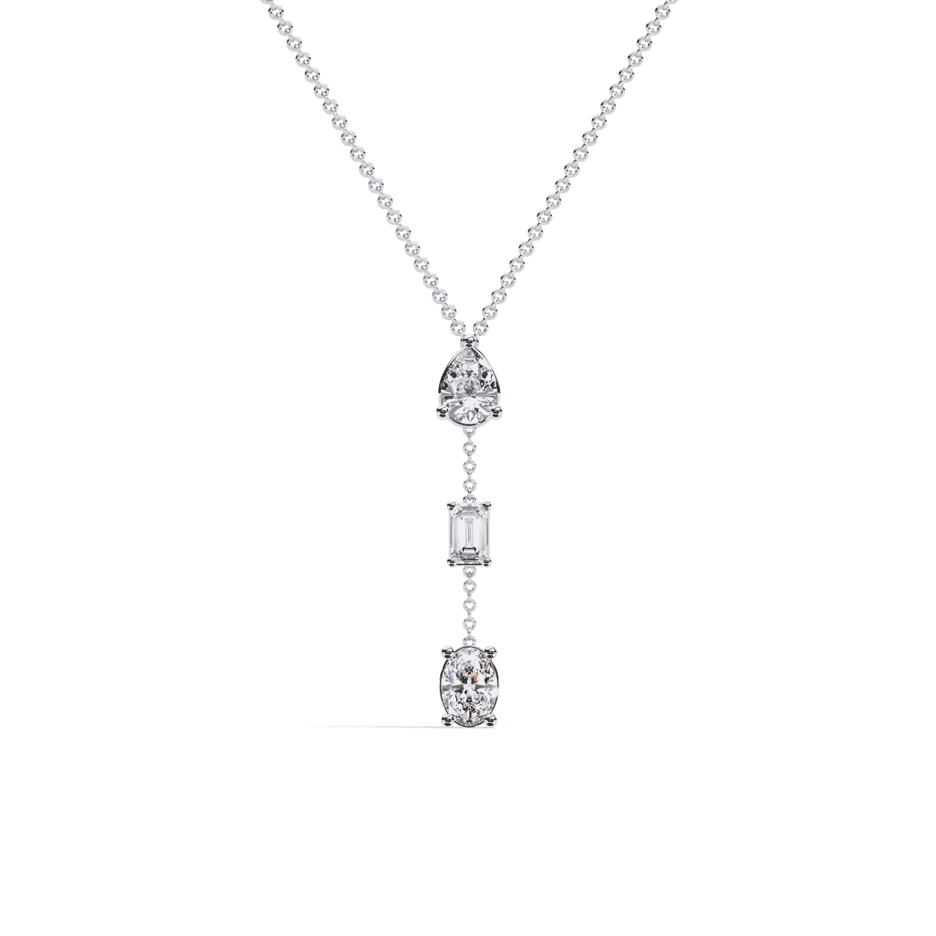 Three lab-grown diamonds – oval, pear, and emerald cuts – aligned in a refined cascading form. Each cut catches light differently, creating a pendant that shifts and sparkles as you move.