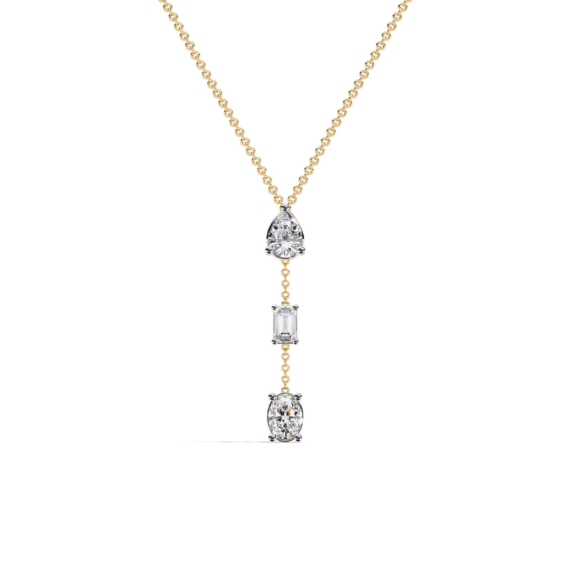 Three lab-grown diamonds - oval, pear, and emerald cuts - aligned in a refined cascading form. Each cut catches light differently, creating a pendant that shifts and sparkles as you move.