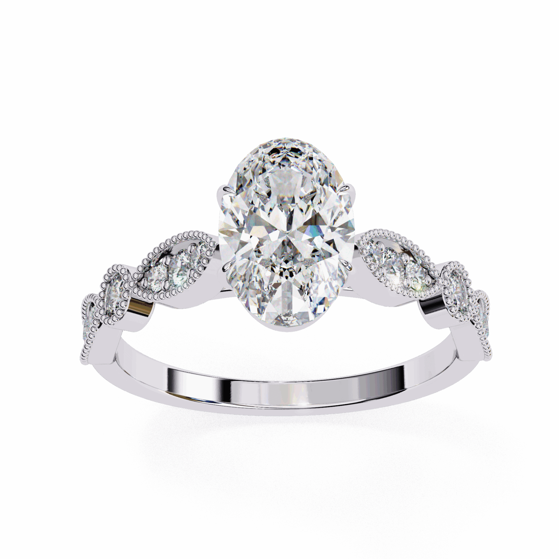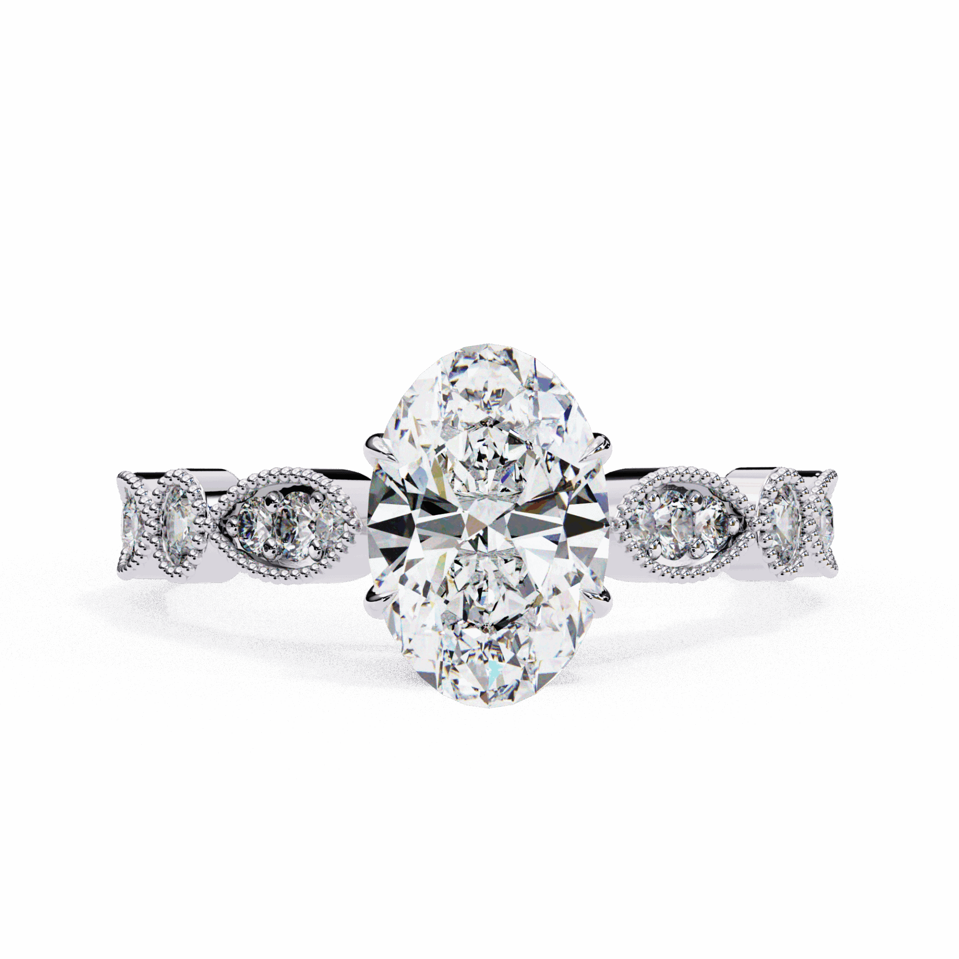 An oval-cut lab-grown diamond with 15 accent diamonds totaling 1.44 carats. The One for those who love ovals.
