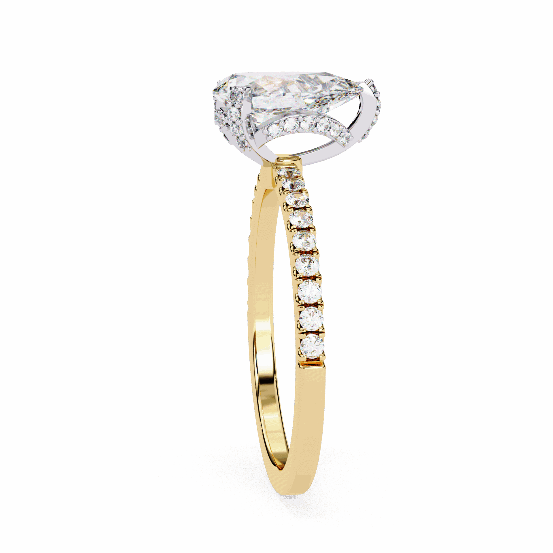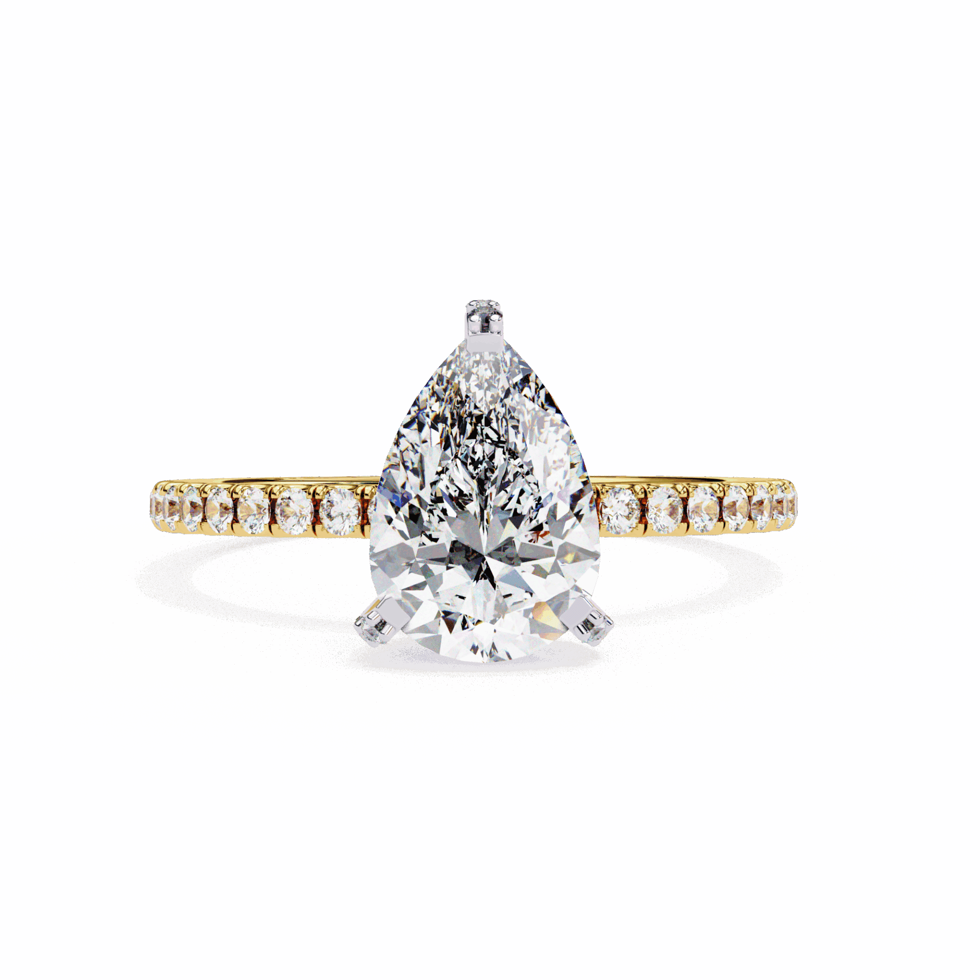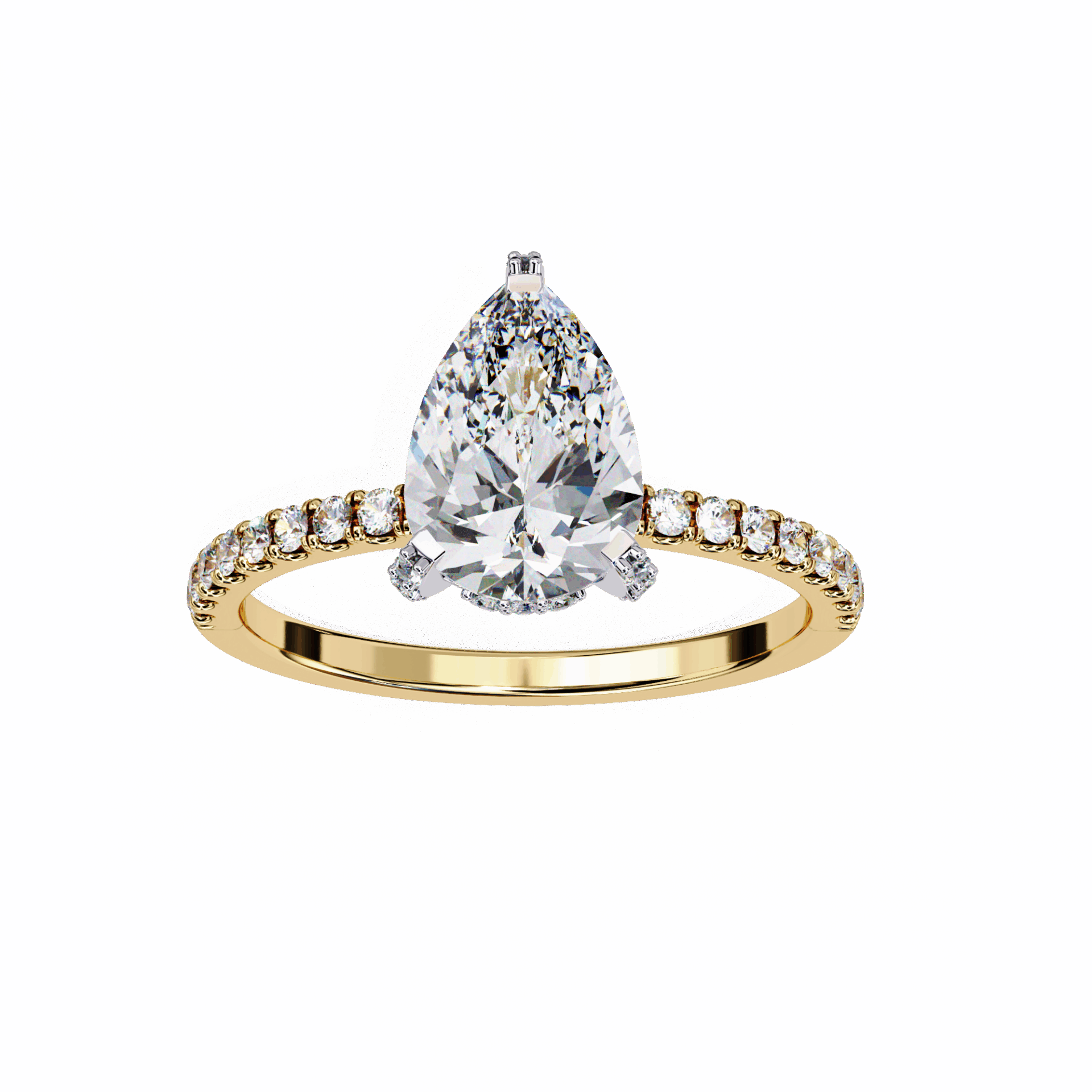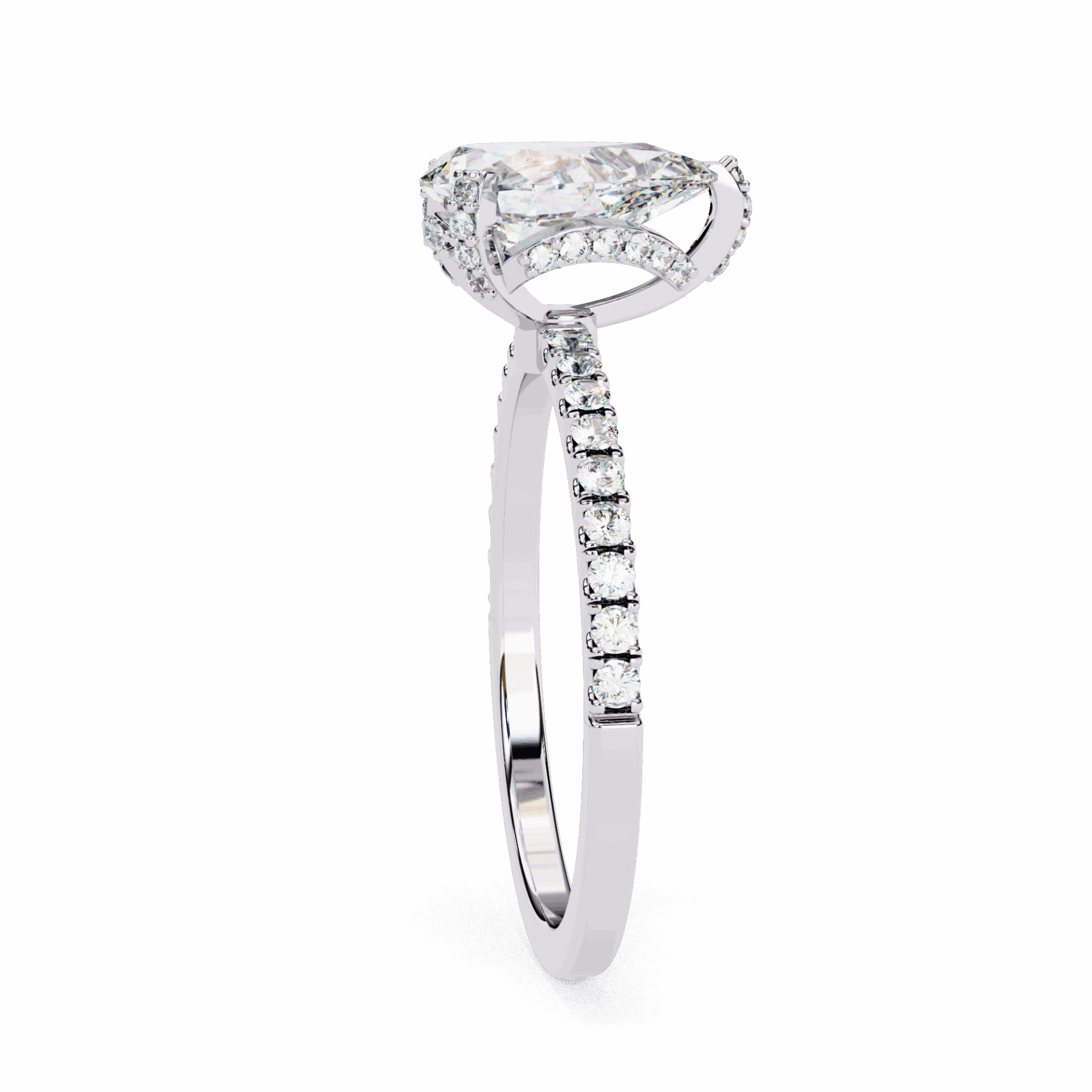 The hidden halo adds sparkle from every angle while maintaining the pear's clean silhouette.