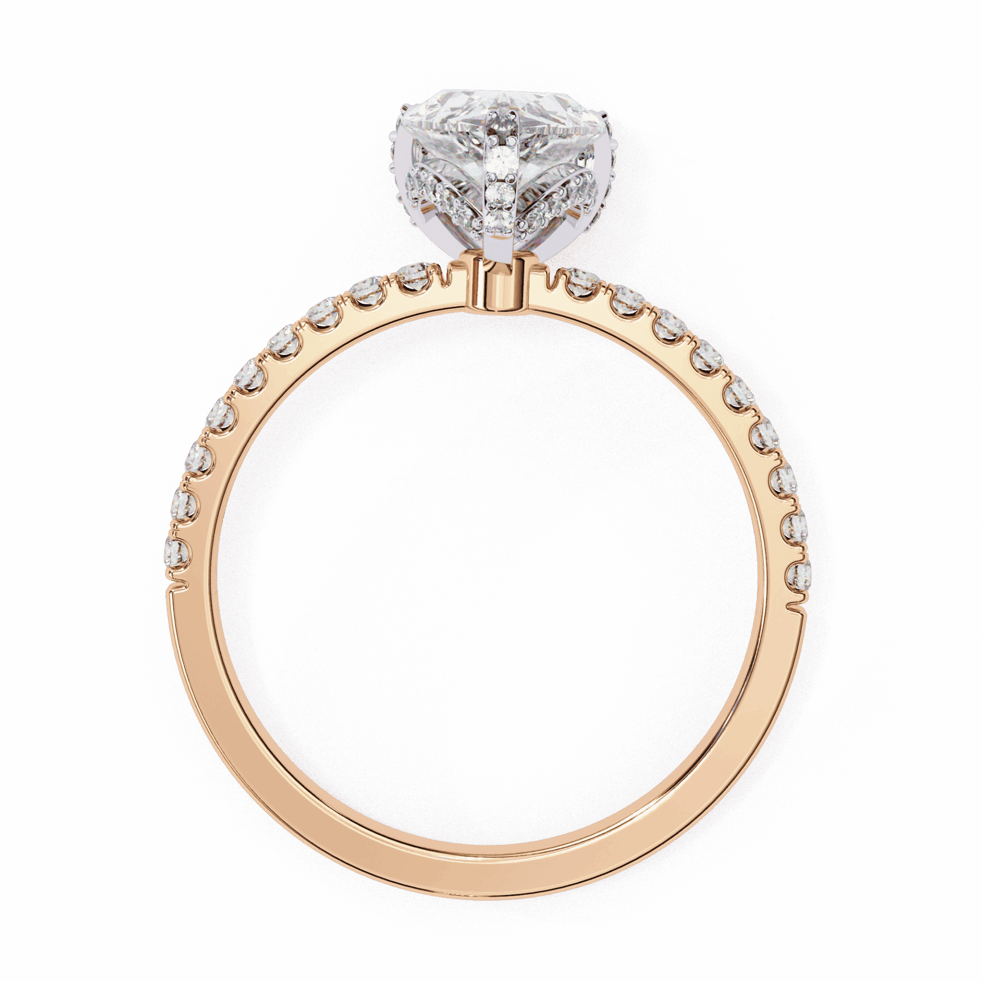 A pear-cut lab-grown diamond with 52 accent diamonds totaling 1.53 carats, including a hidden halo beneath. Secret brilliance enhances the teardrop.