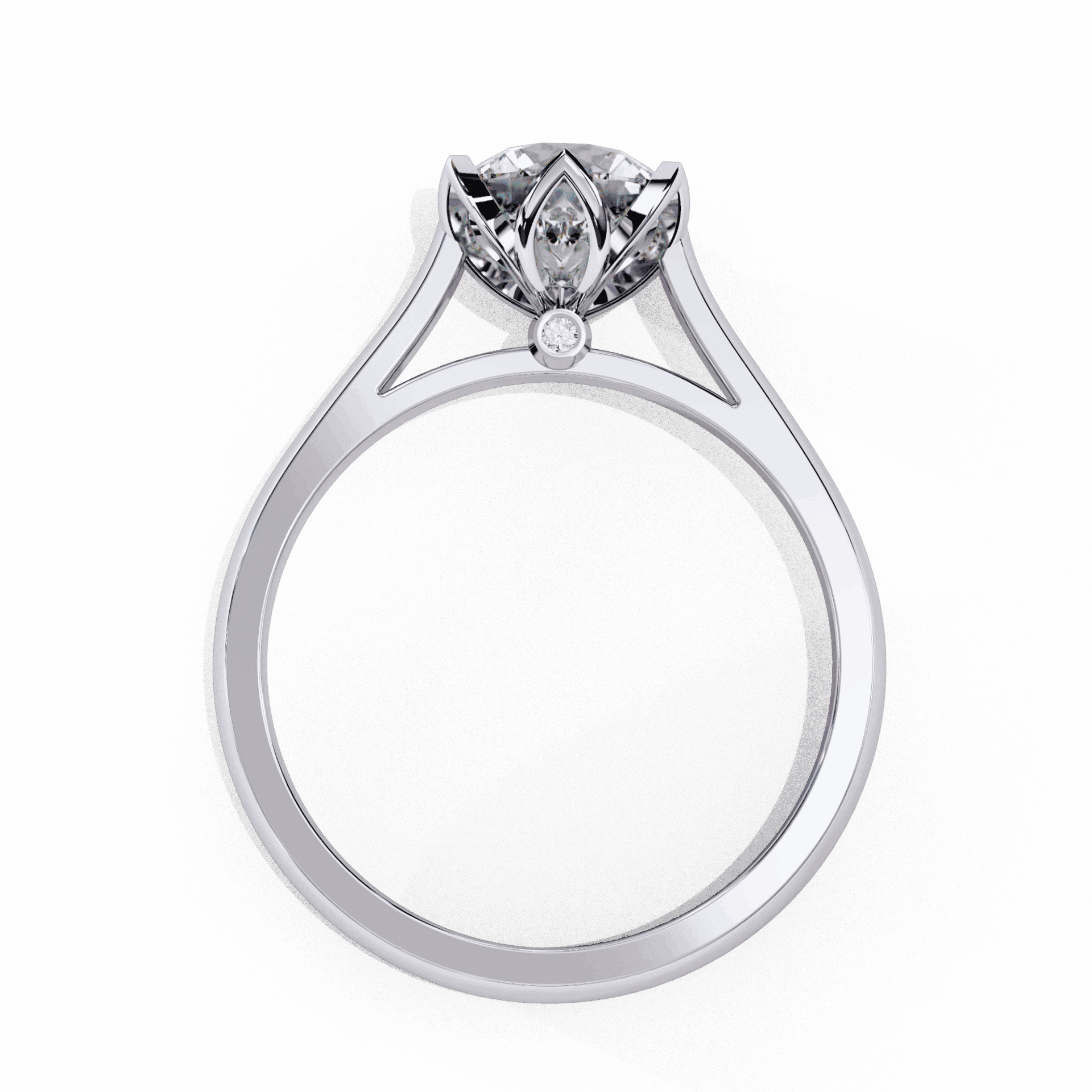 One round center with accent stones. Classic brilliance.