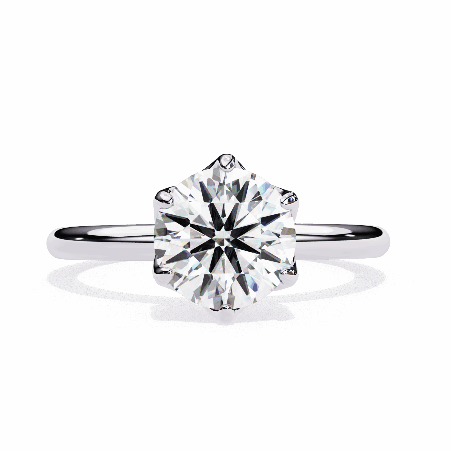 A round lab-grown diamond with 7 accent diamonds totaling 1.6 carats. Maximum brilliance for eternal commitment.