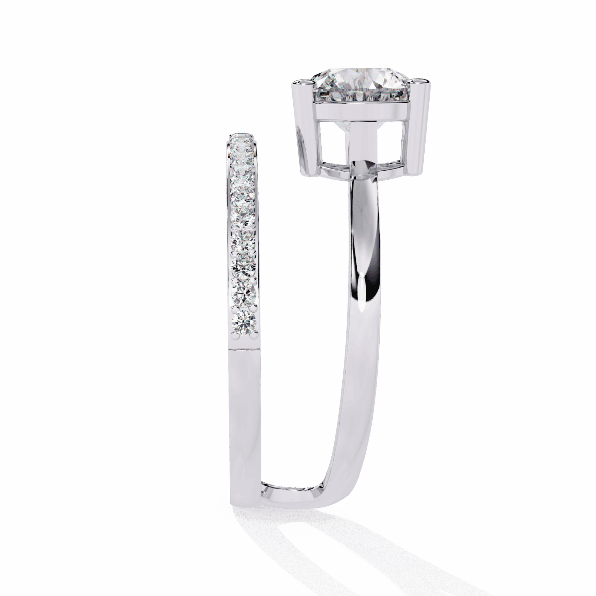 One round center with accent stones. Essential round brilliance.