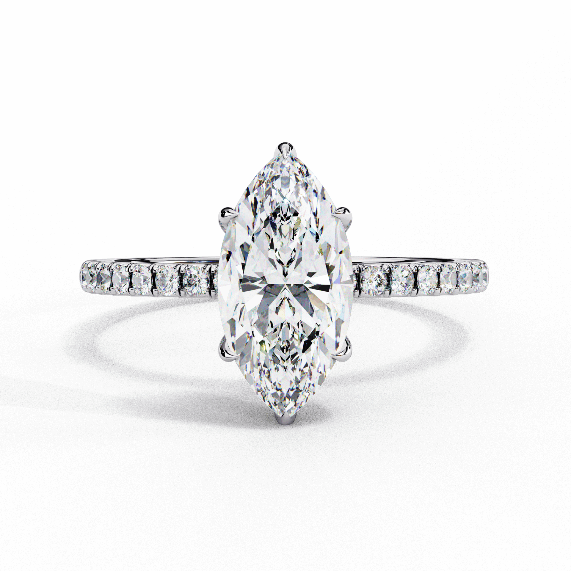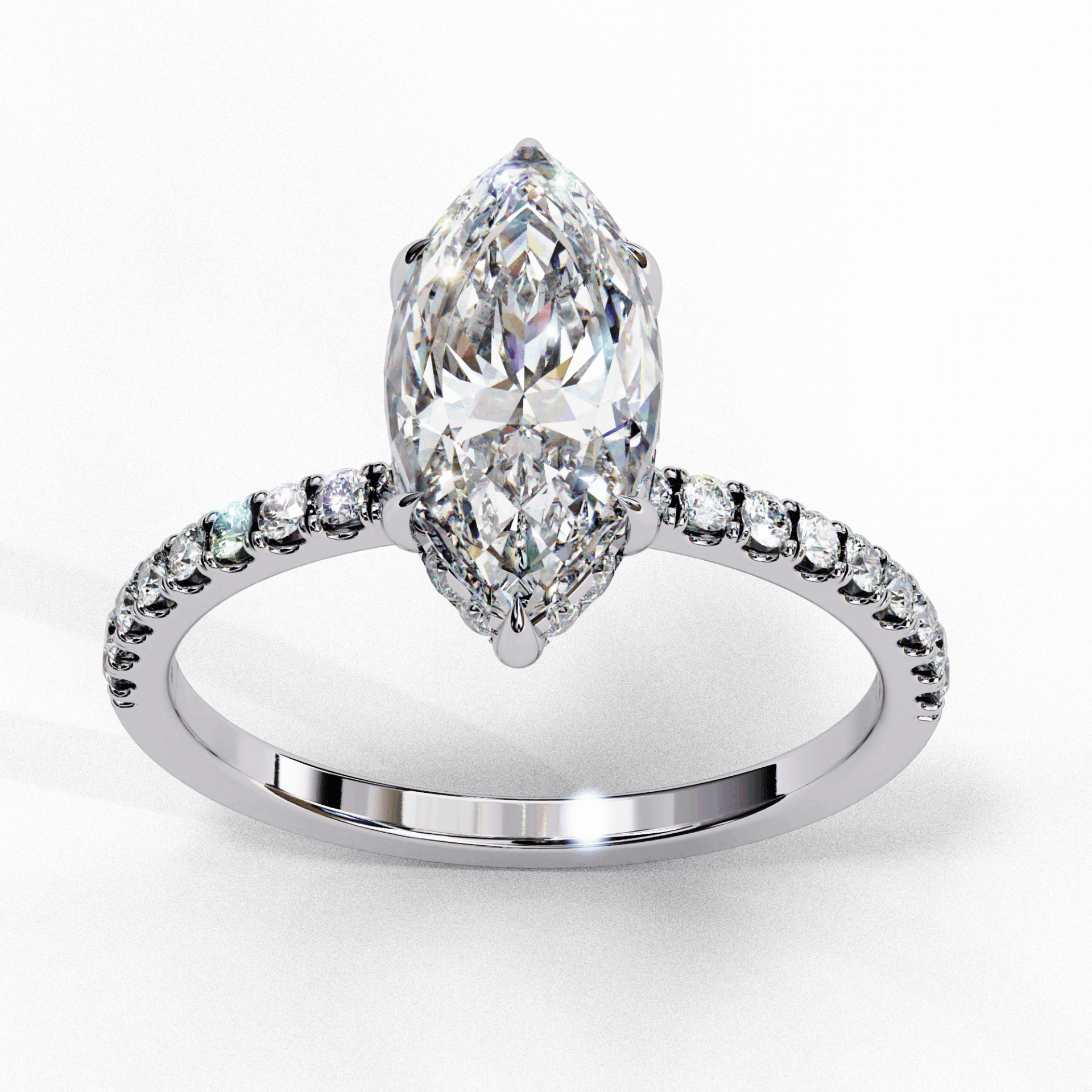 A marquise-cut lab-grown diamond with 33 accent diamonds totaling 1.72 carats. Maximum elongation in the Forevermore setting.